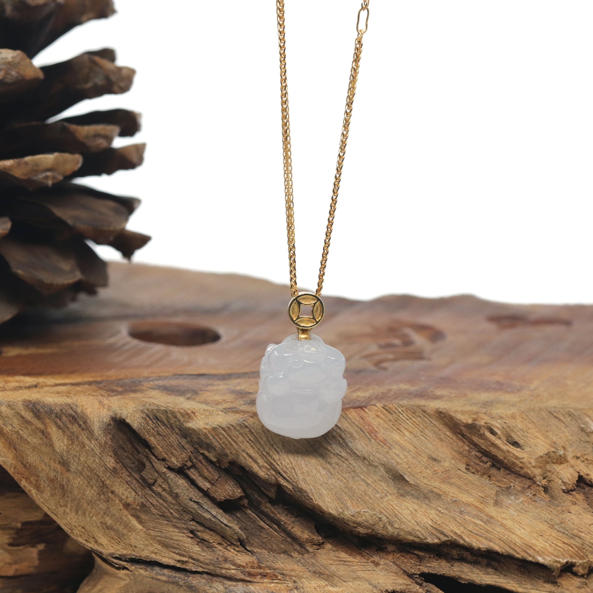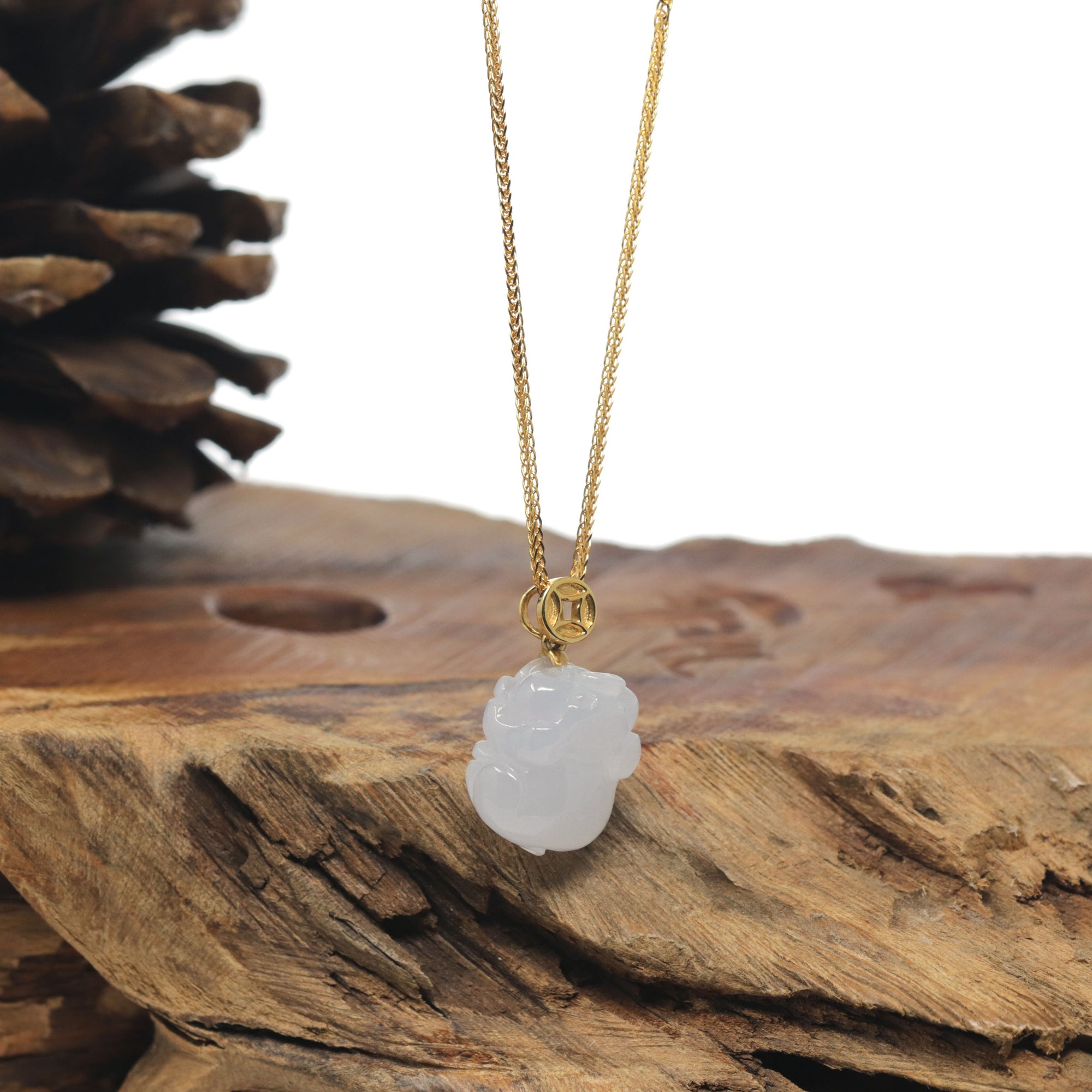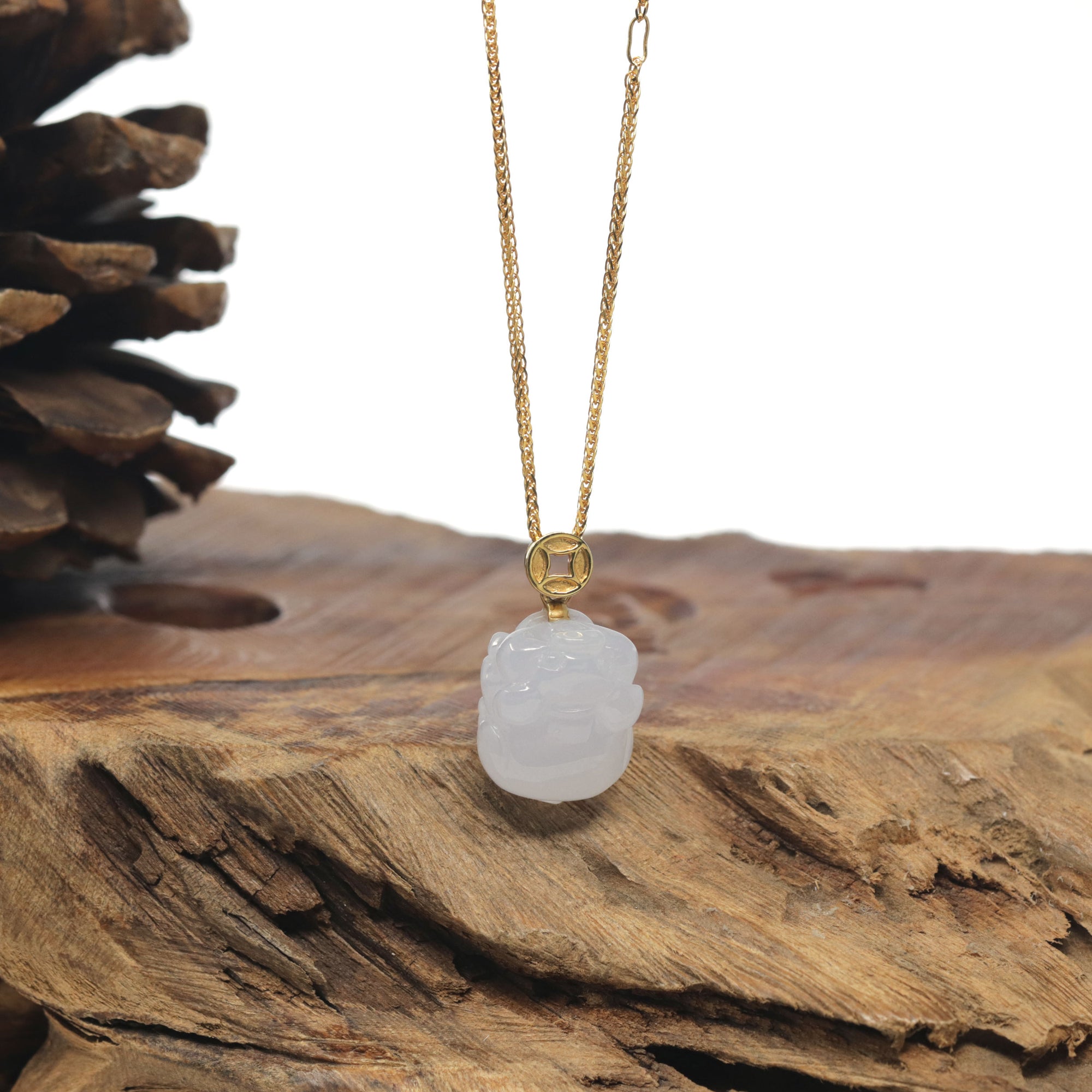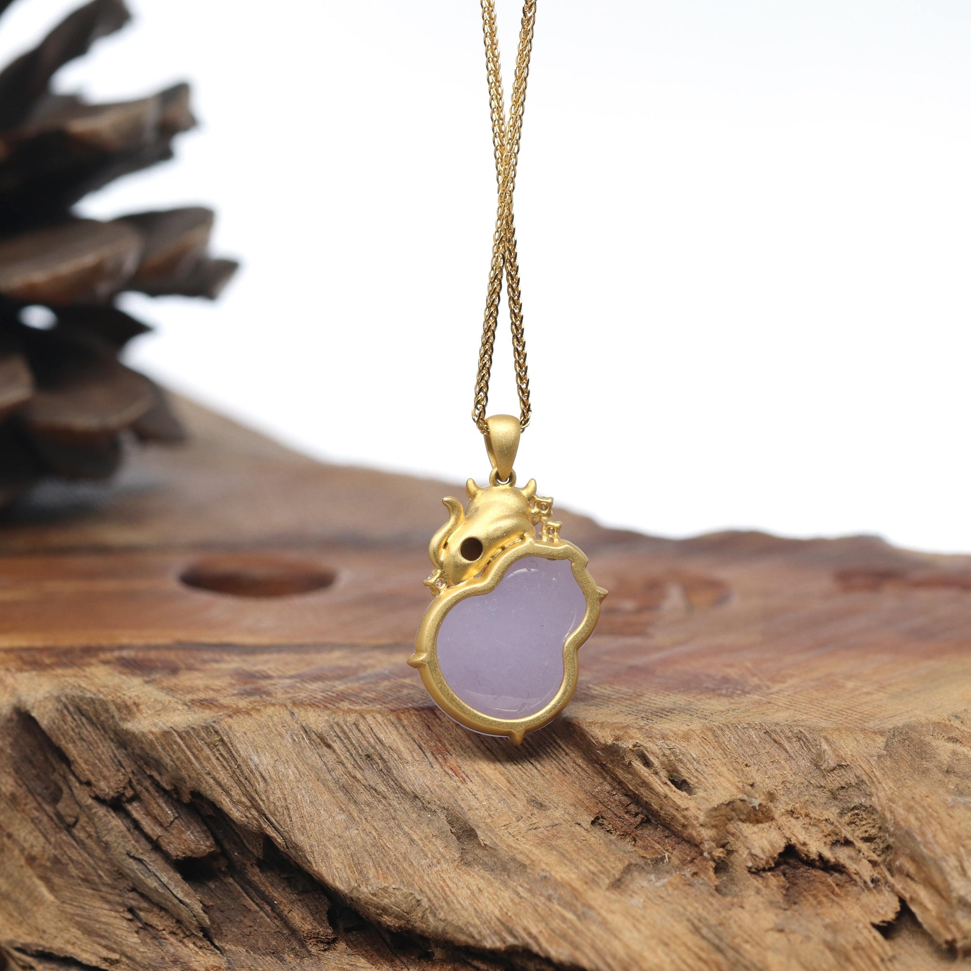 Baikalla Lavender "PiXiu" (Fortune Beast) Jadeite Jade Pendant W/ 18K Yellow Gold Bail