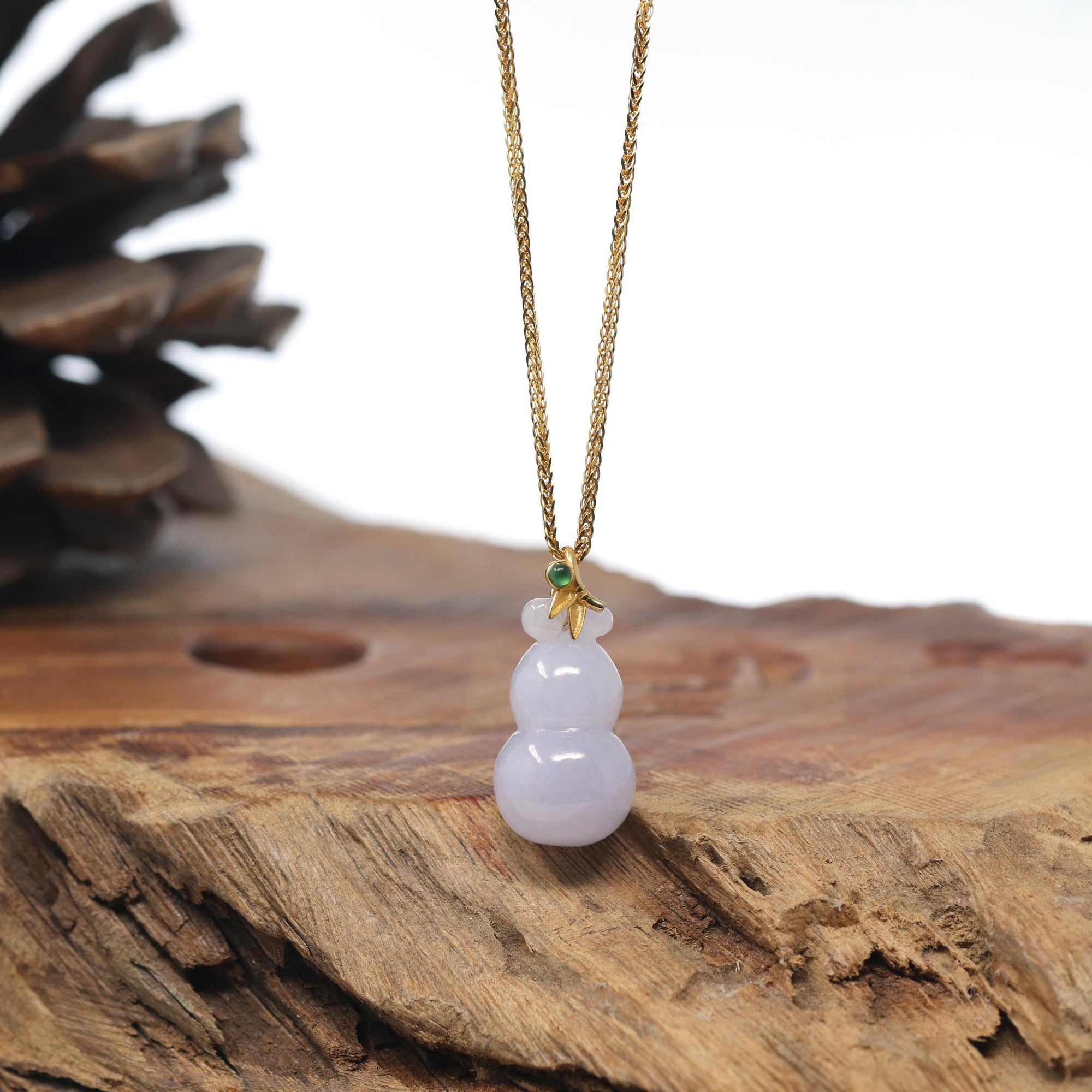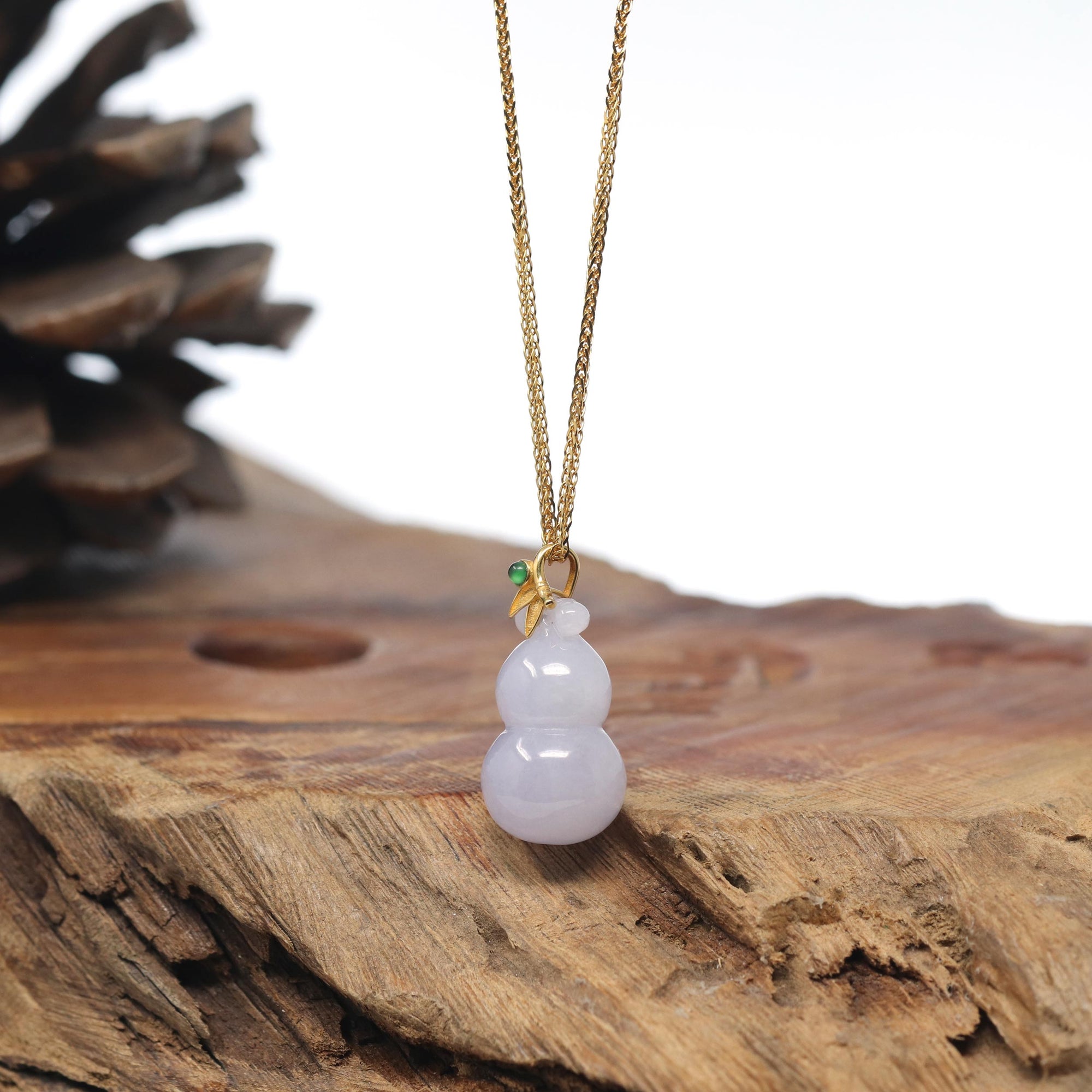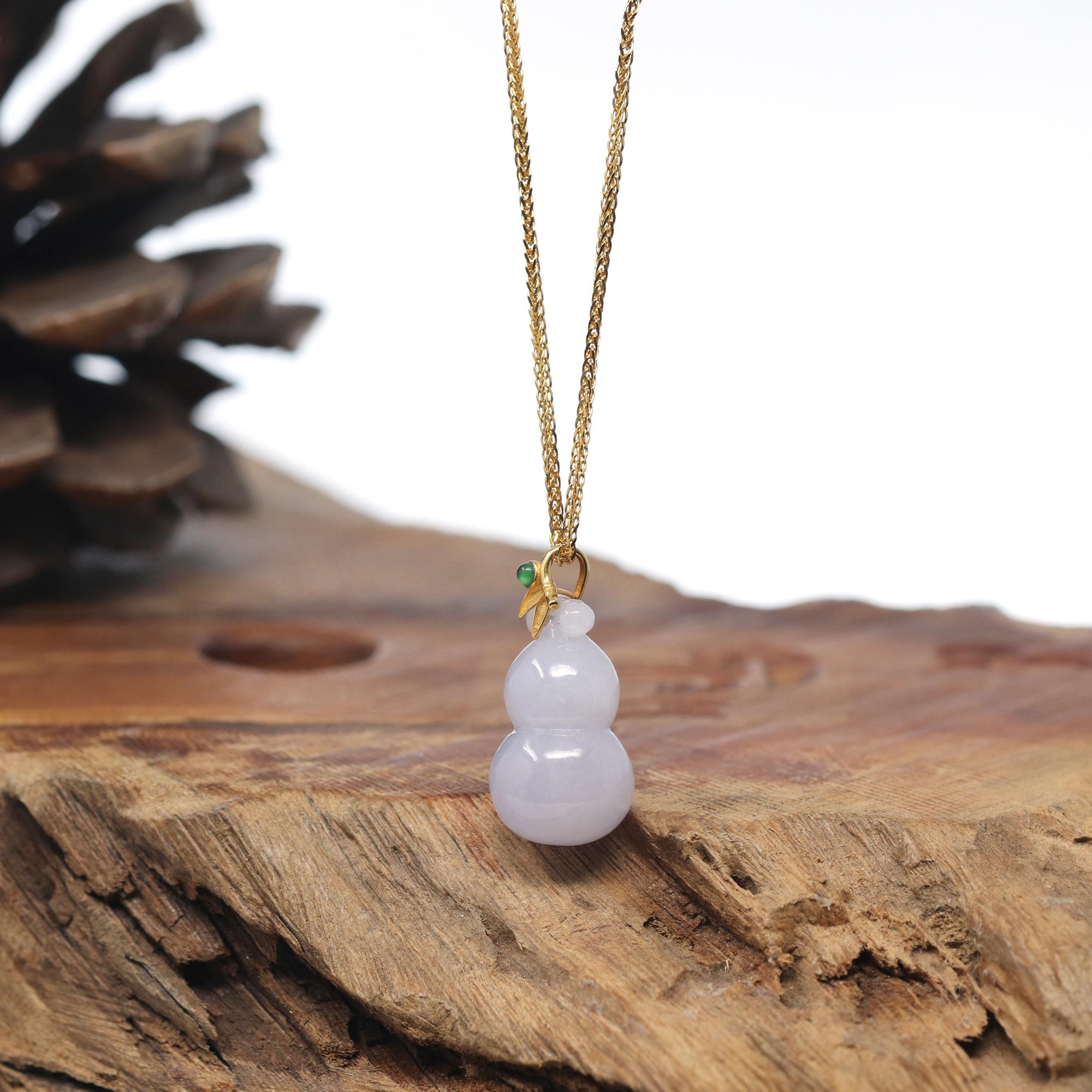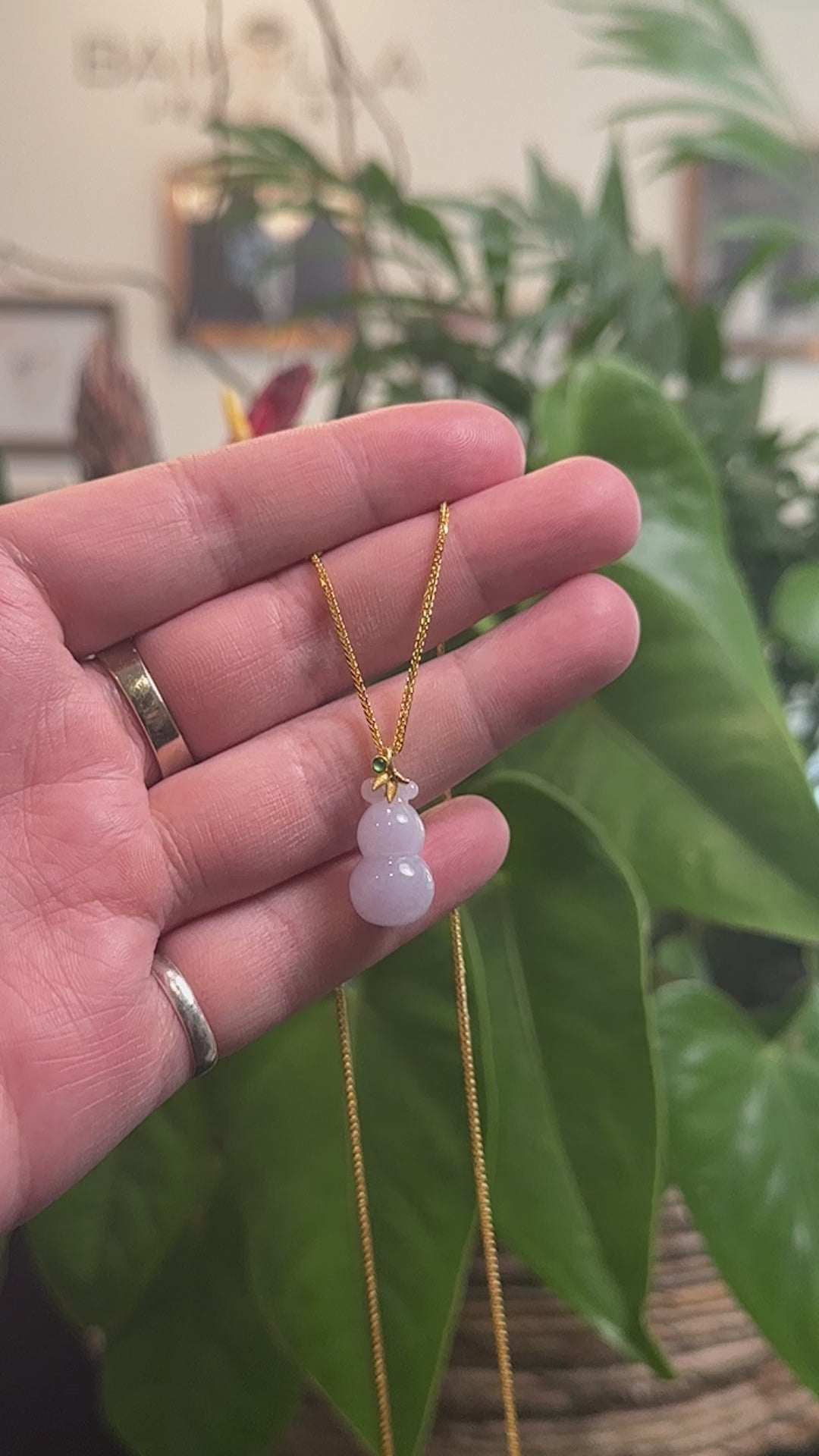 Baikalla "Hulu" 18K Yellow Gold Lavender Jadeite Jade Pendant W/ Diamonds & Leaf Bail