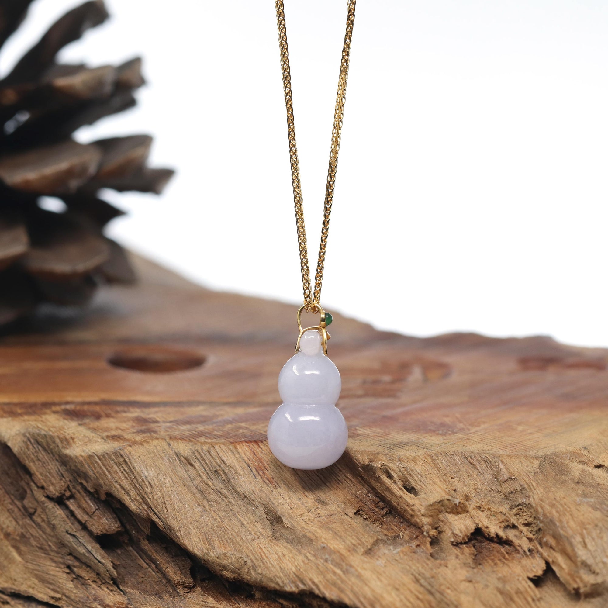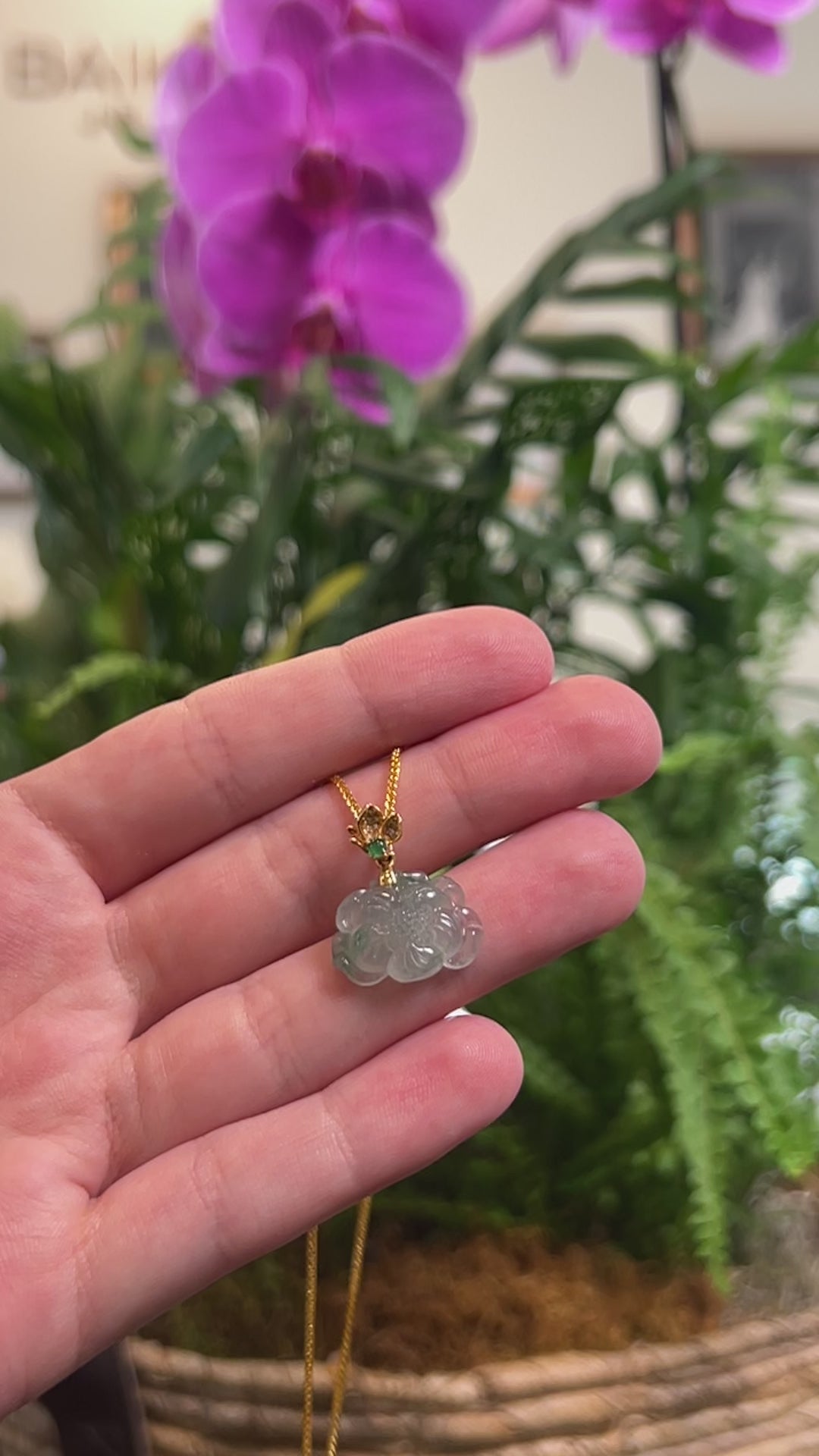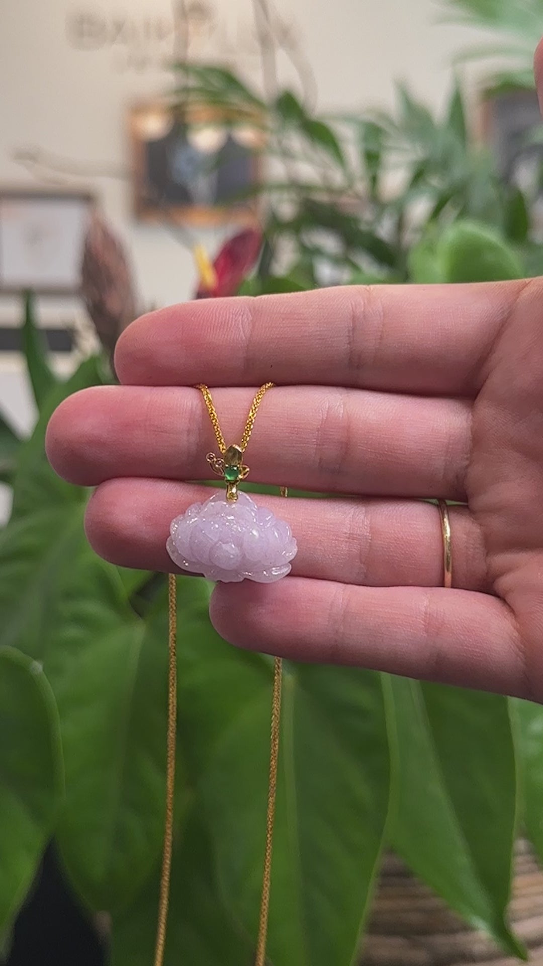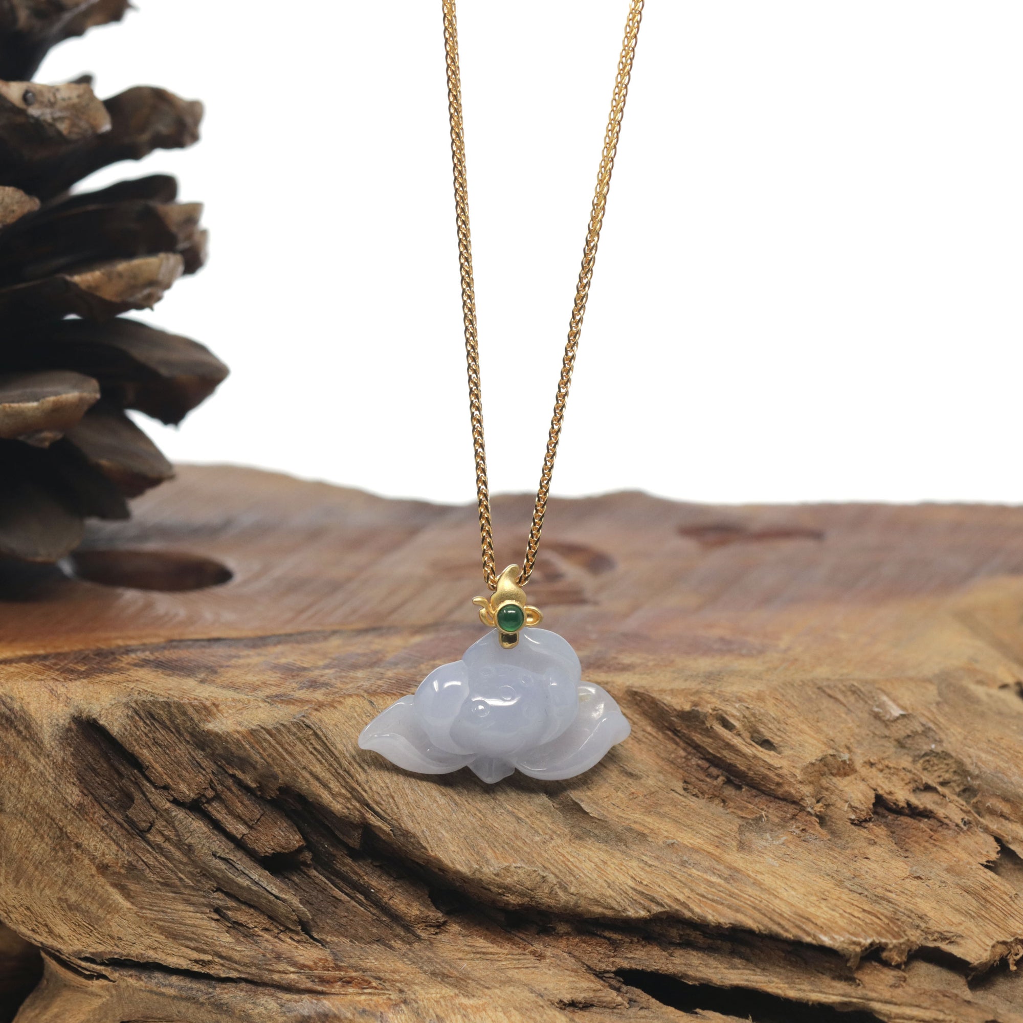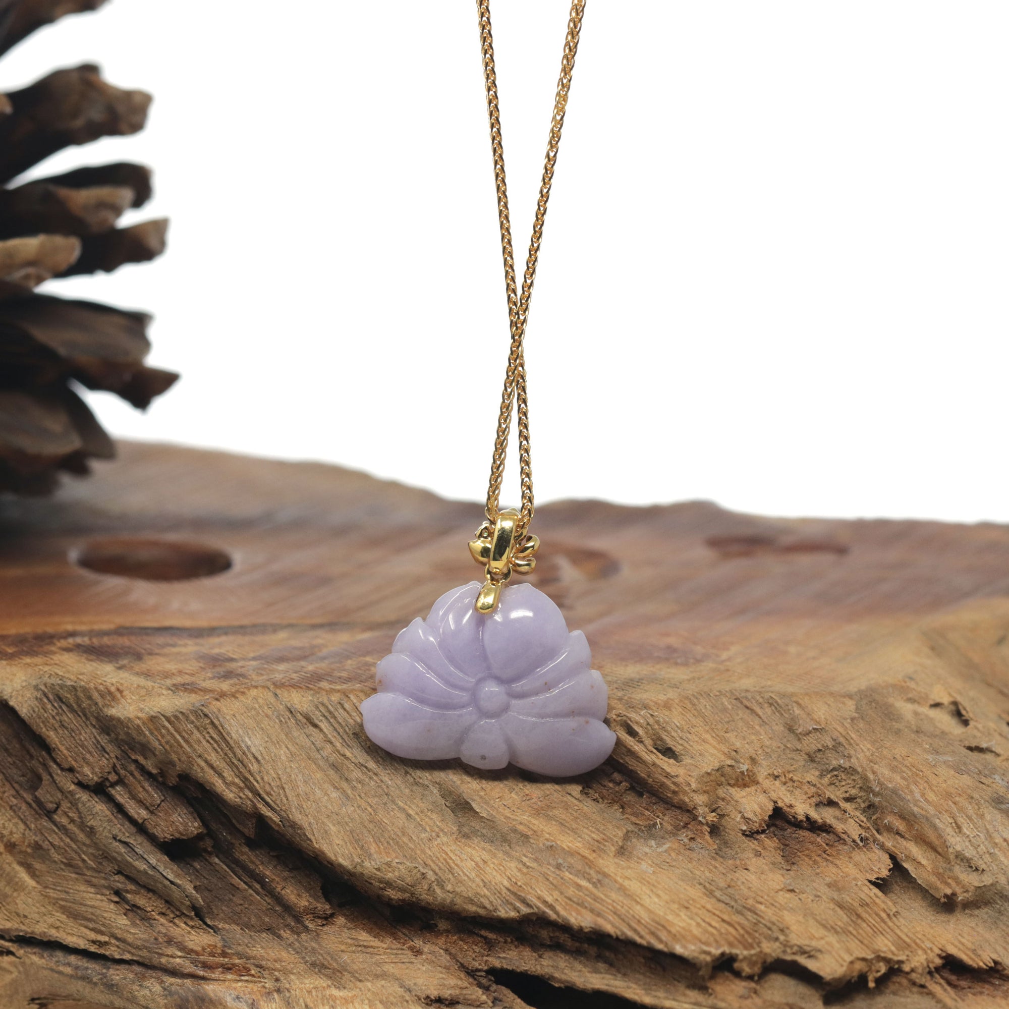 Baikalla Icy Lavender Lotus Jadeite Jade Pendant W/ 18K Yellow Gold Bail & Imperial Green Jade