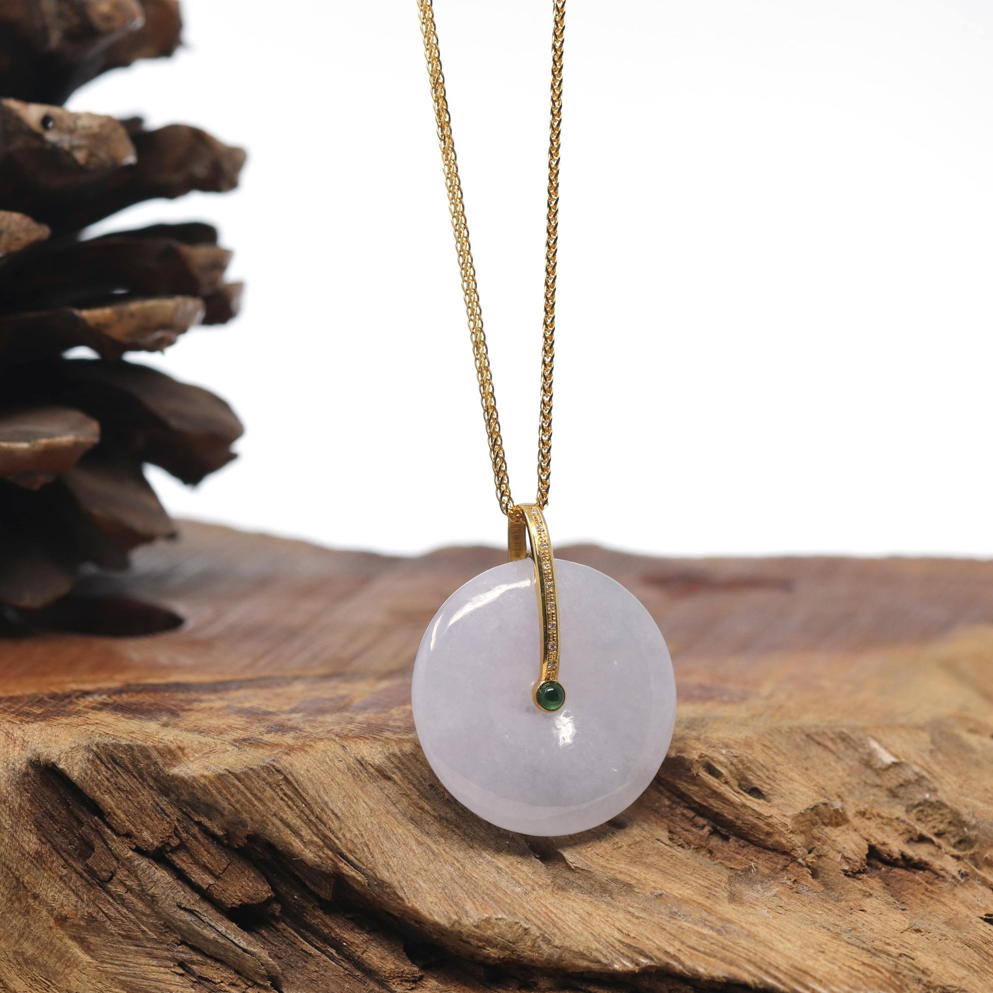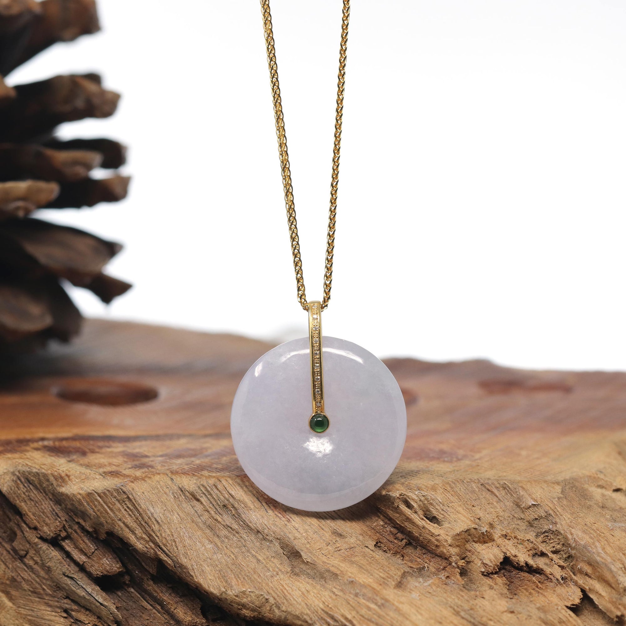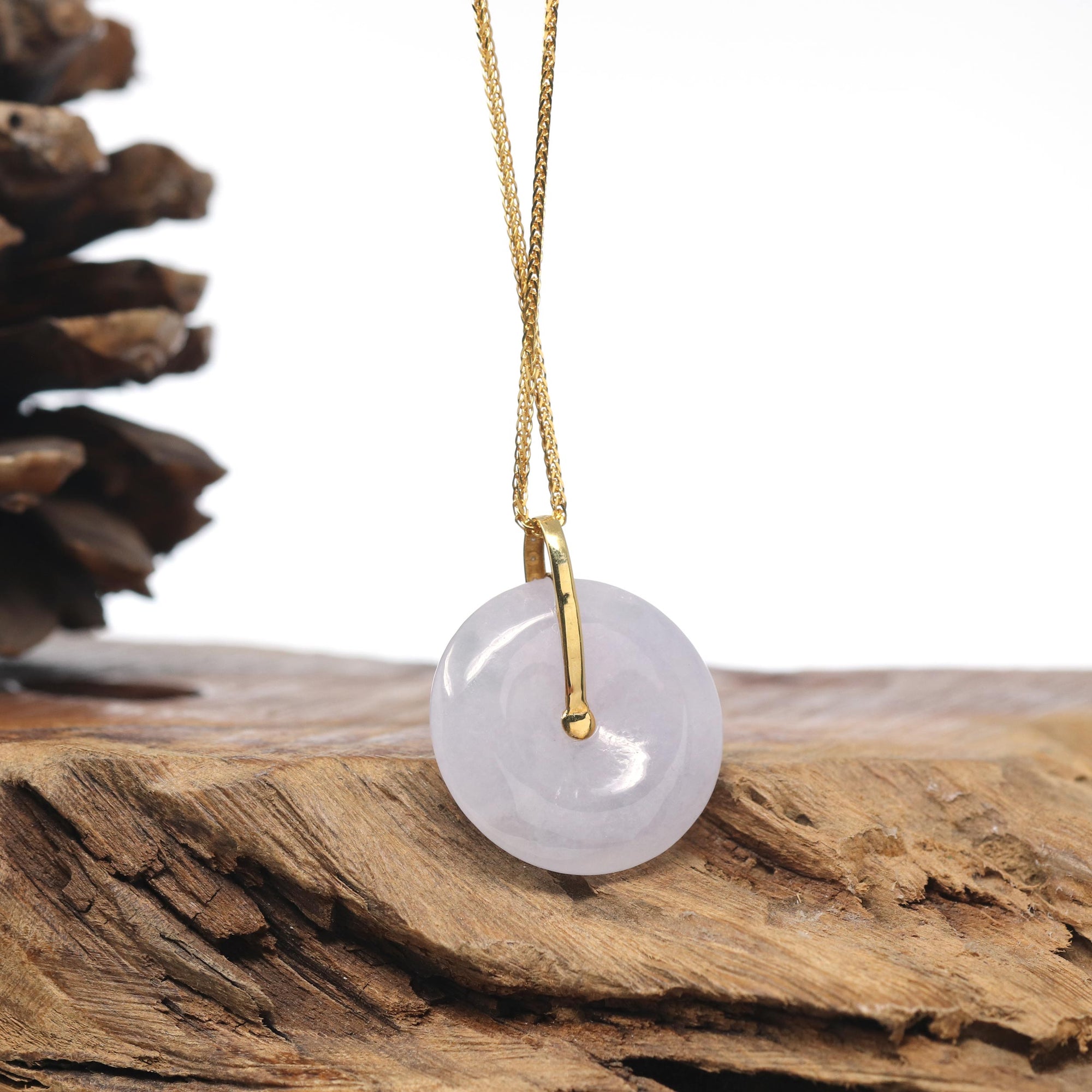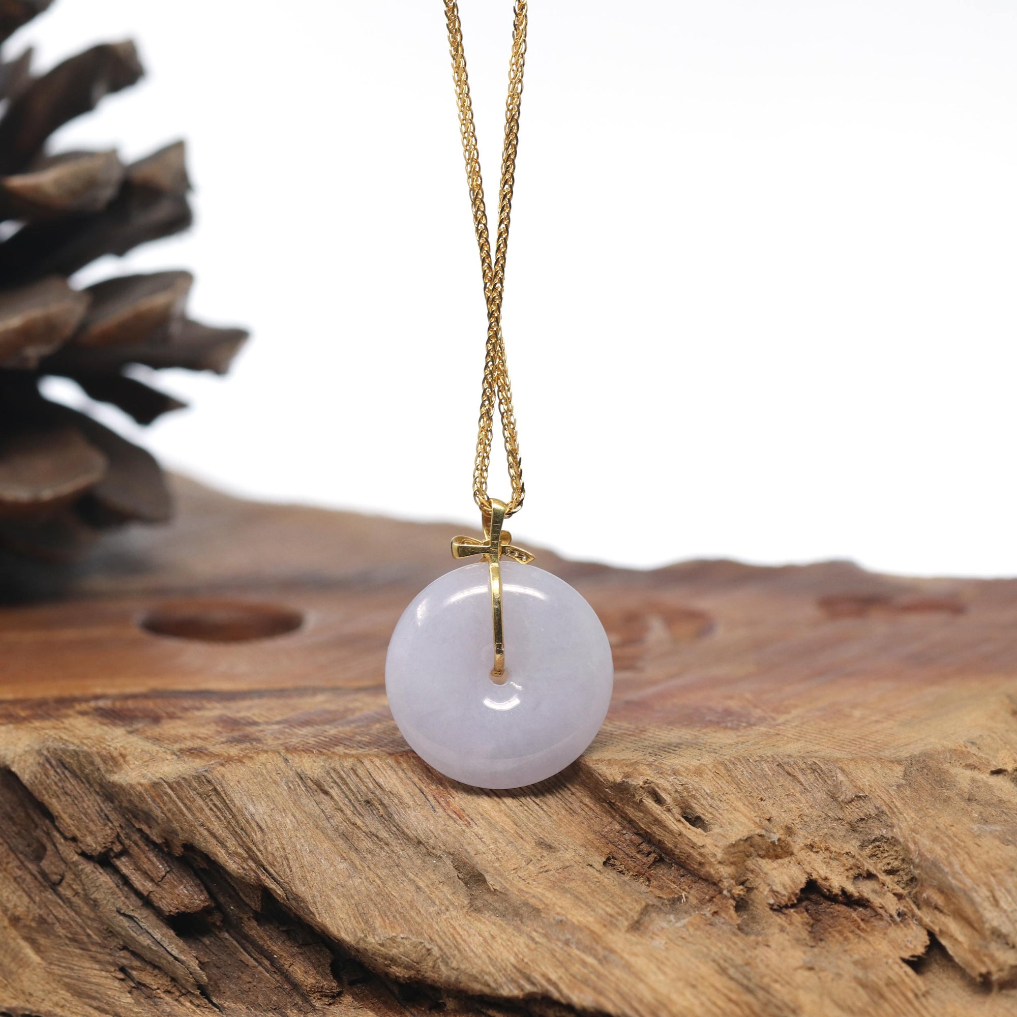 Baikalla Lavender Ping An Kou (Good Luck Button) Jadeite Jade Pendant W/ 18K Yellow Gold "RuYi" Bail