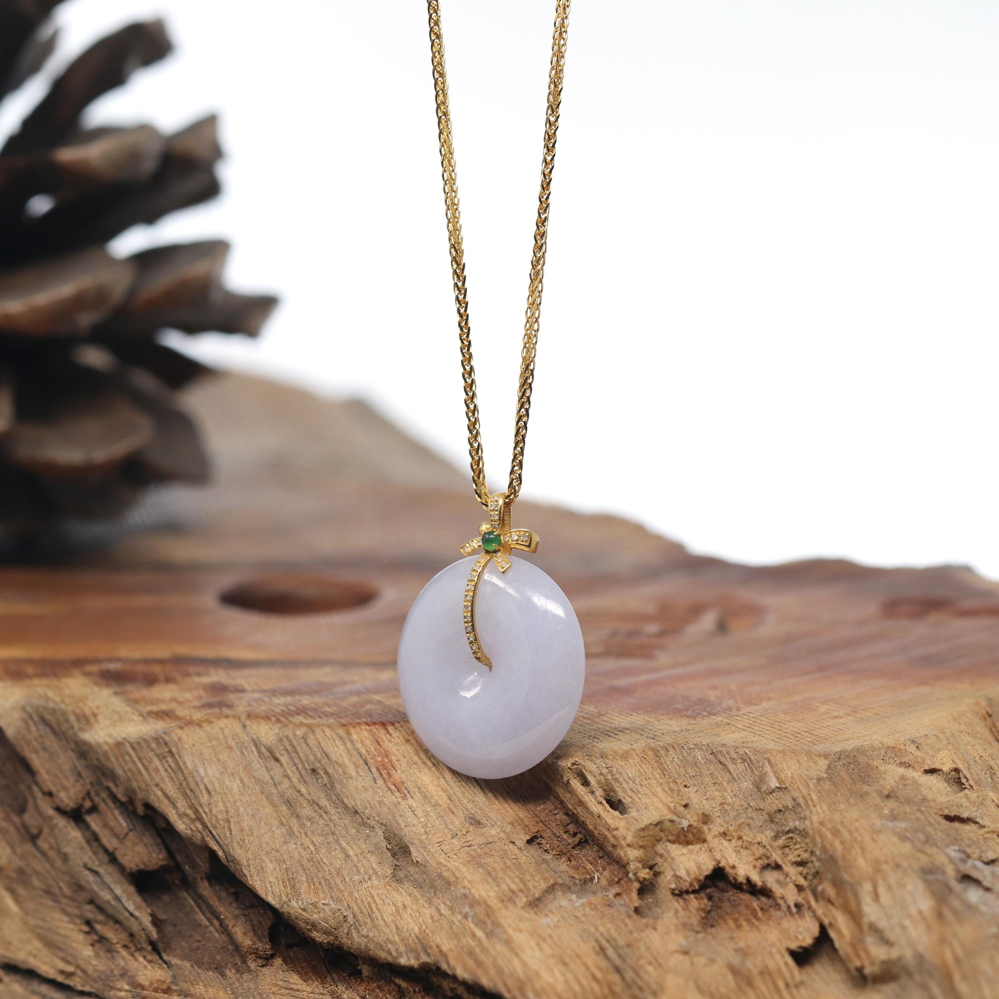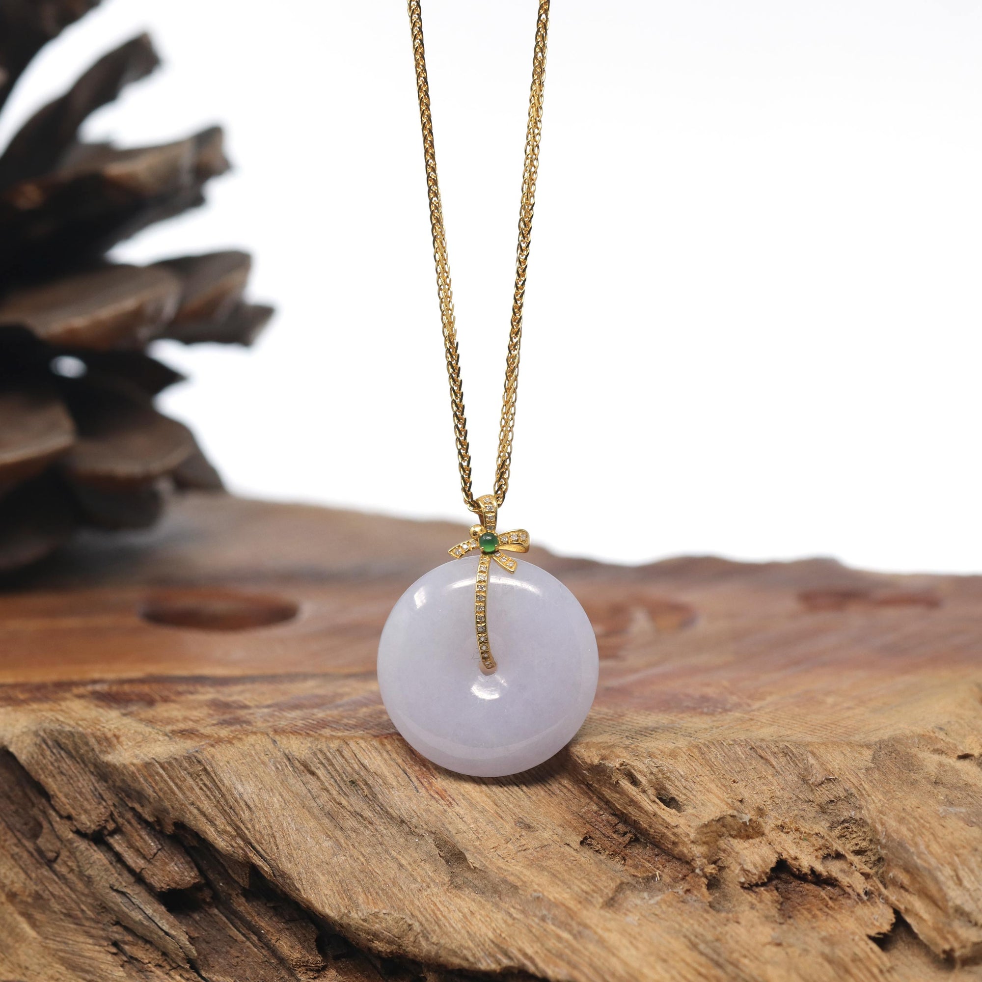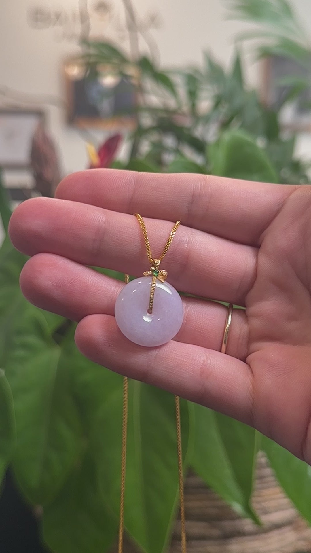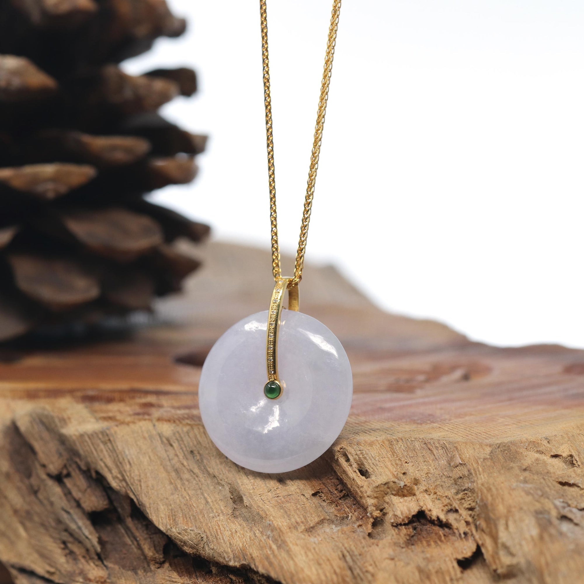 Baikalla Lavender Ping An Kou (Good Luck Button) Jadeite Jade Pendant W/ 18K Yellow Gold "RuYi" Bail