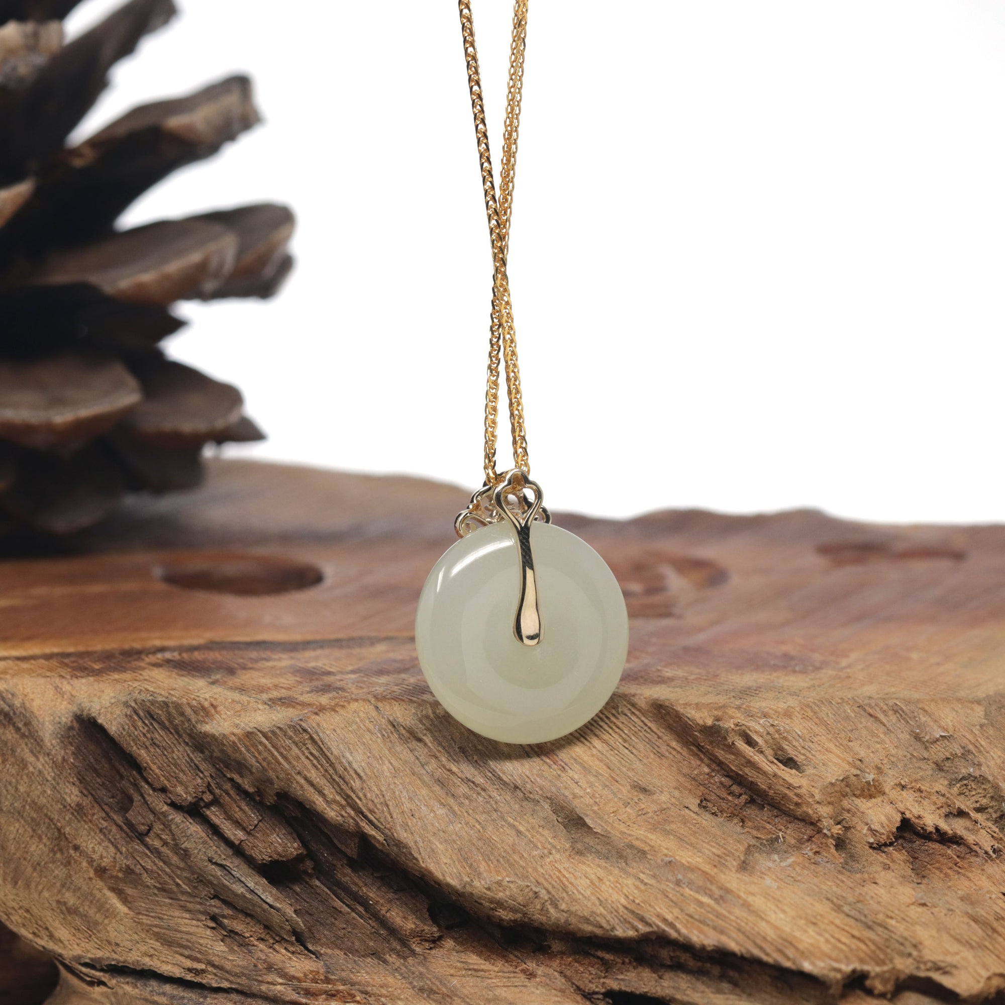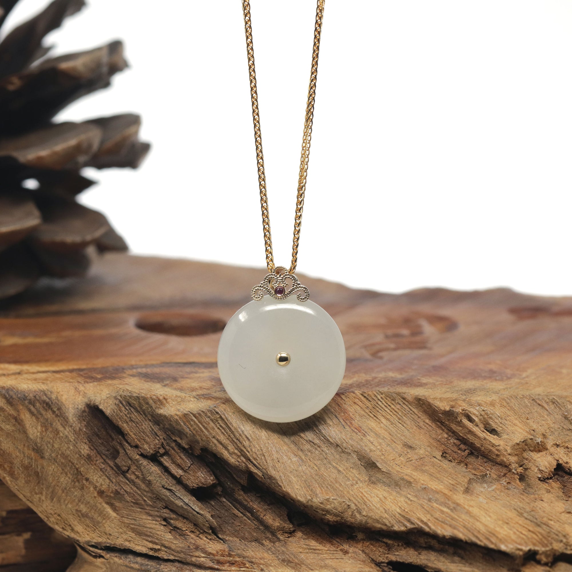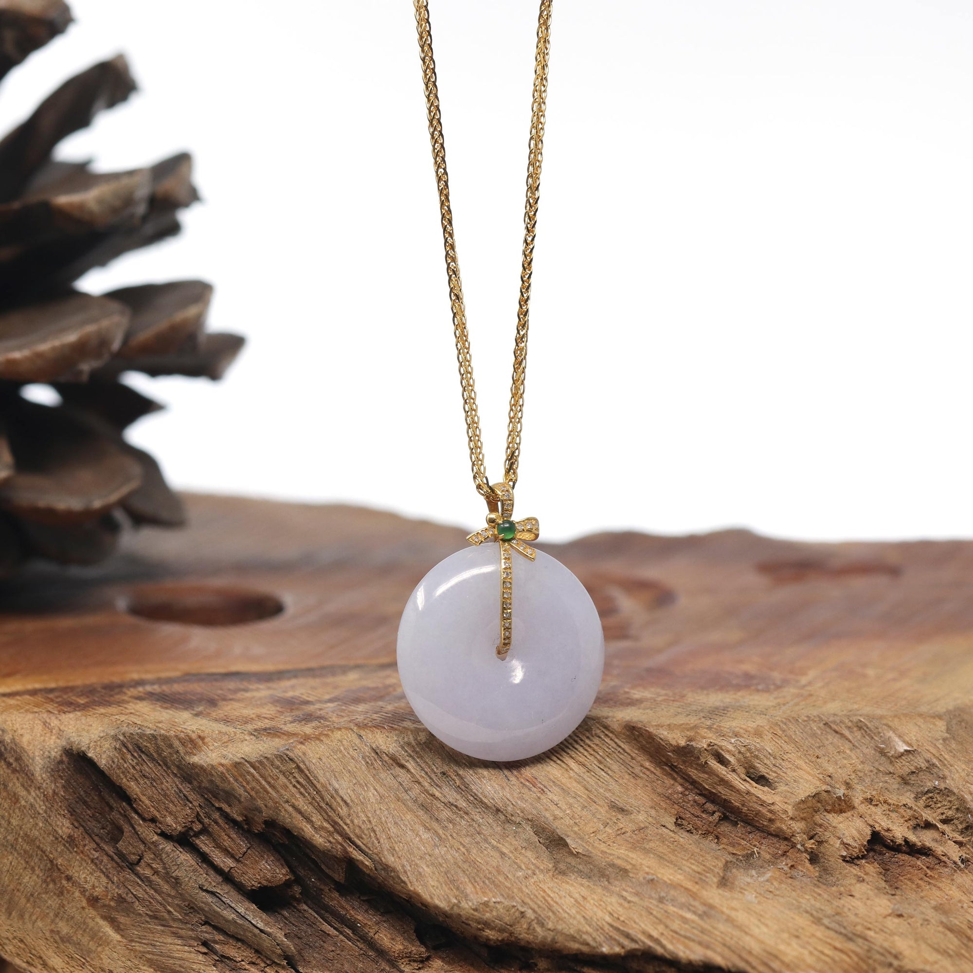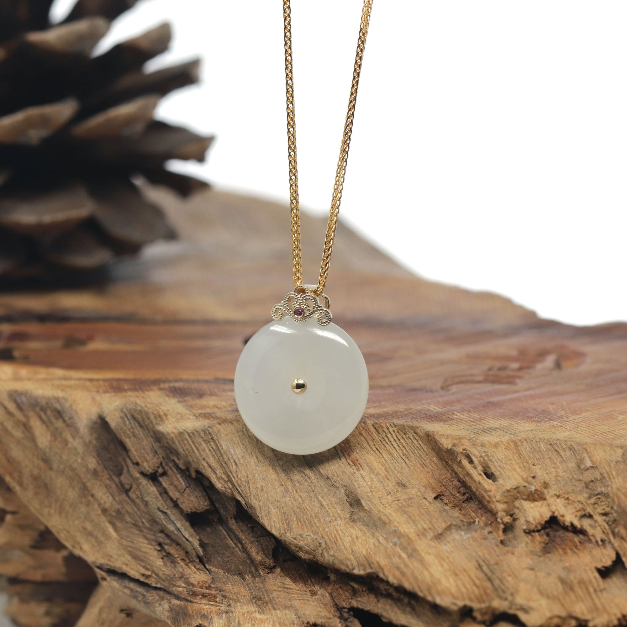 Baikalla Lavender Ping An Kou (Good Luck Button) Jadeite Jade Pendant W/ 18K Yellow Gold "RuYi" Bail