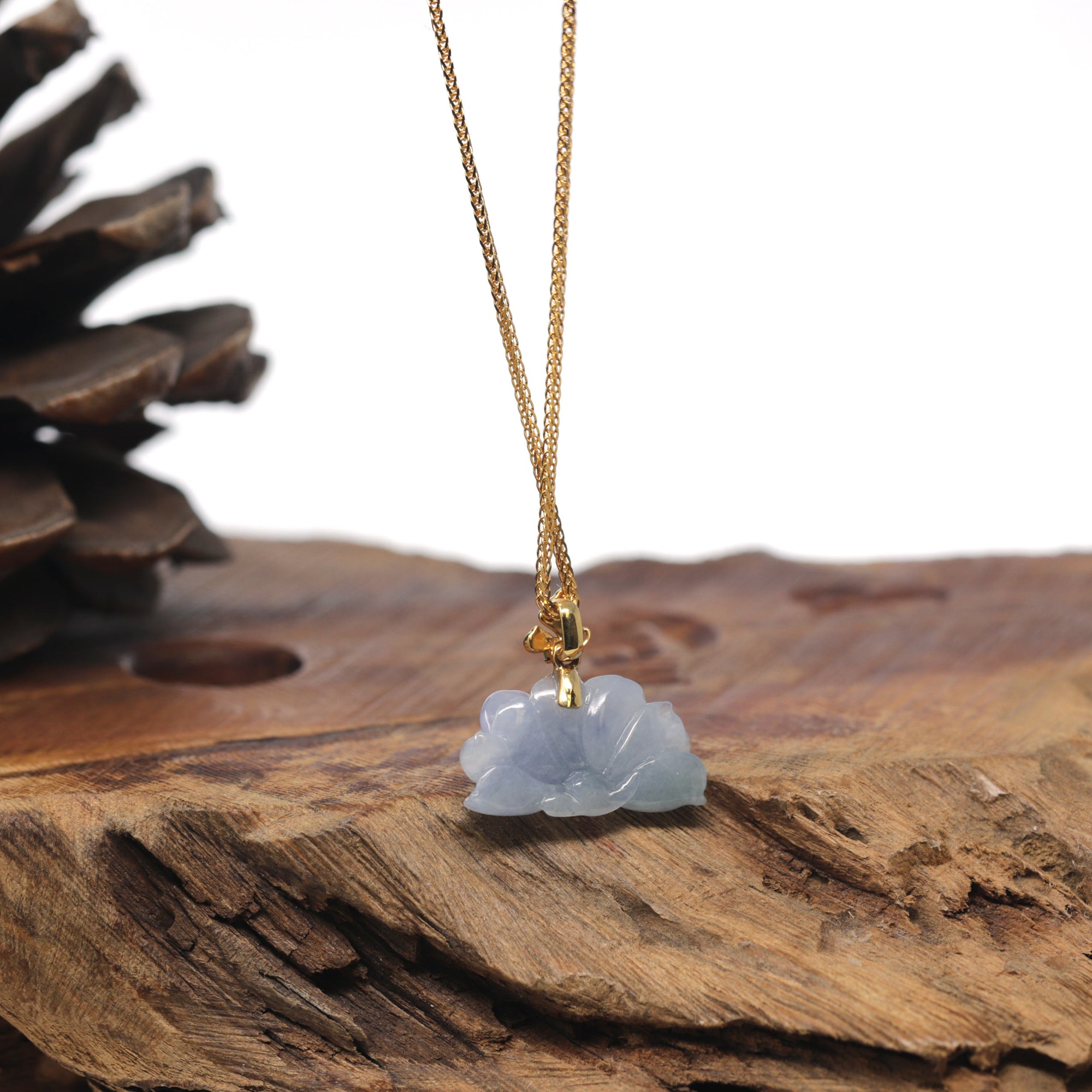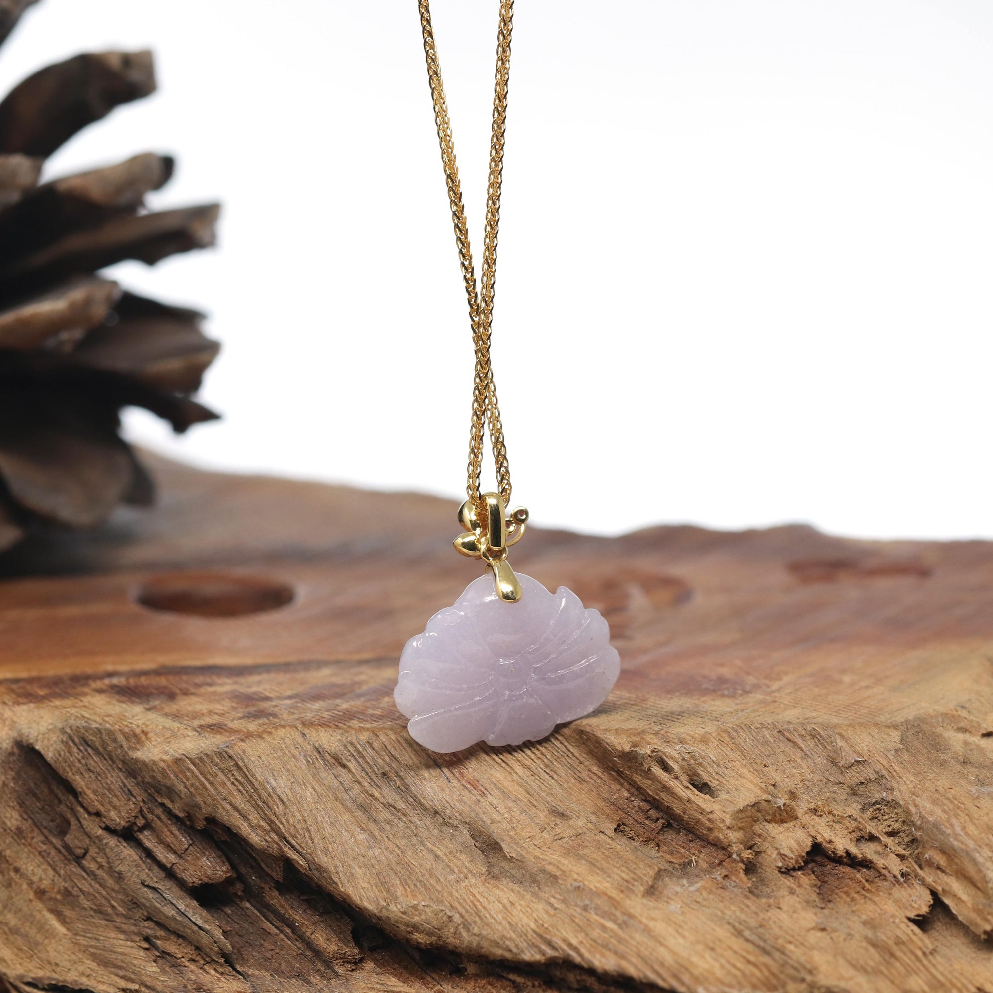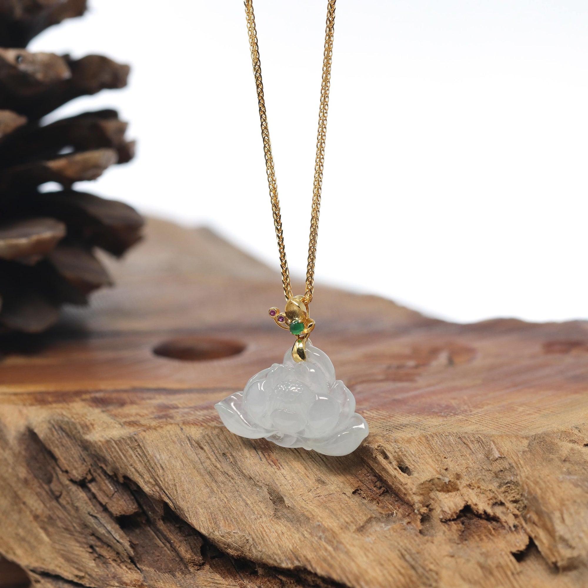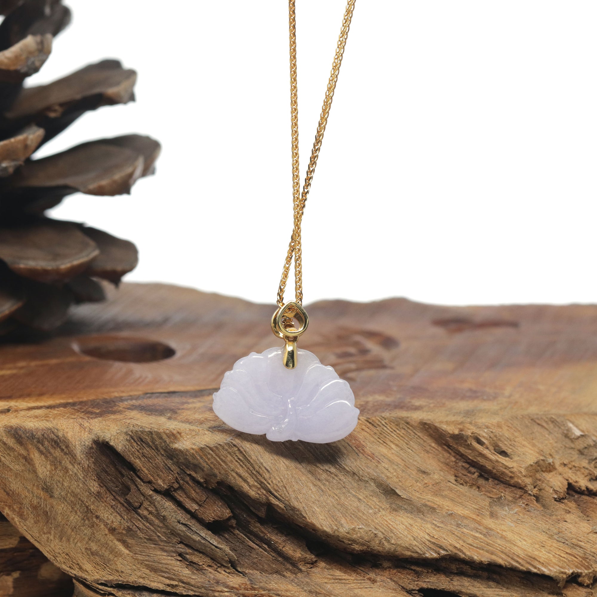 Baikalla Icy Lavender Lotus Jadeite Jade Pendant W/ 18K Yellow Gold Butterfly Bail & Diamonds