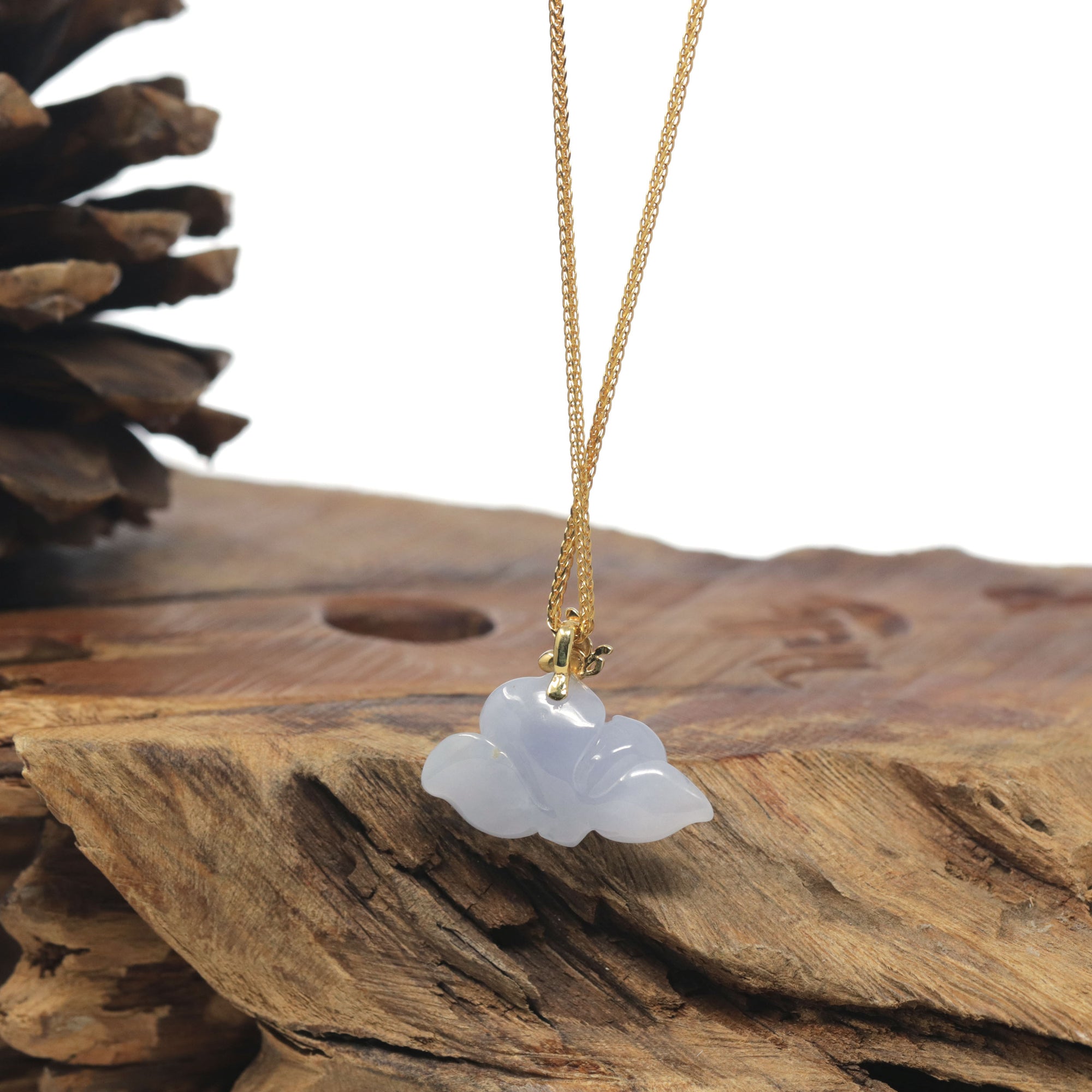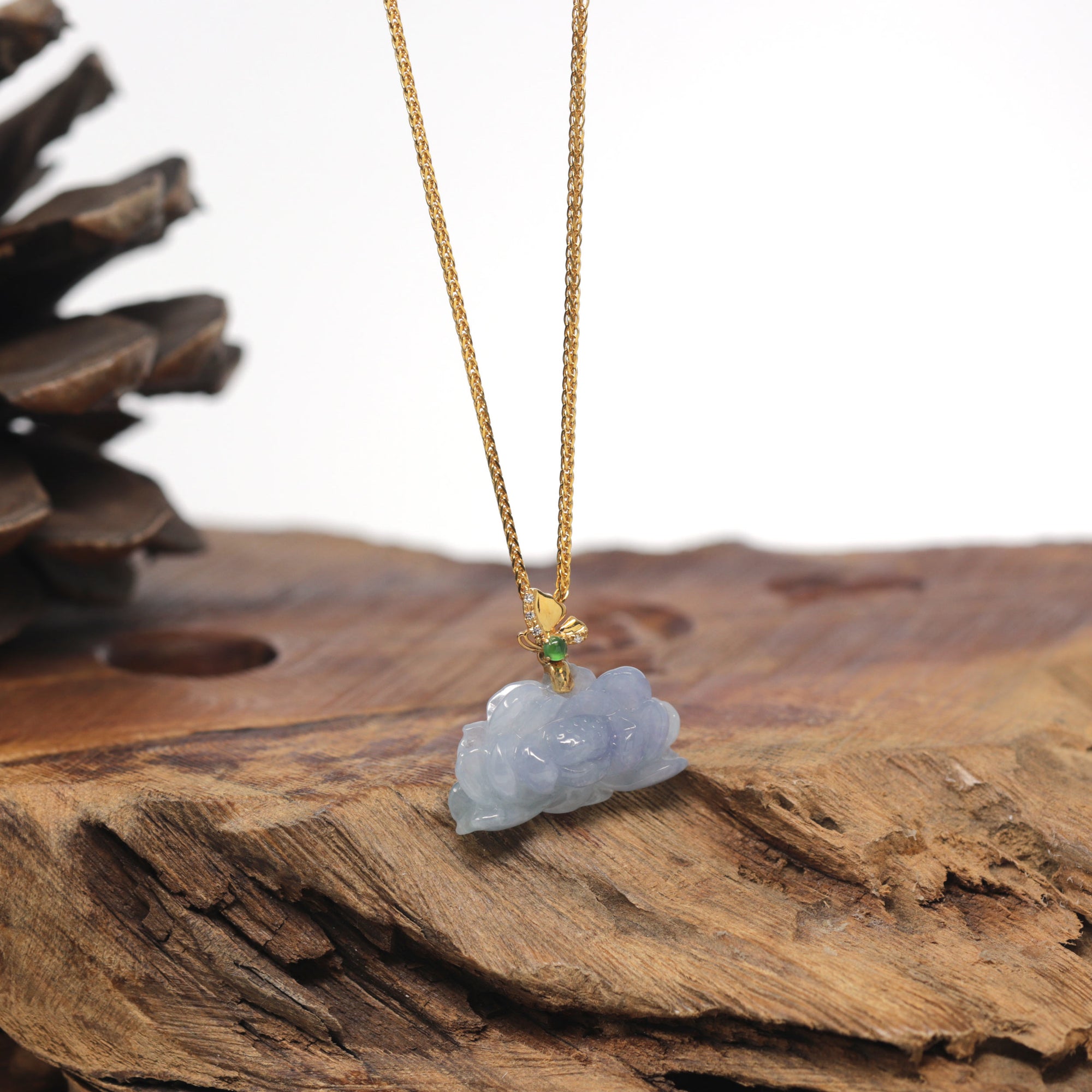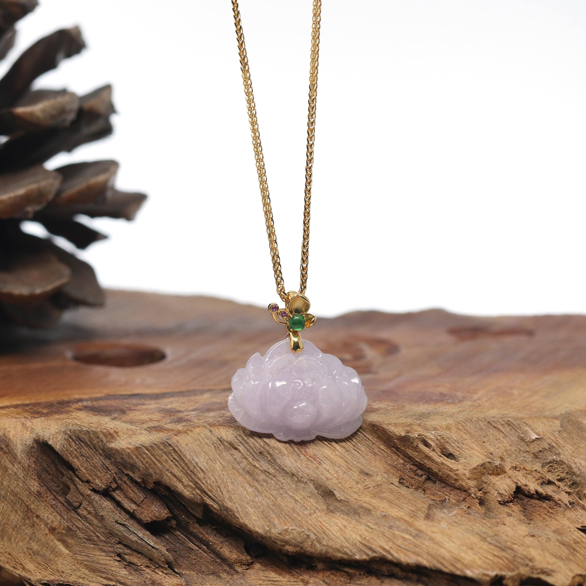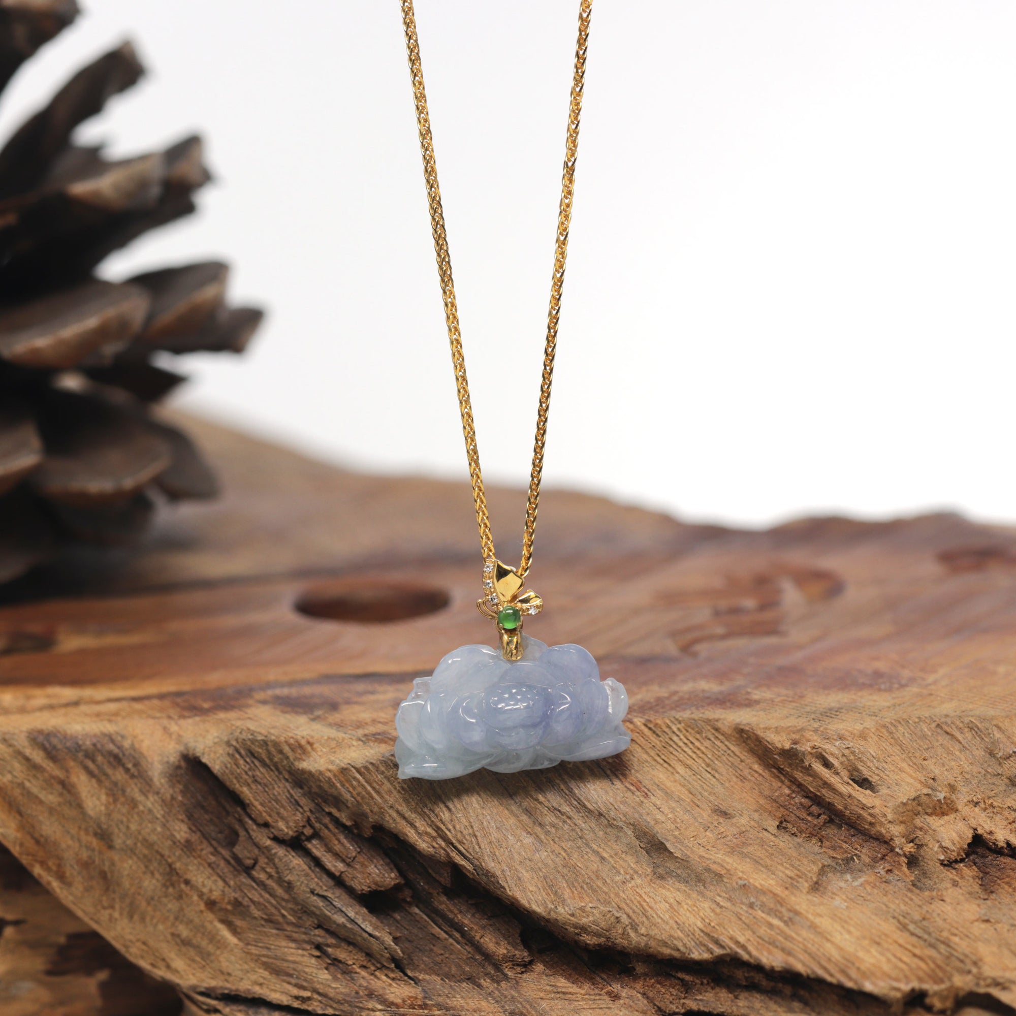 Baikalla Icy Lavender Lotus Jadeite Jade Pendant W/ 18K Yellow Gold Butterfly Bail & Diamonds