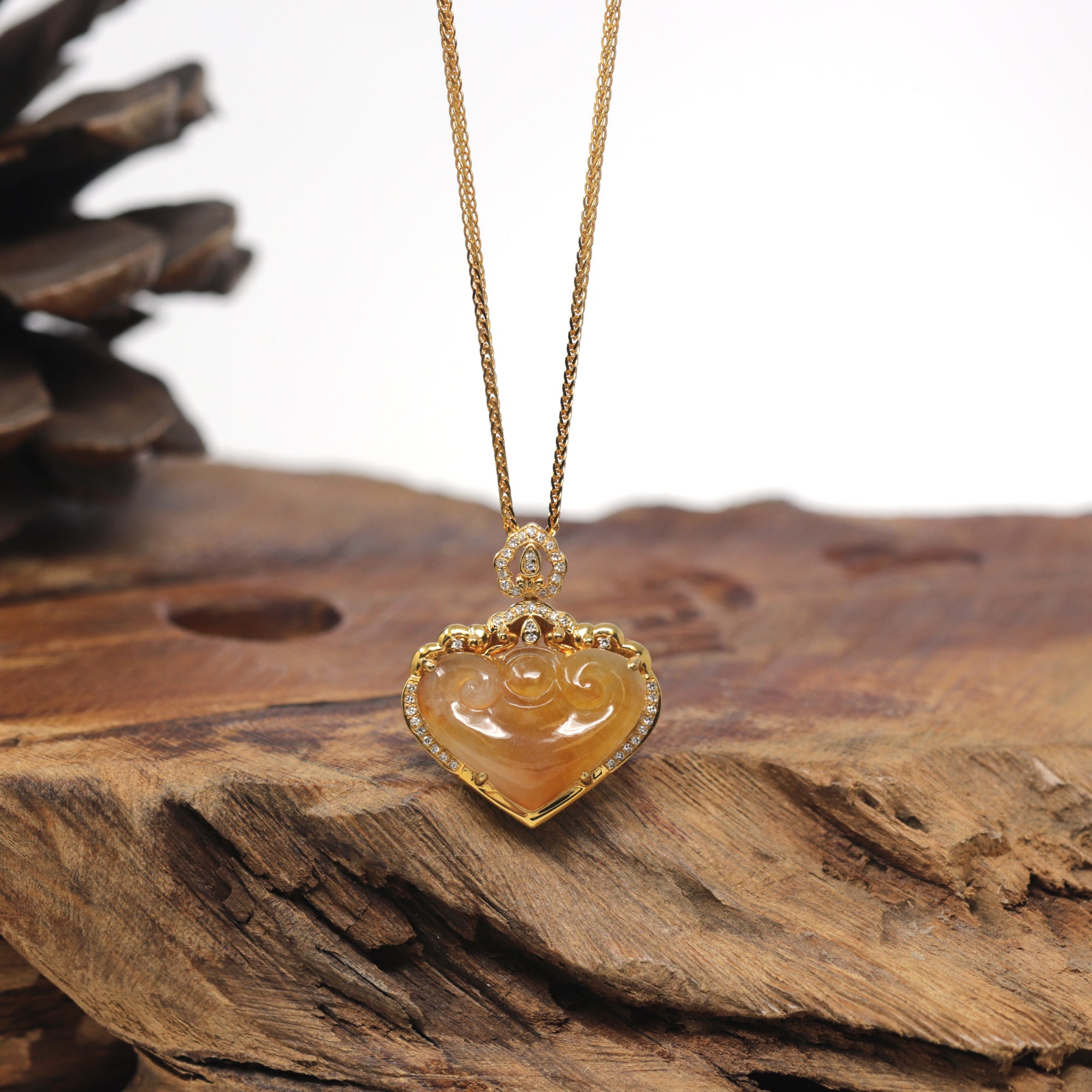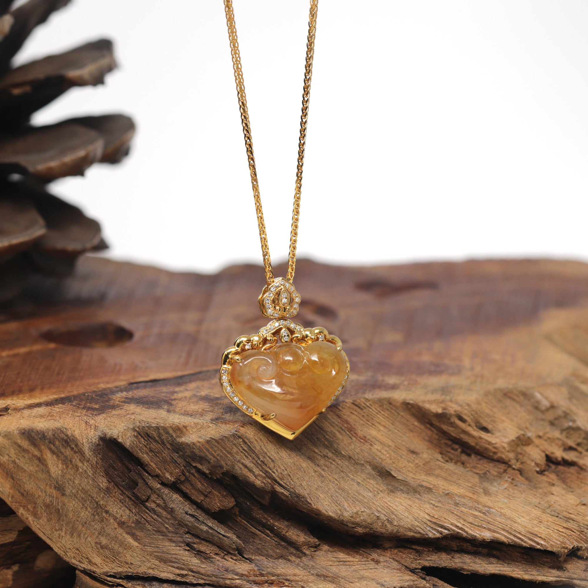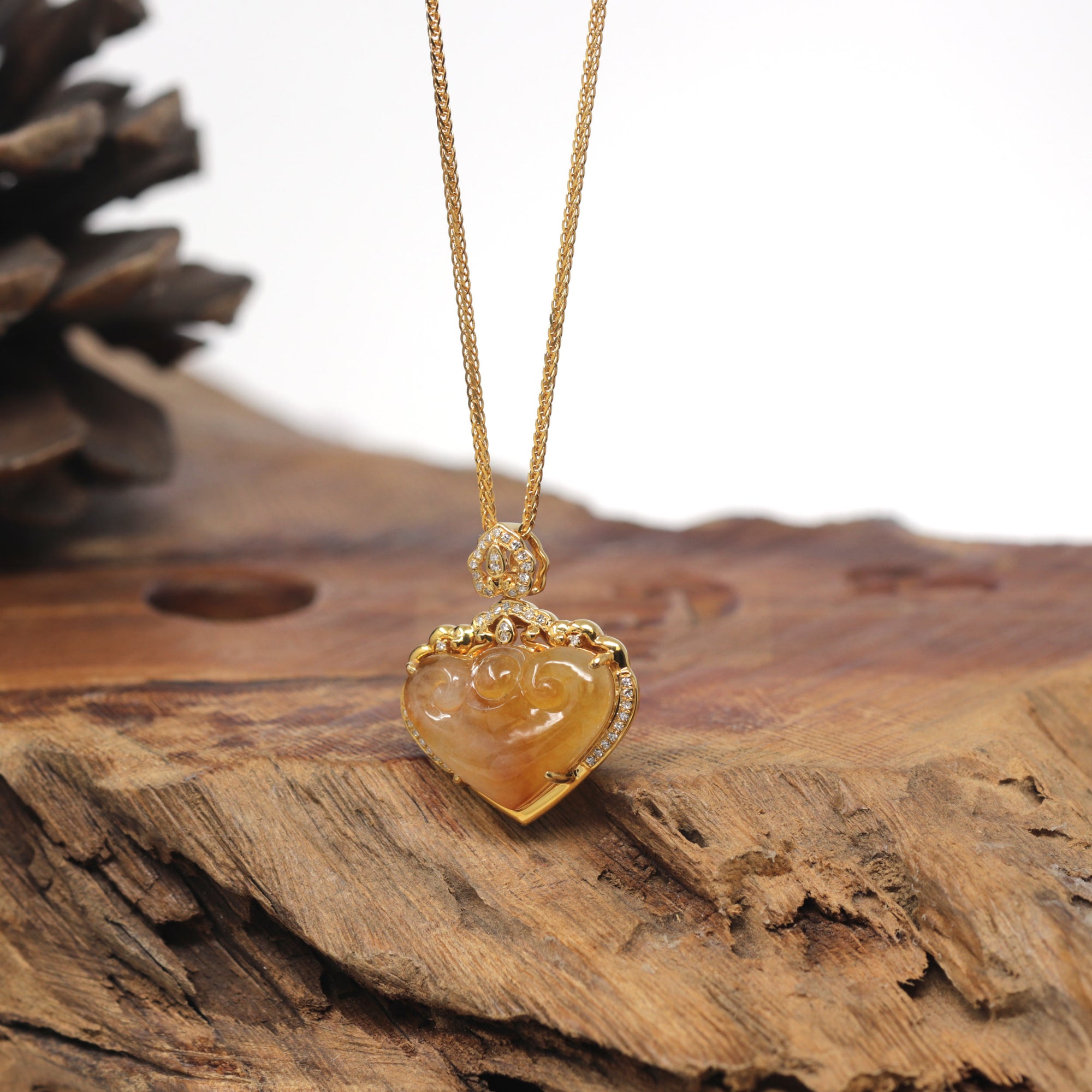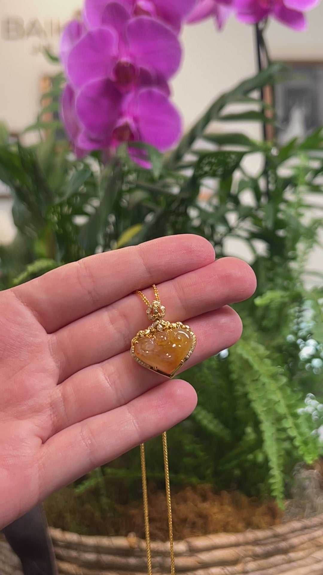 Baikalla Icy Yellow & Orange "RuYi" Jadeite Jade Pendant W/ 18K Yellow Gold Bail & Diamonds