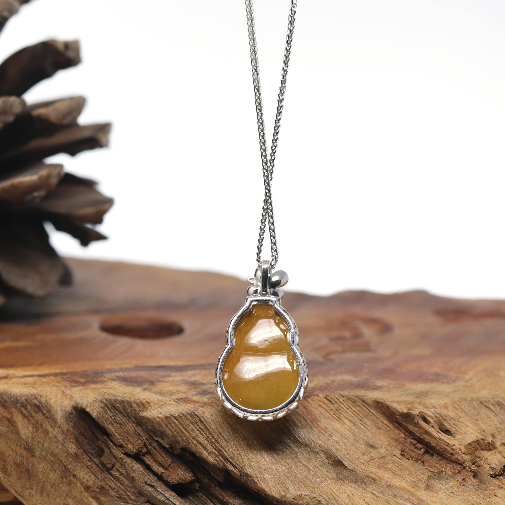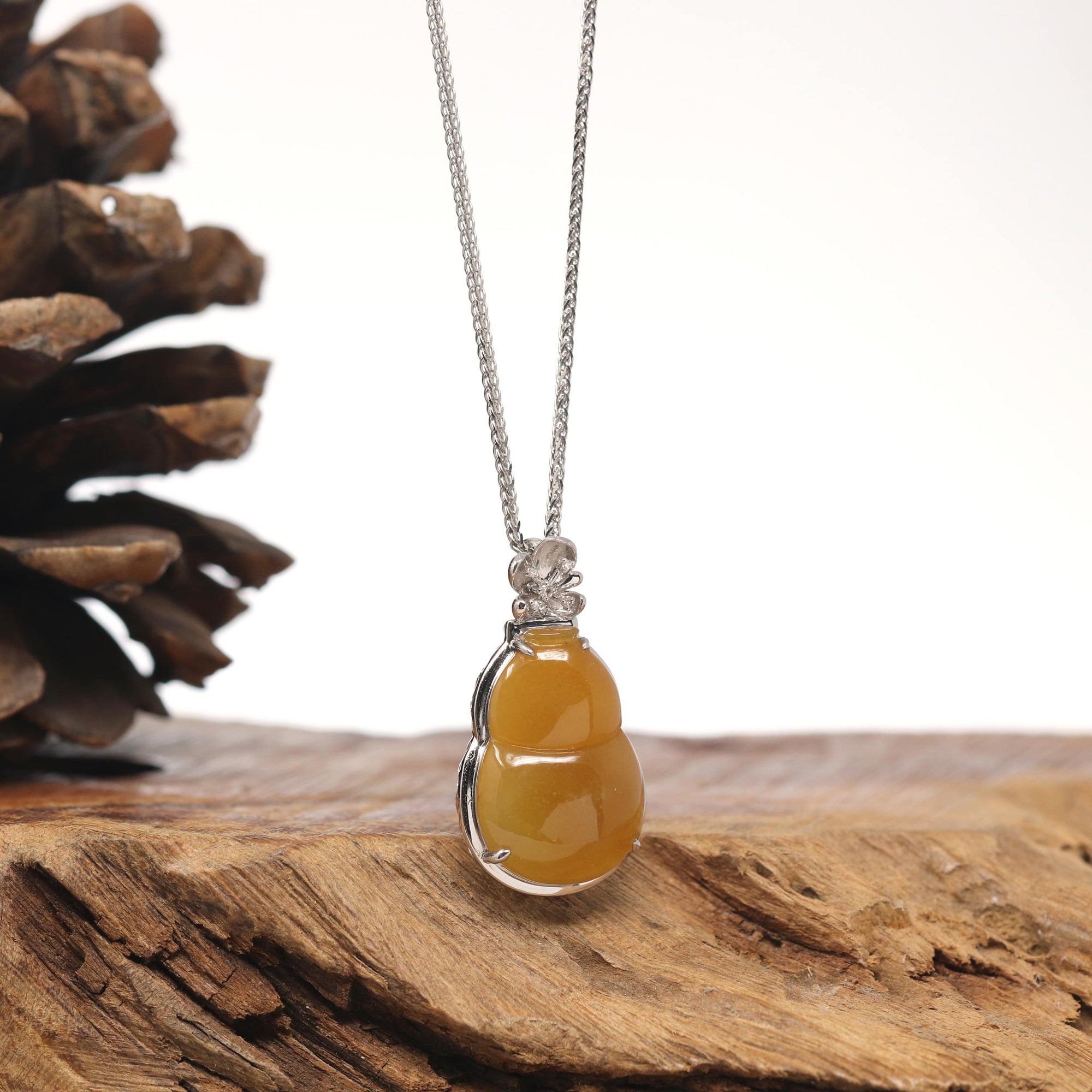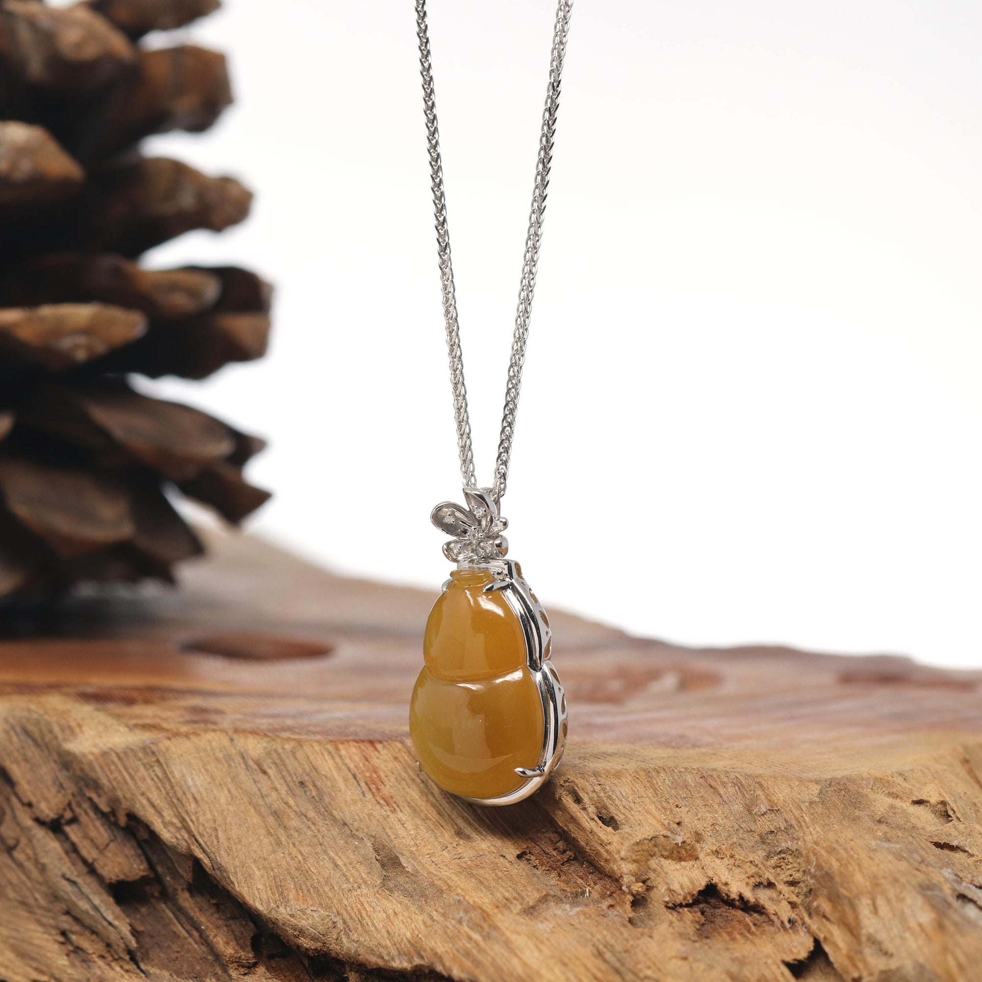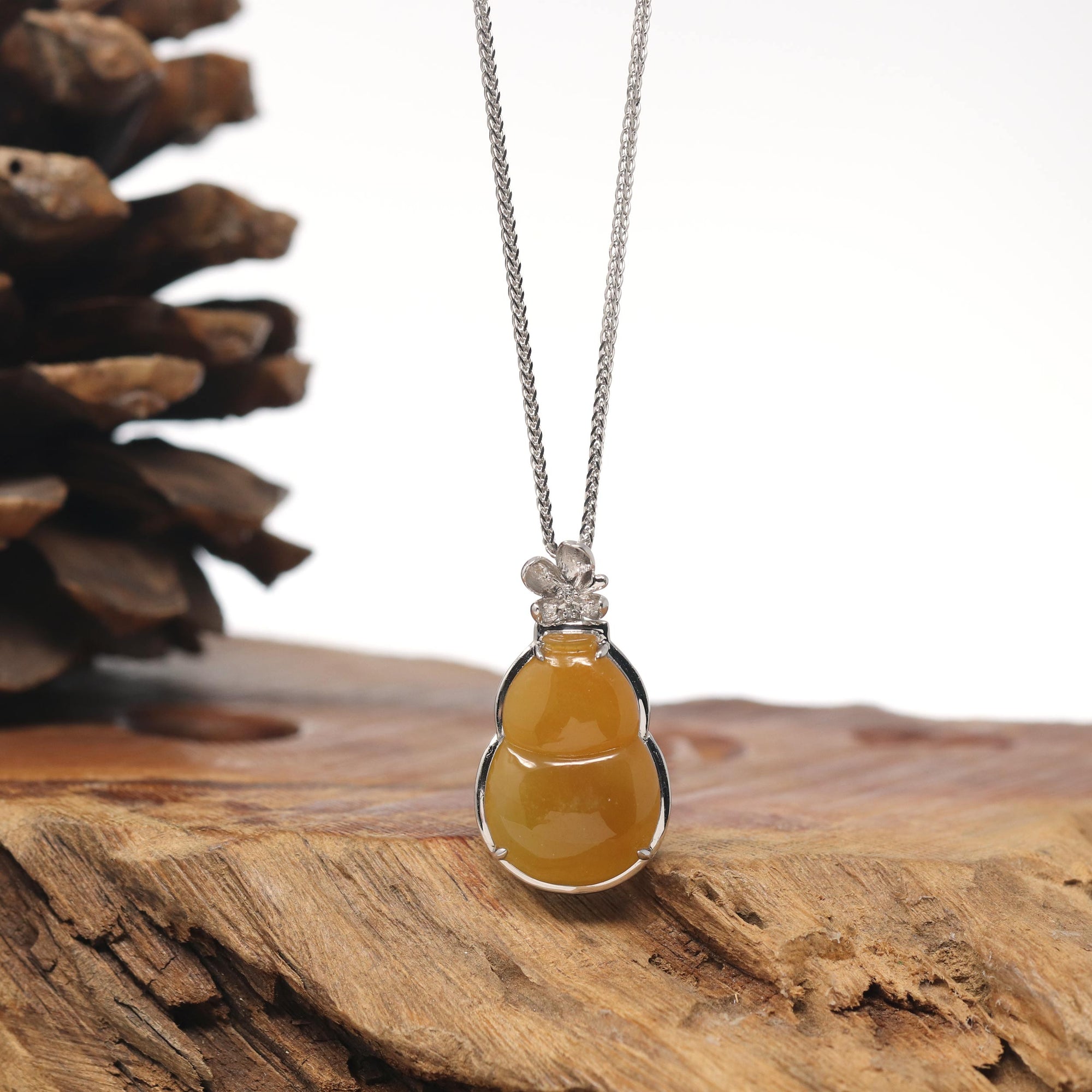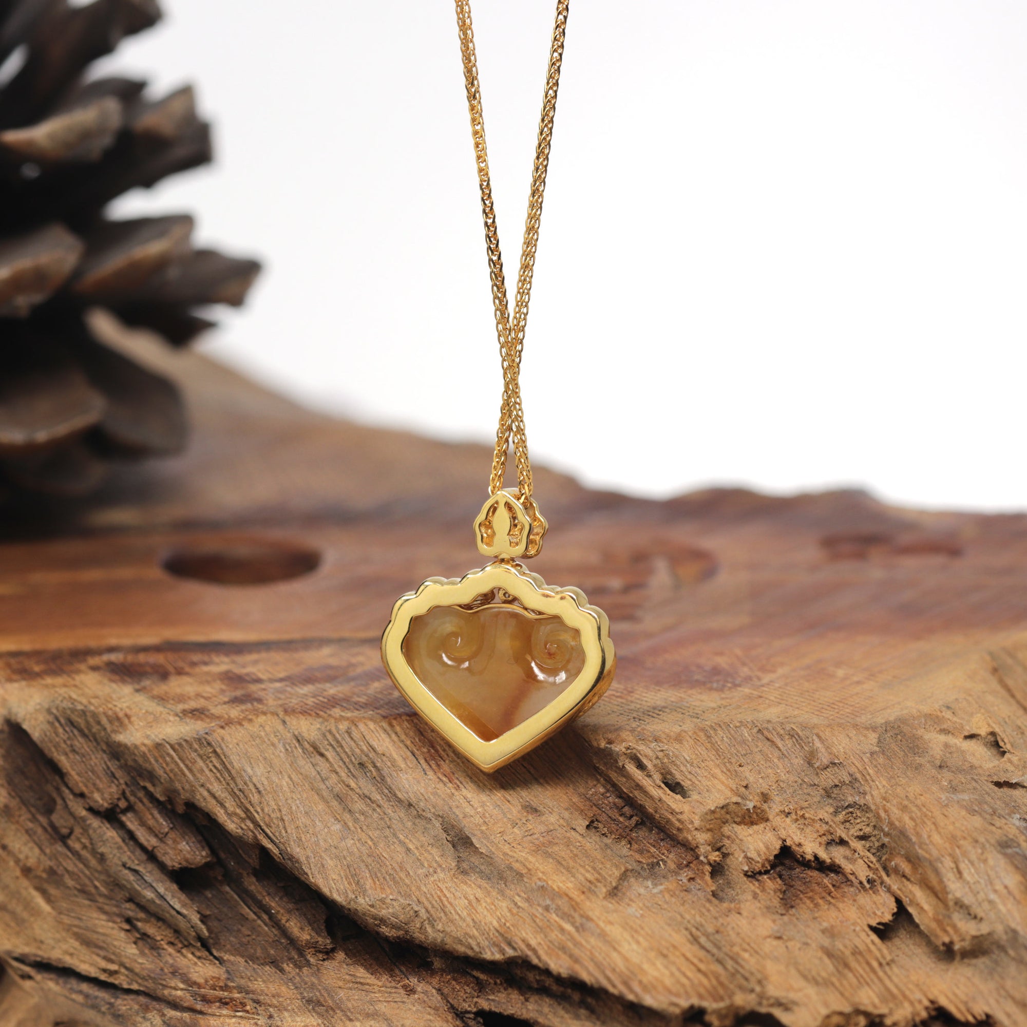Baikalla Icy Yellow & Orange "RuYi" Jadeite Jade Pendant W/ 18K Yellow Gold Bail & Diamonds