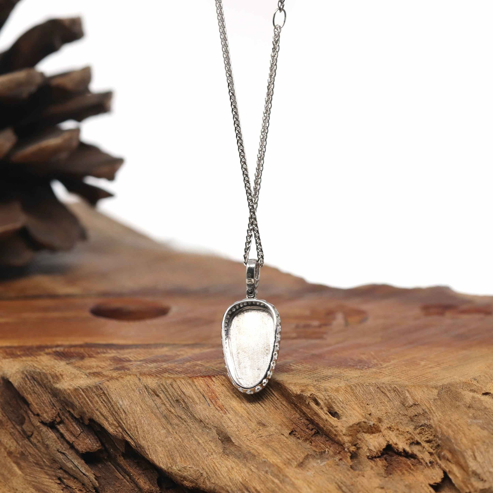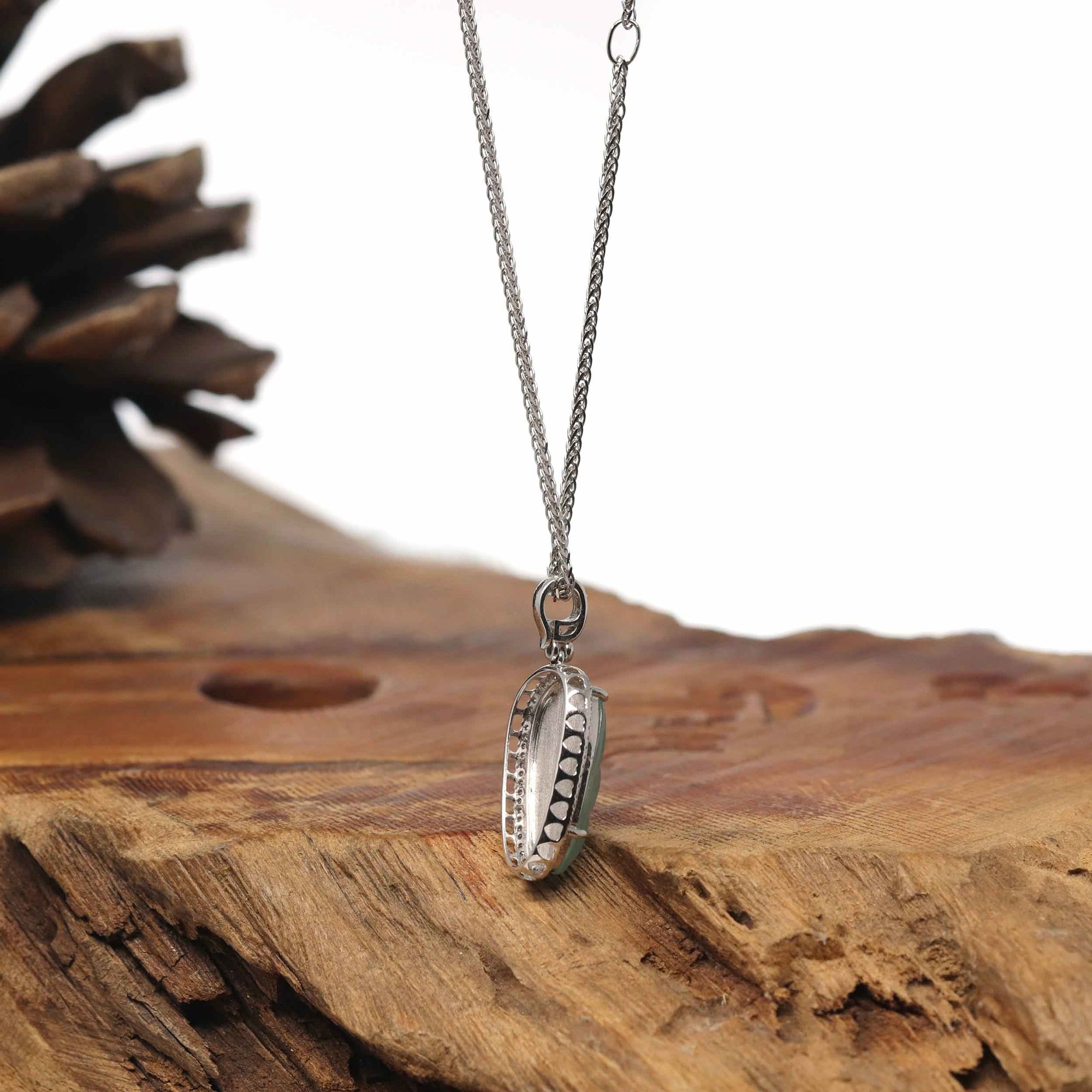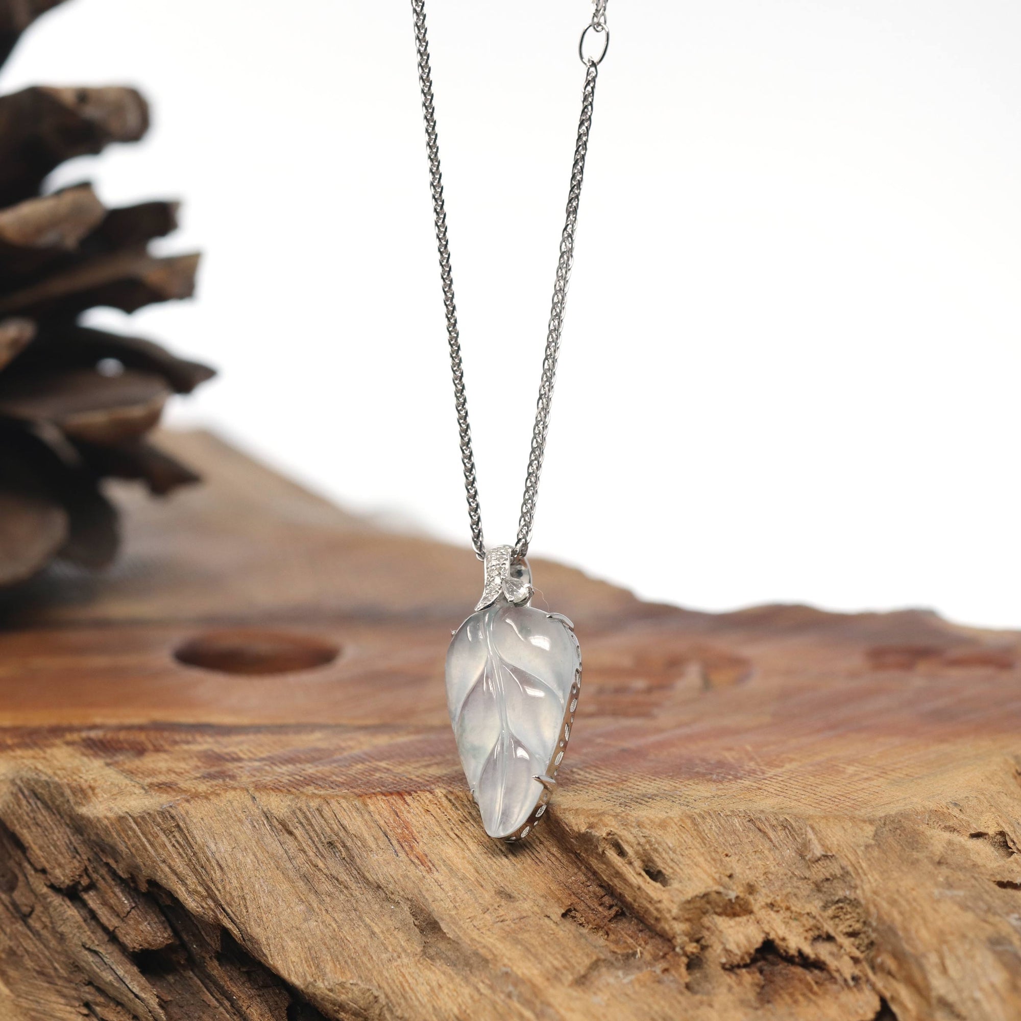 18K White Gold Necklace Ice Leaf Jadeite Jade Pendant Necklace W/ Natural Diamonds