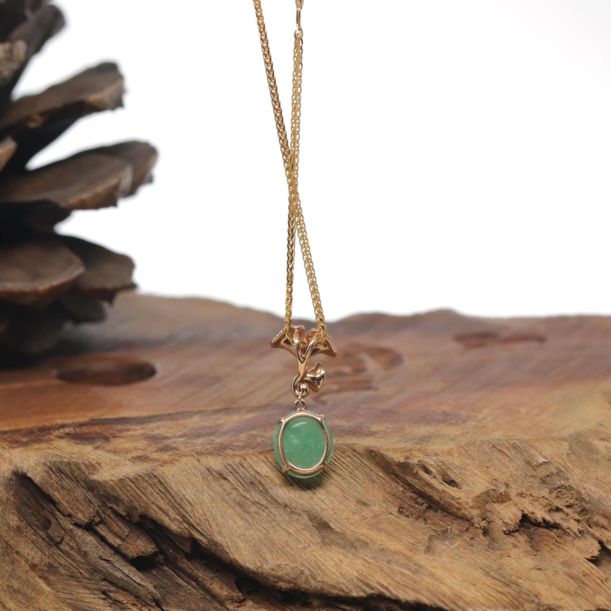 Baikalla Oval Apple-Green Jadeite Jade Pendant W/ 18K Rose Gold Bail & Diamonds