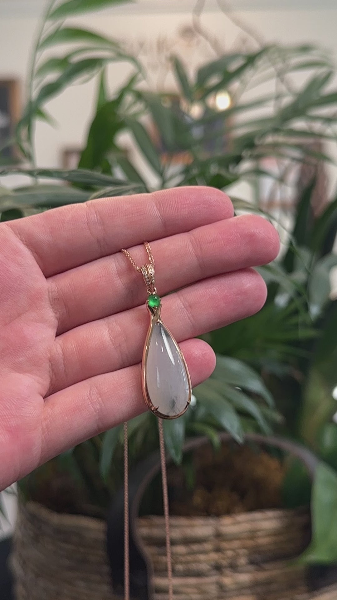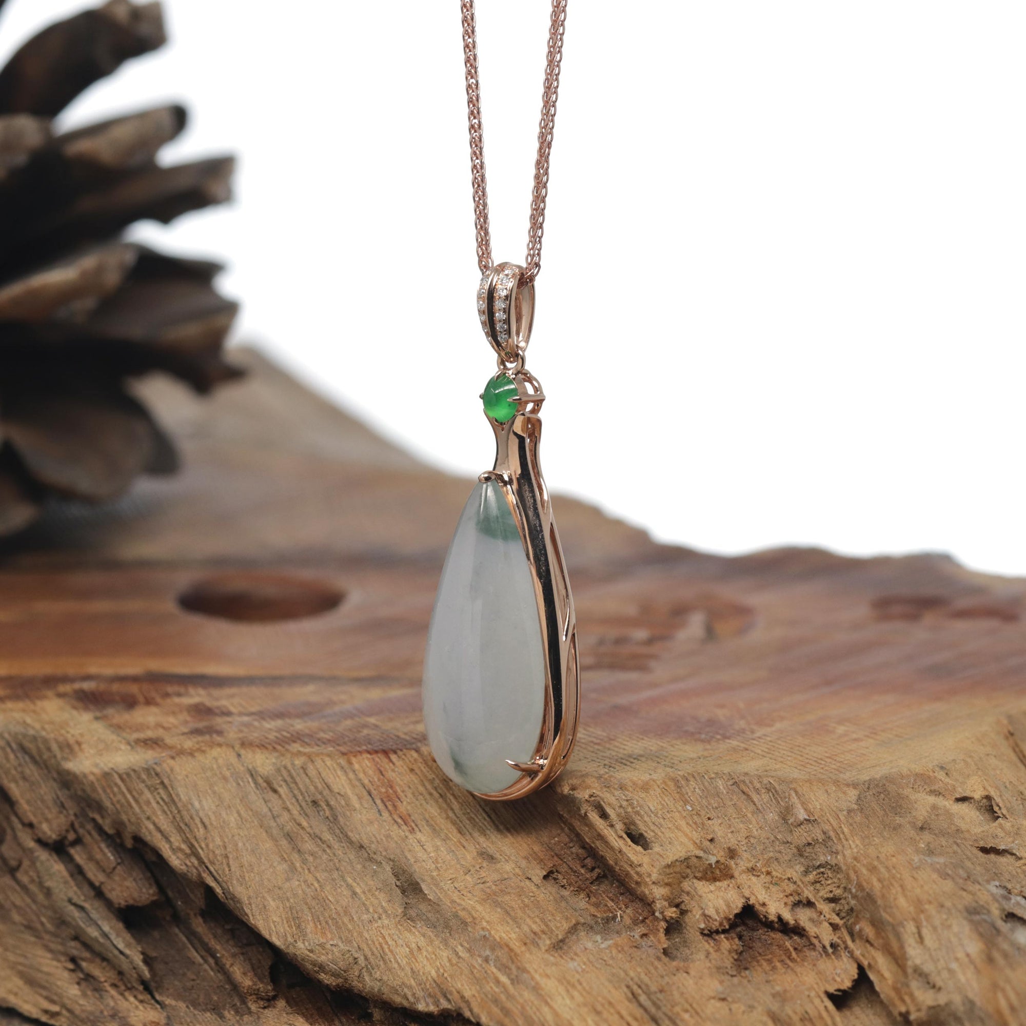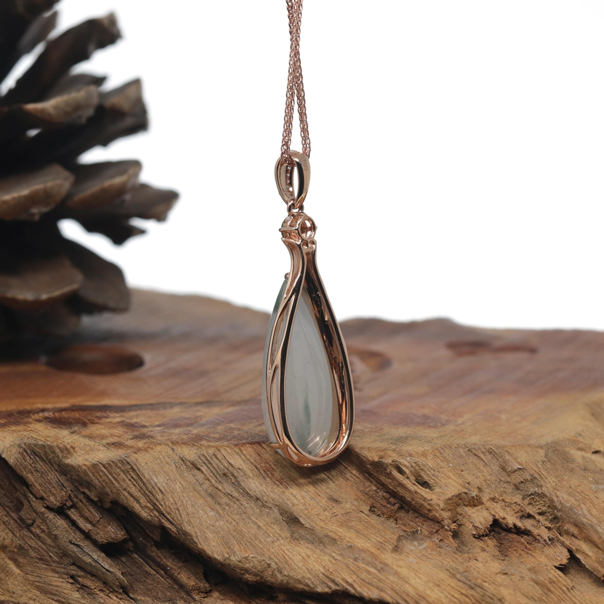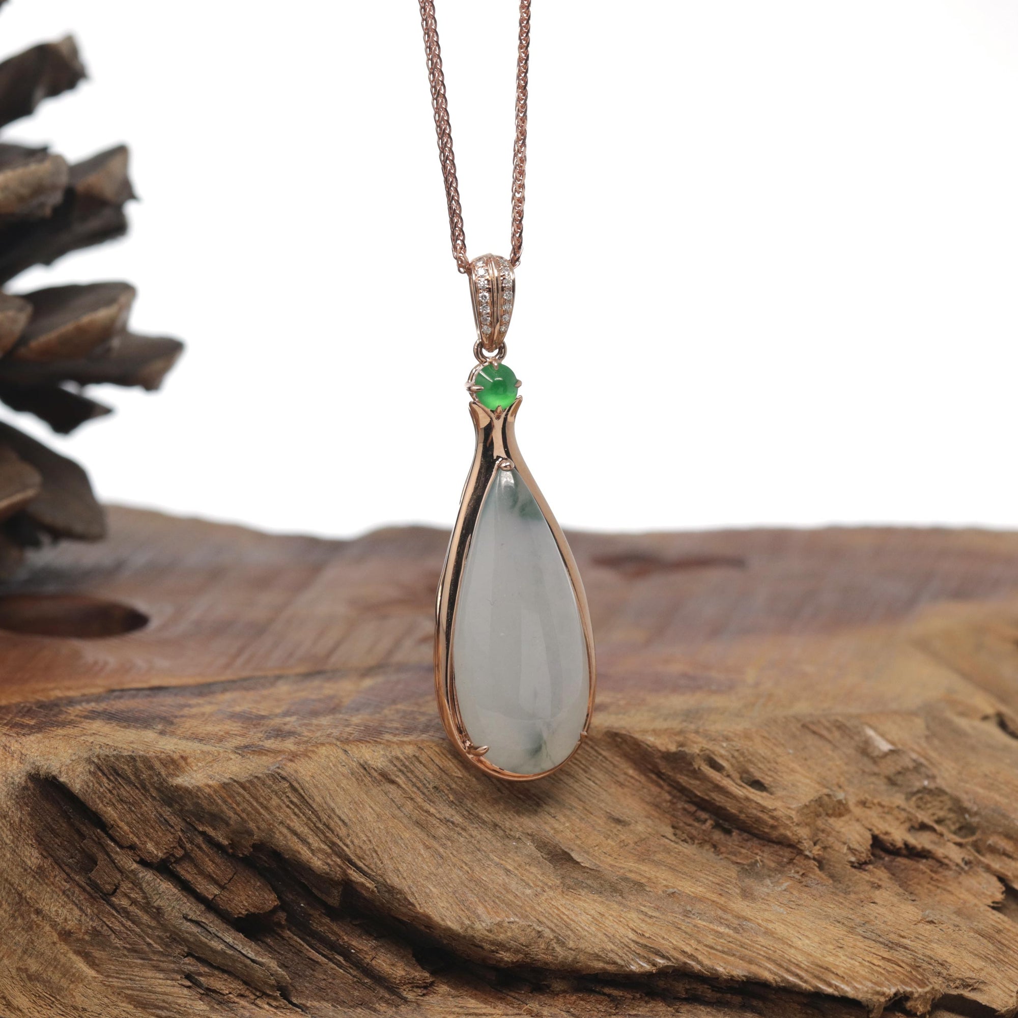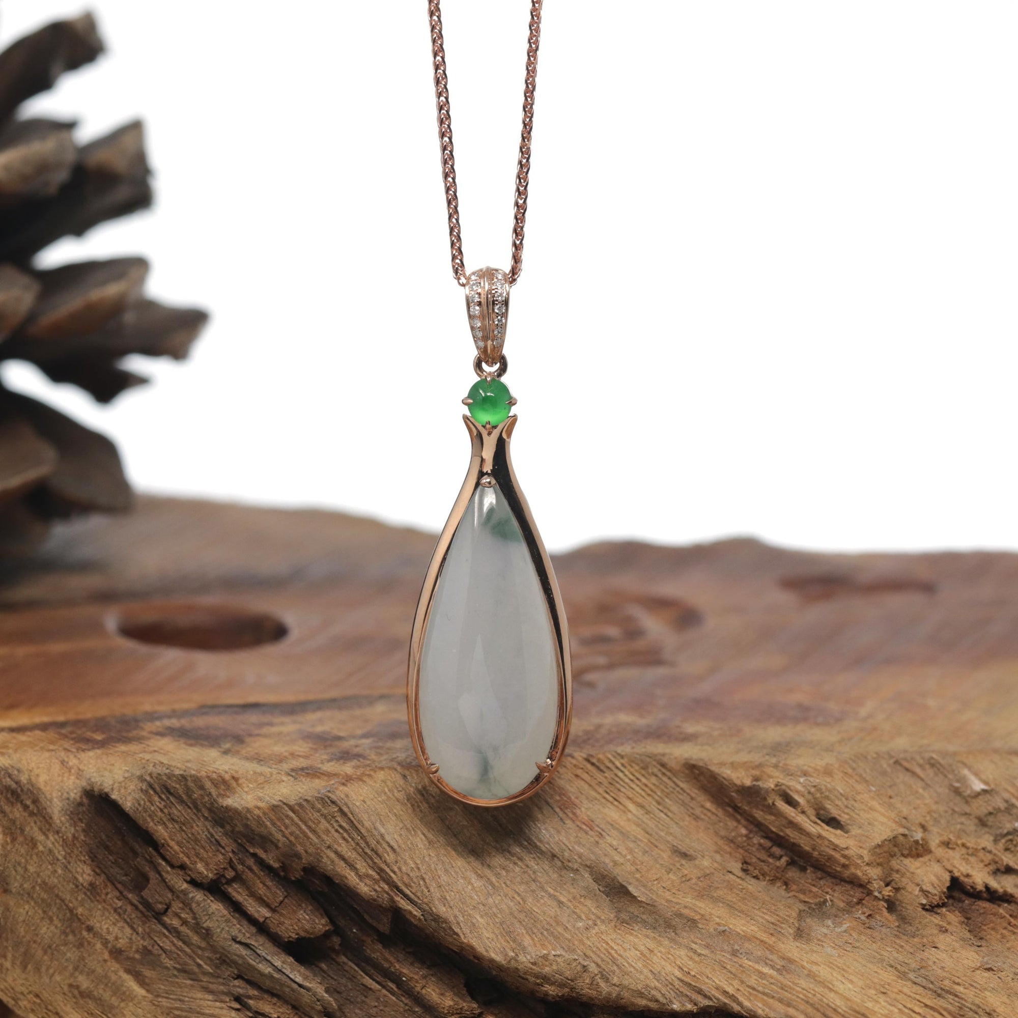 Baikalla 18K Rose Gold "Tear-Drop" Icy Blue Jadeite Jade Pendant W/ Diamonds & Imperial Jade
