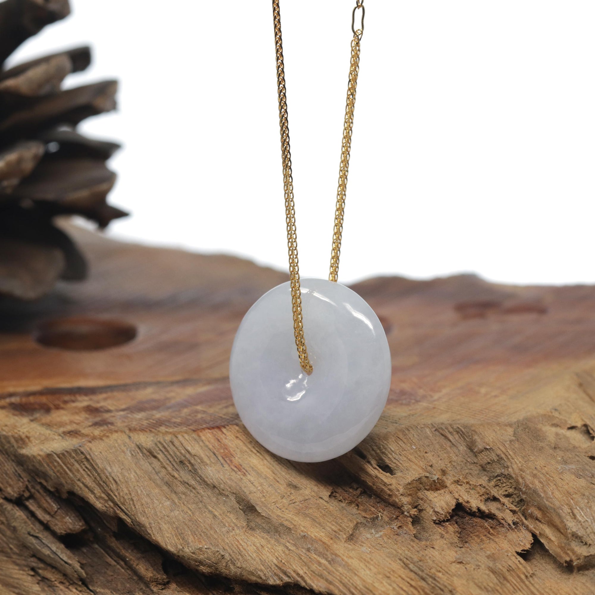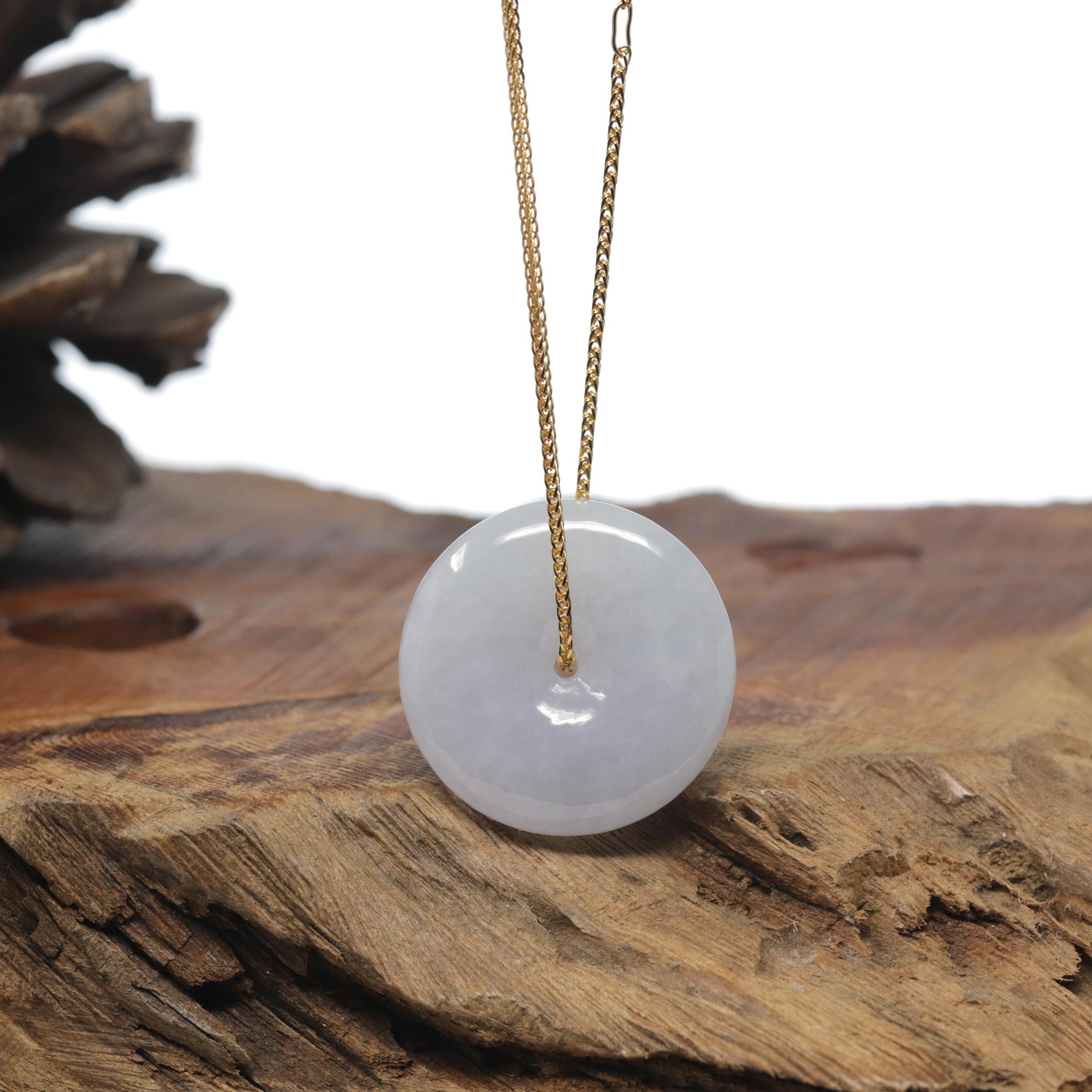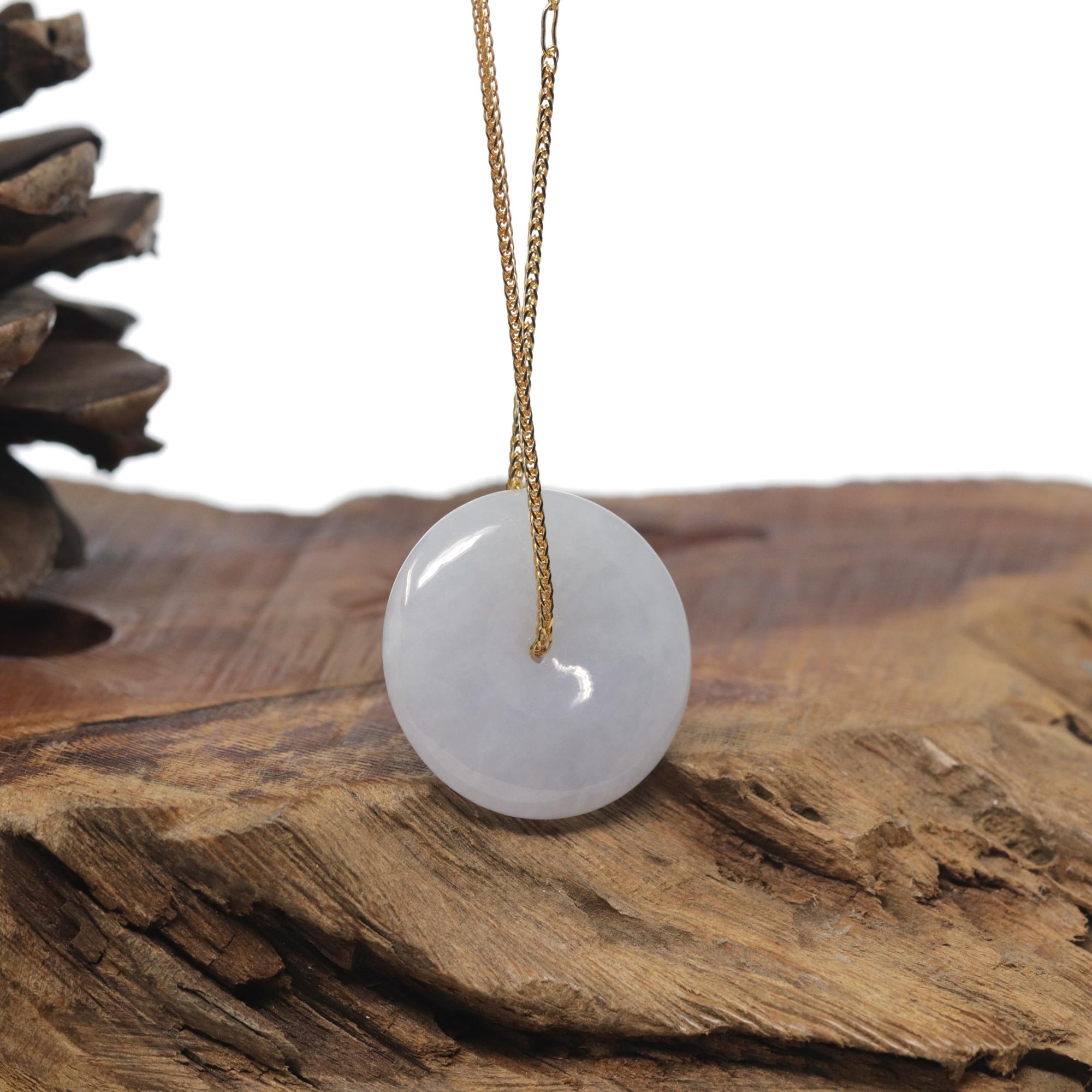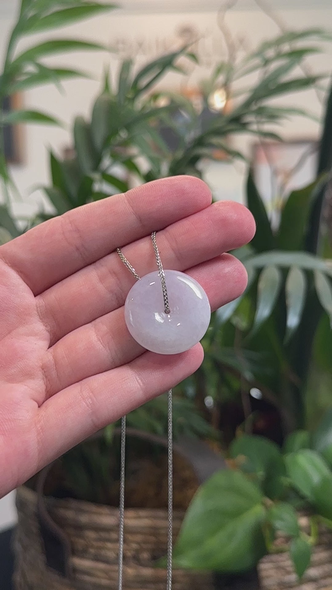 Baikalla "Ping An Kou" (Good Luck Button) Icy Lavender Burmese Jadeite Jade Pendant Necklace