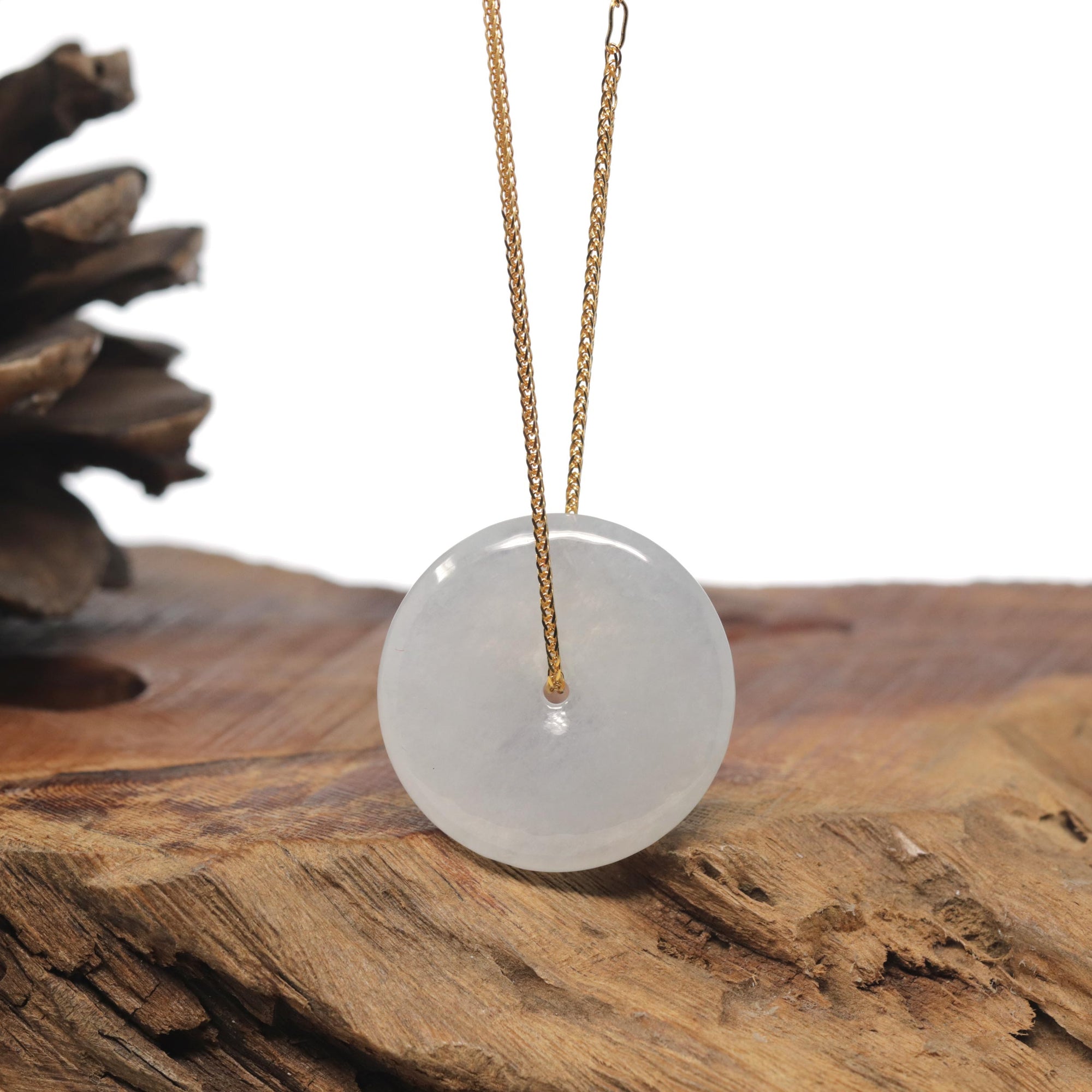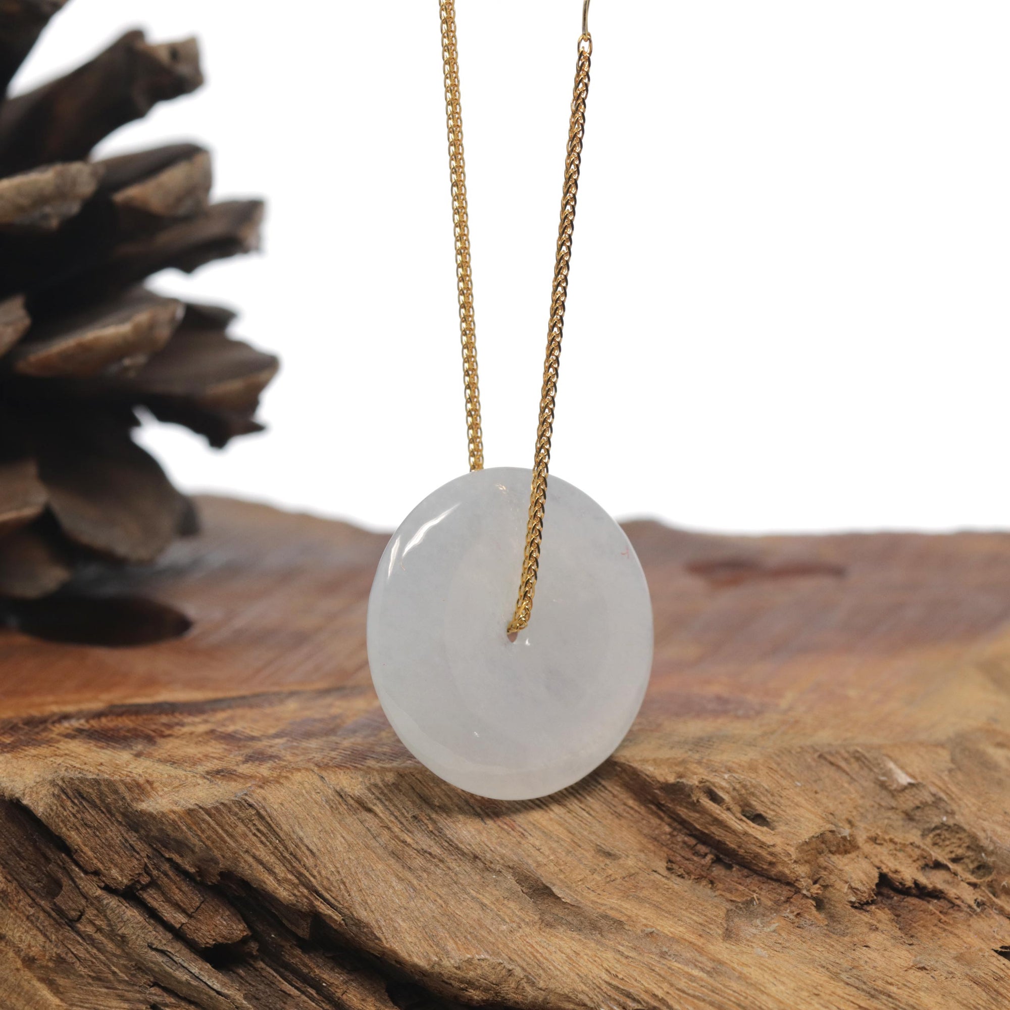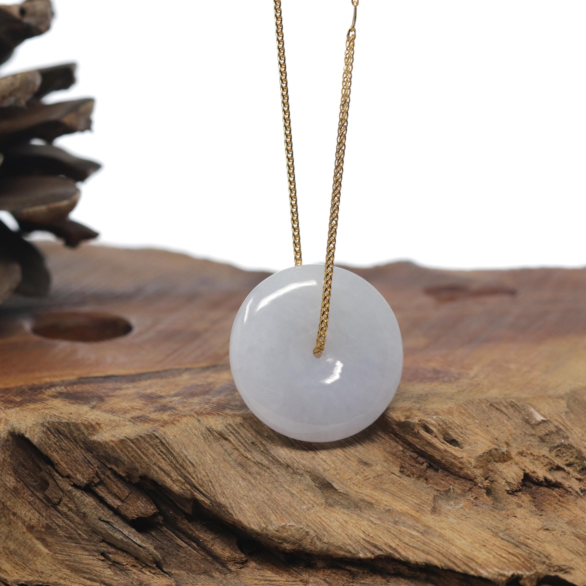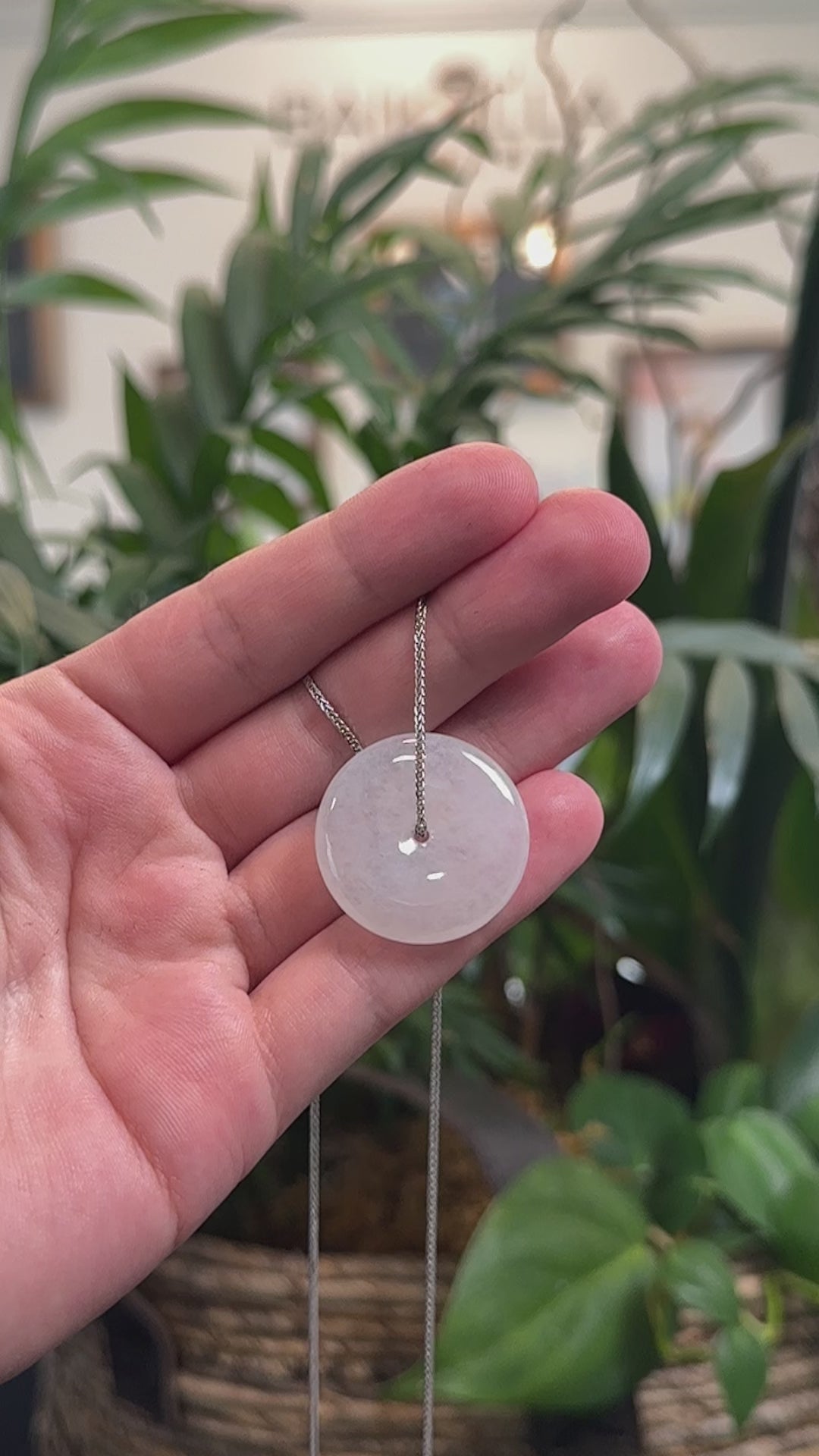 Baikalla "Ping An Kou" (Good Luck Button) Icy Lavender Burmese Jadeite Jade Pendant Necklace