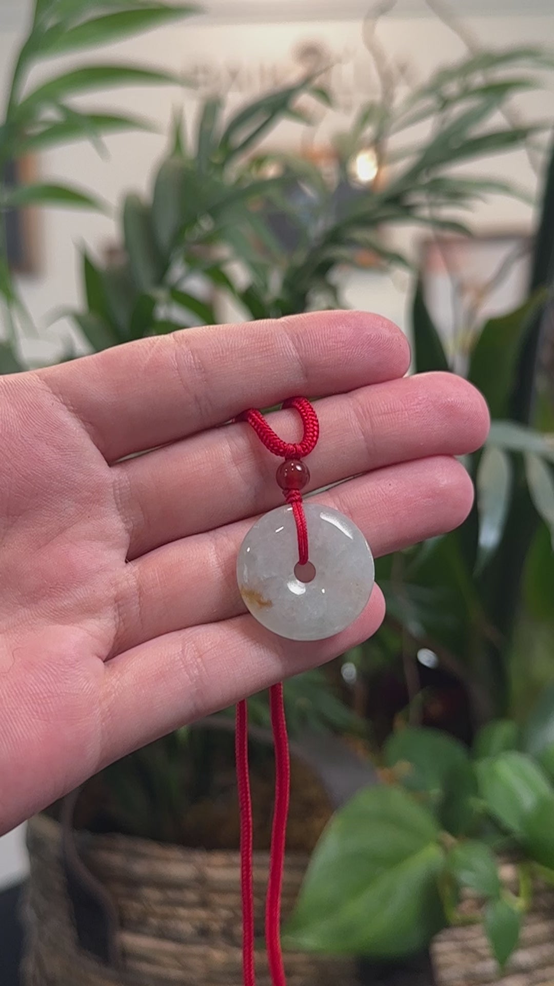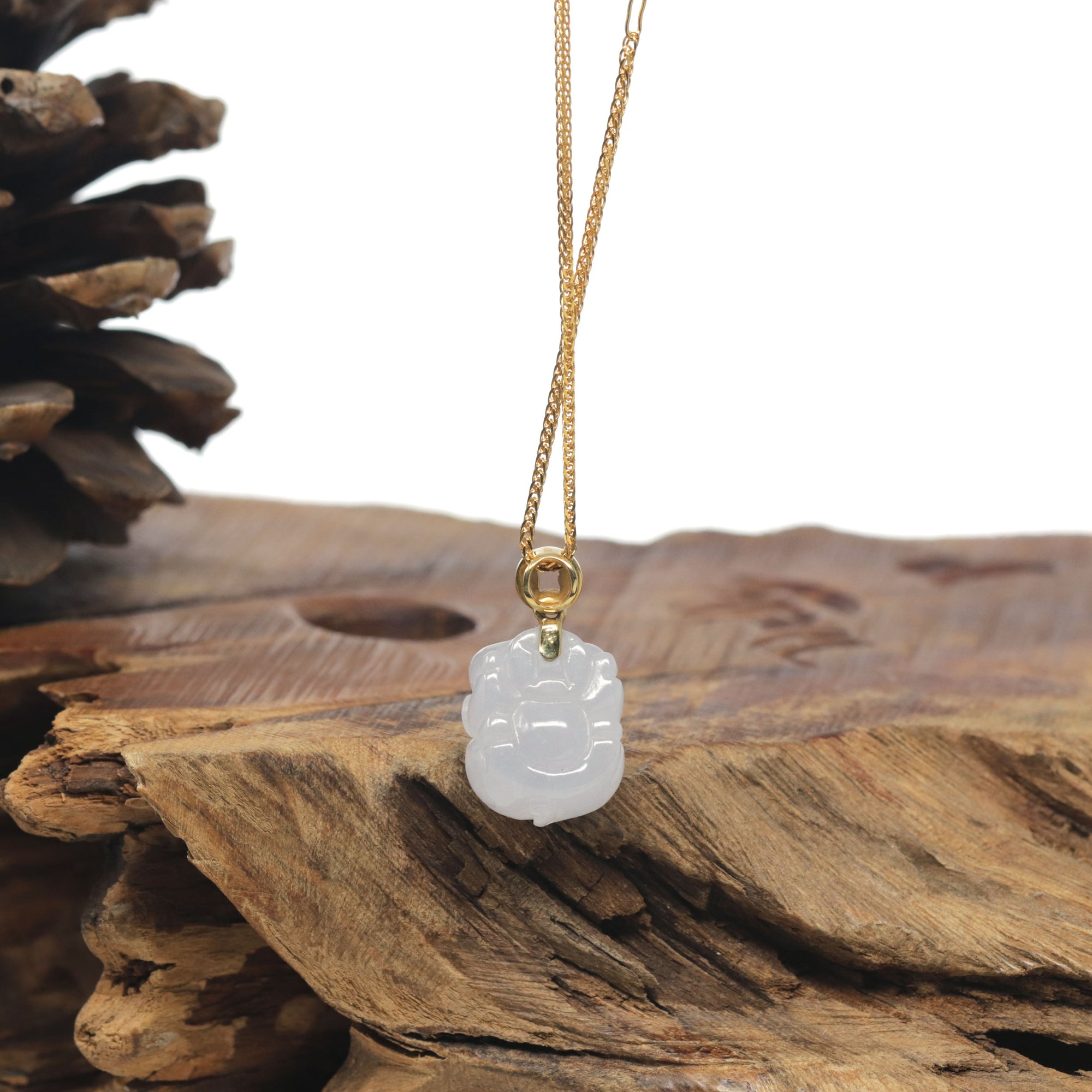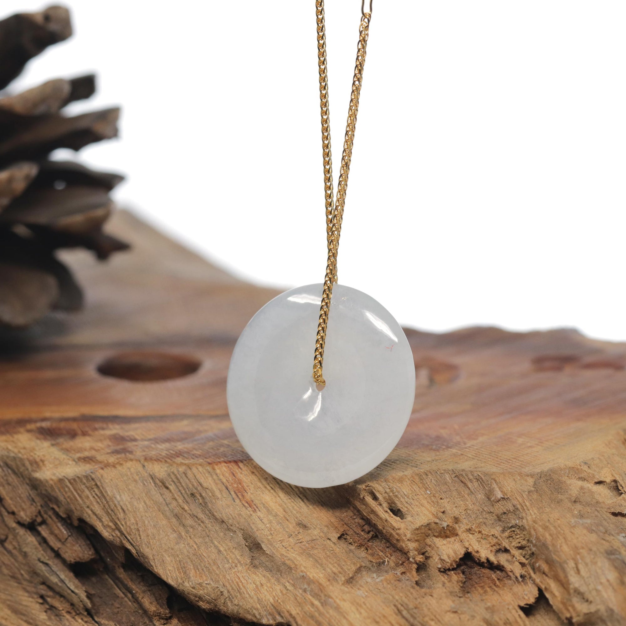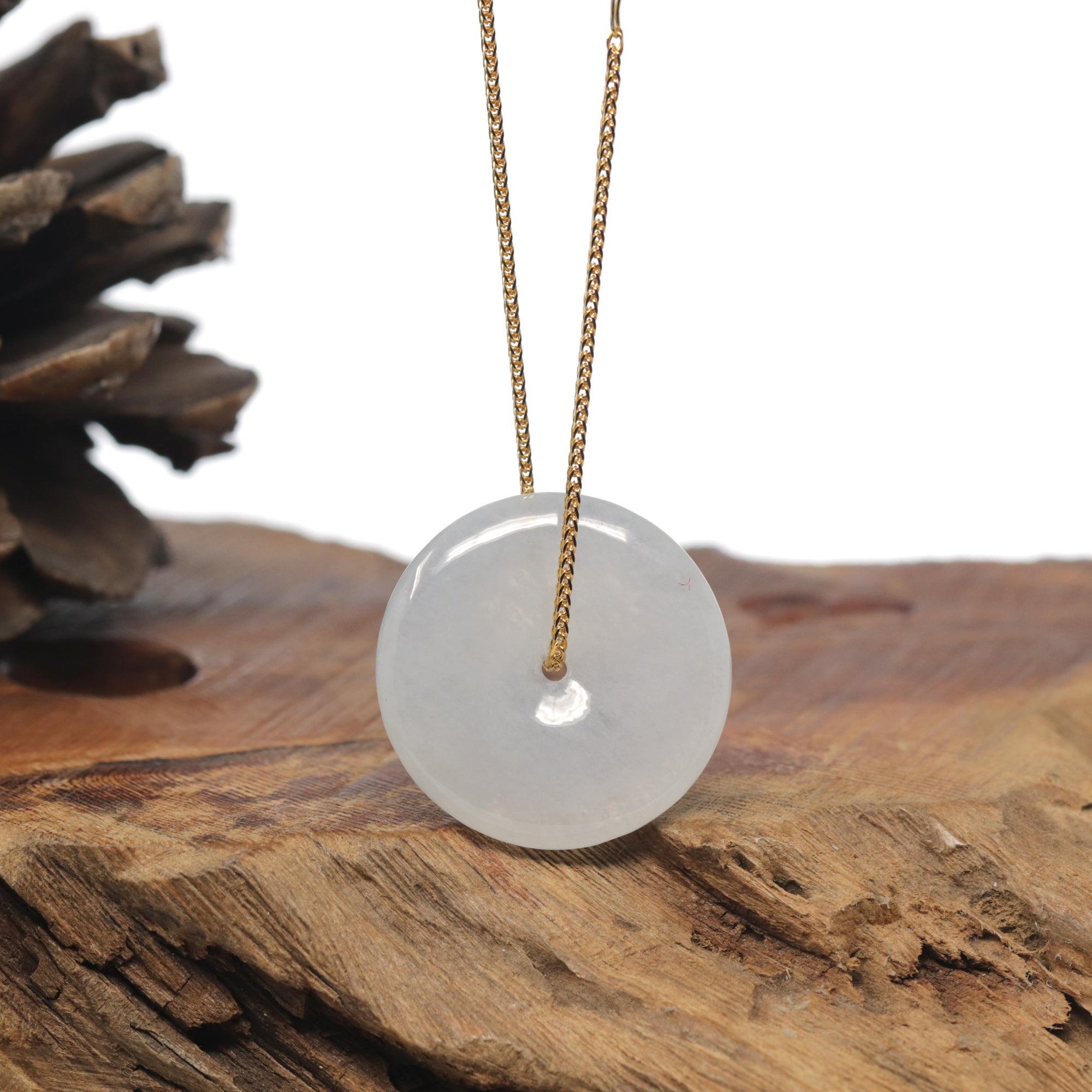Baikalla "Ping An Kou" (Good Luck Button) Icy Lavender Burmese Jadeite Jade Pendant Necklace