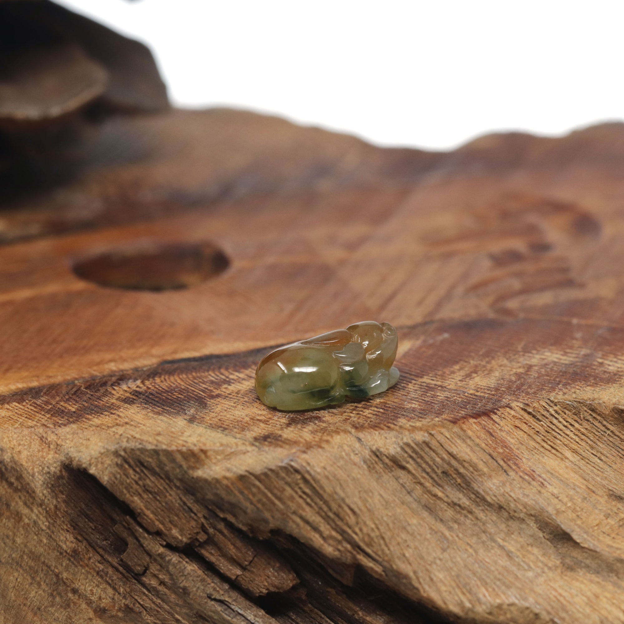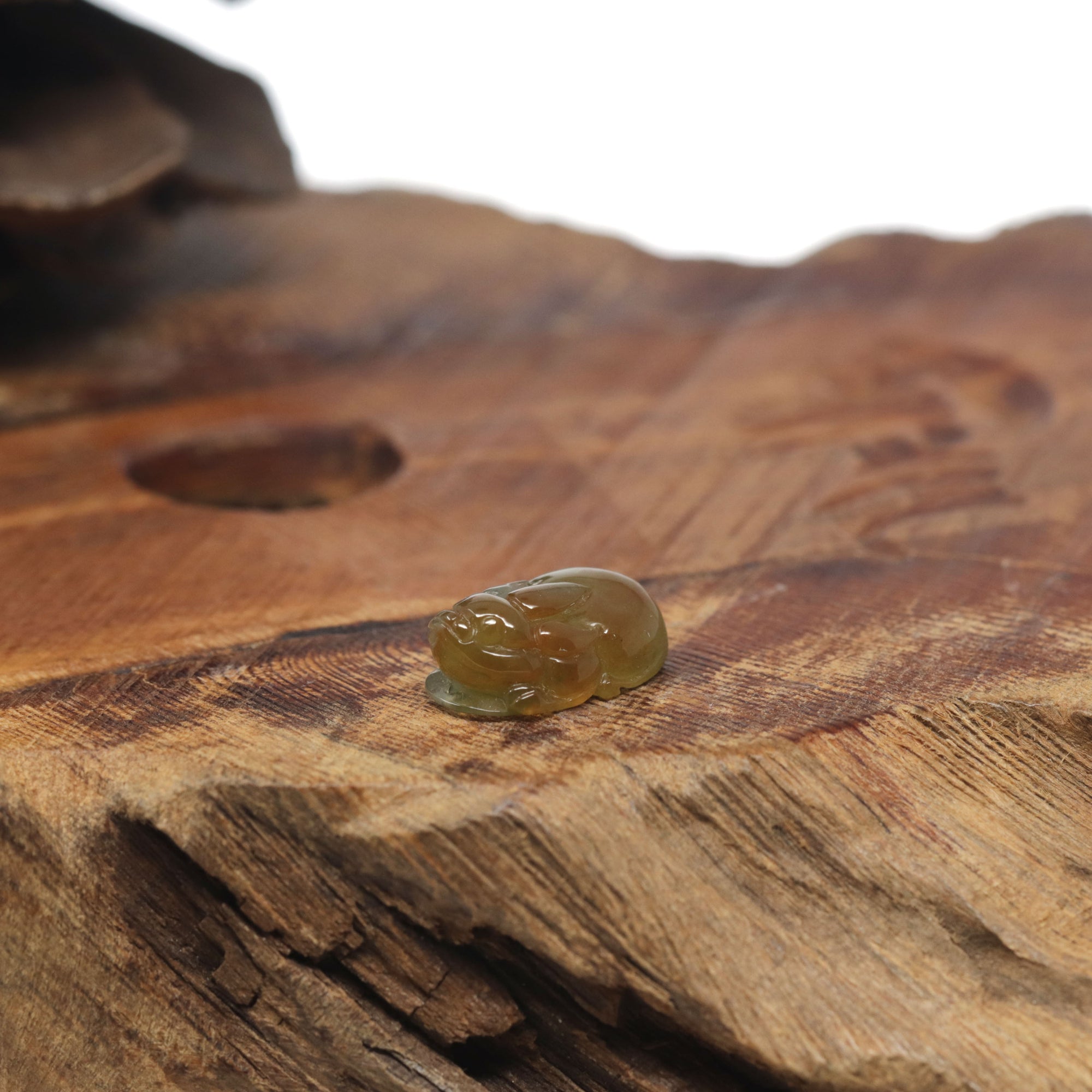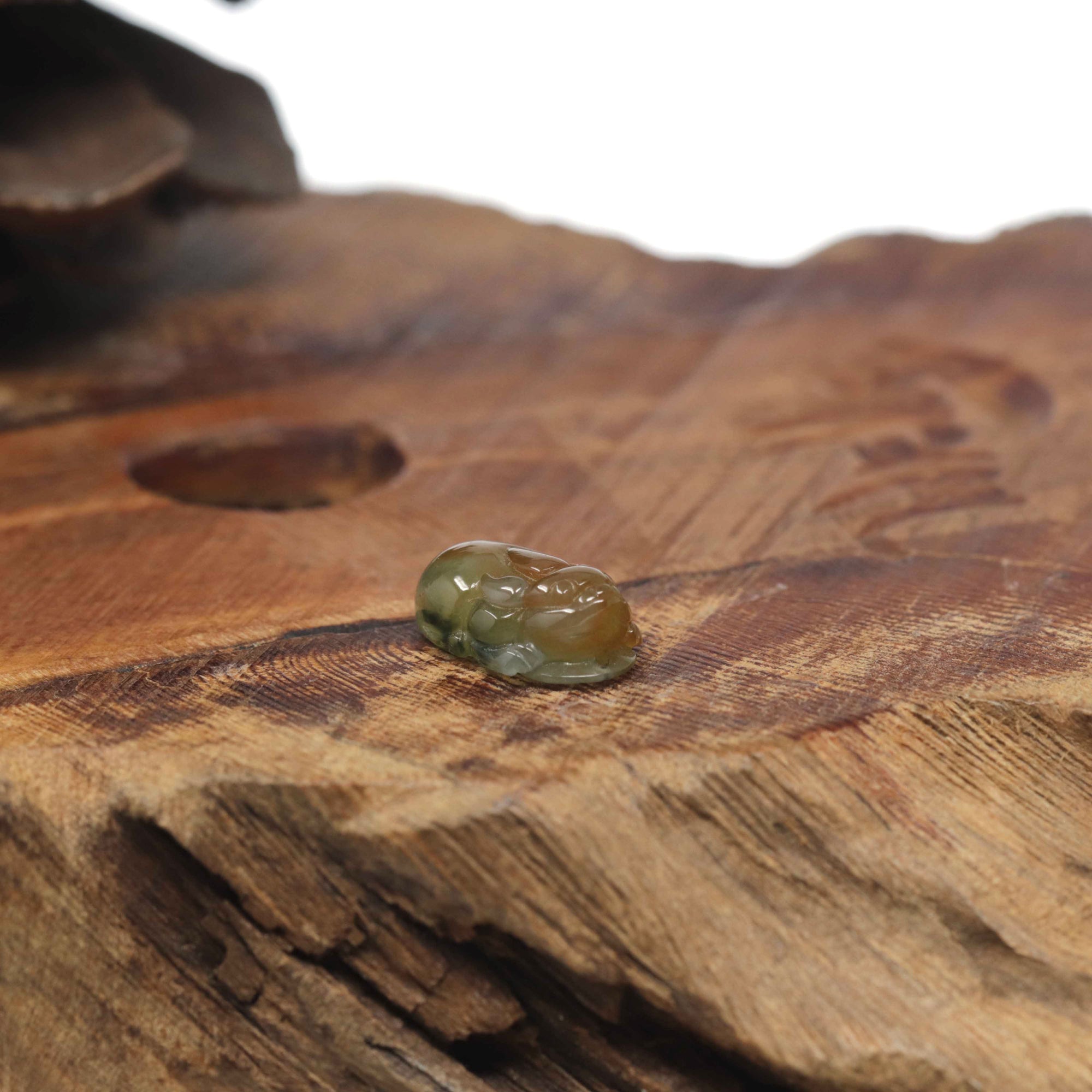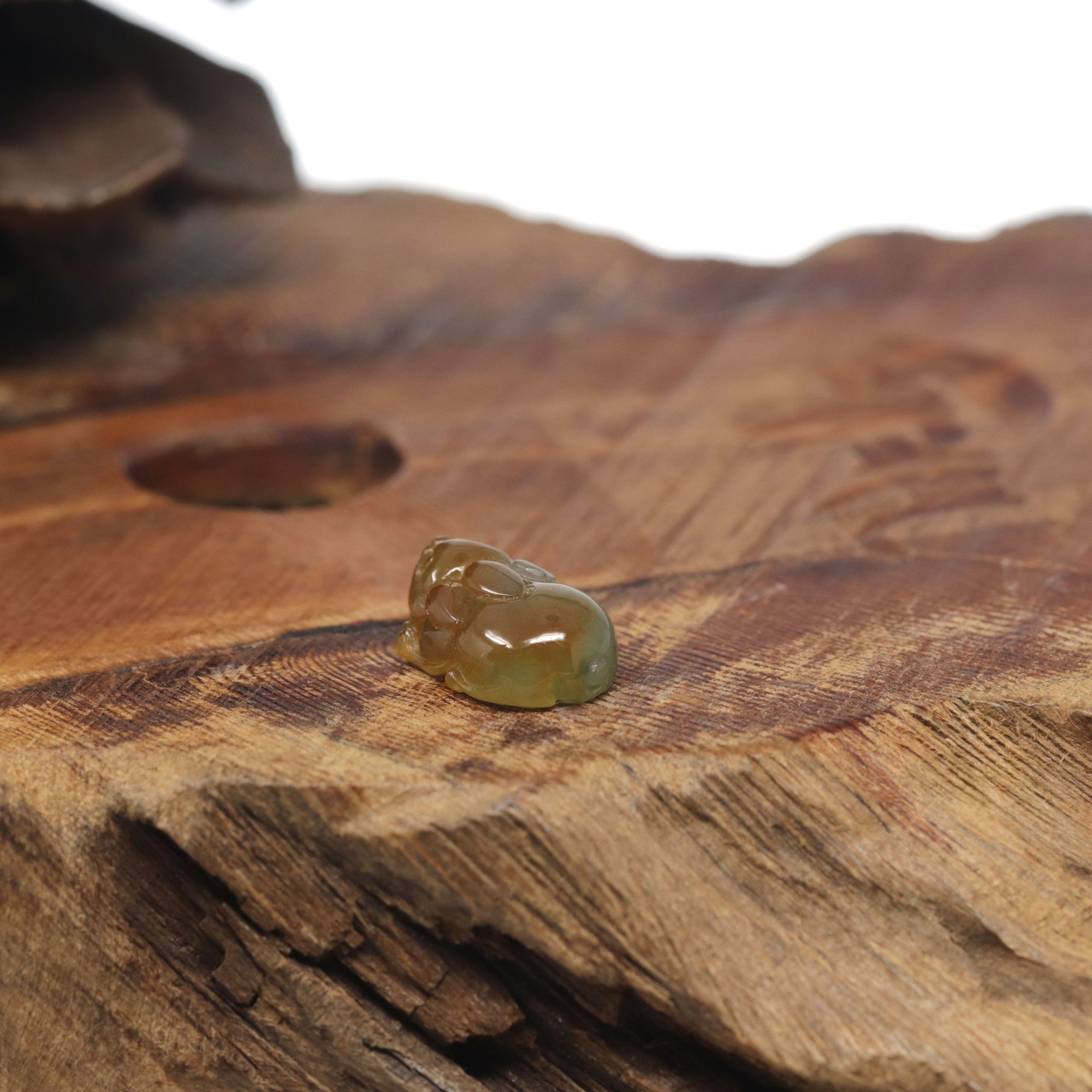Icy Yellow Green Jadeite Jade Jade Nine Tail Fox Pendant W/ 18k White Gold Bail
