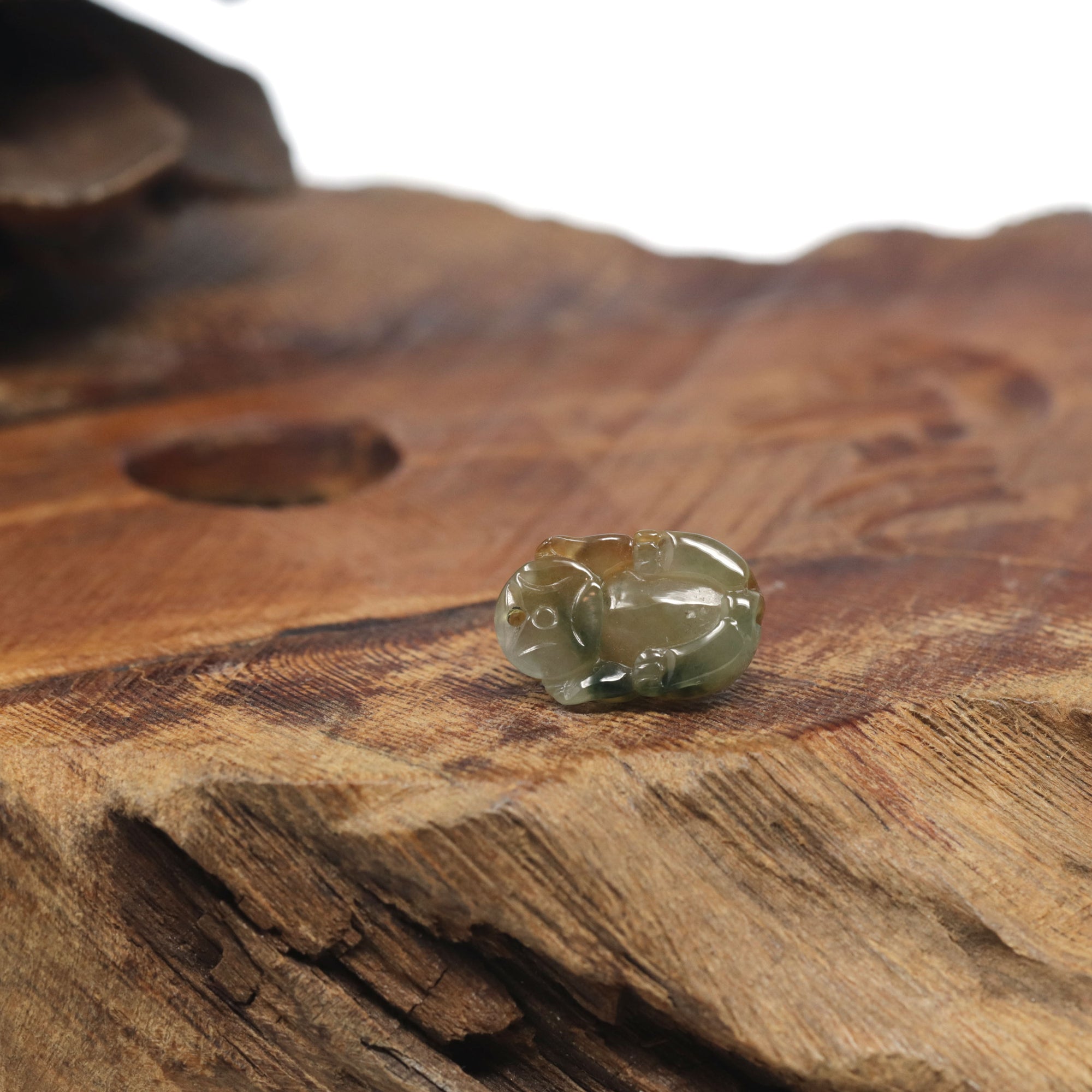 Baikalla Icy Brown-Green & Blue-Green "Ping An Kou" Jadeite Jade Pendant W/ 18K Yellow Gold Bail & Diamonds