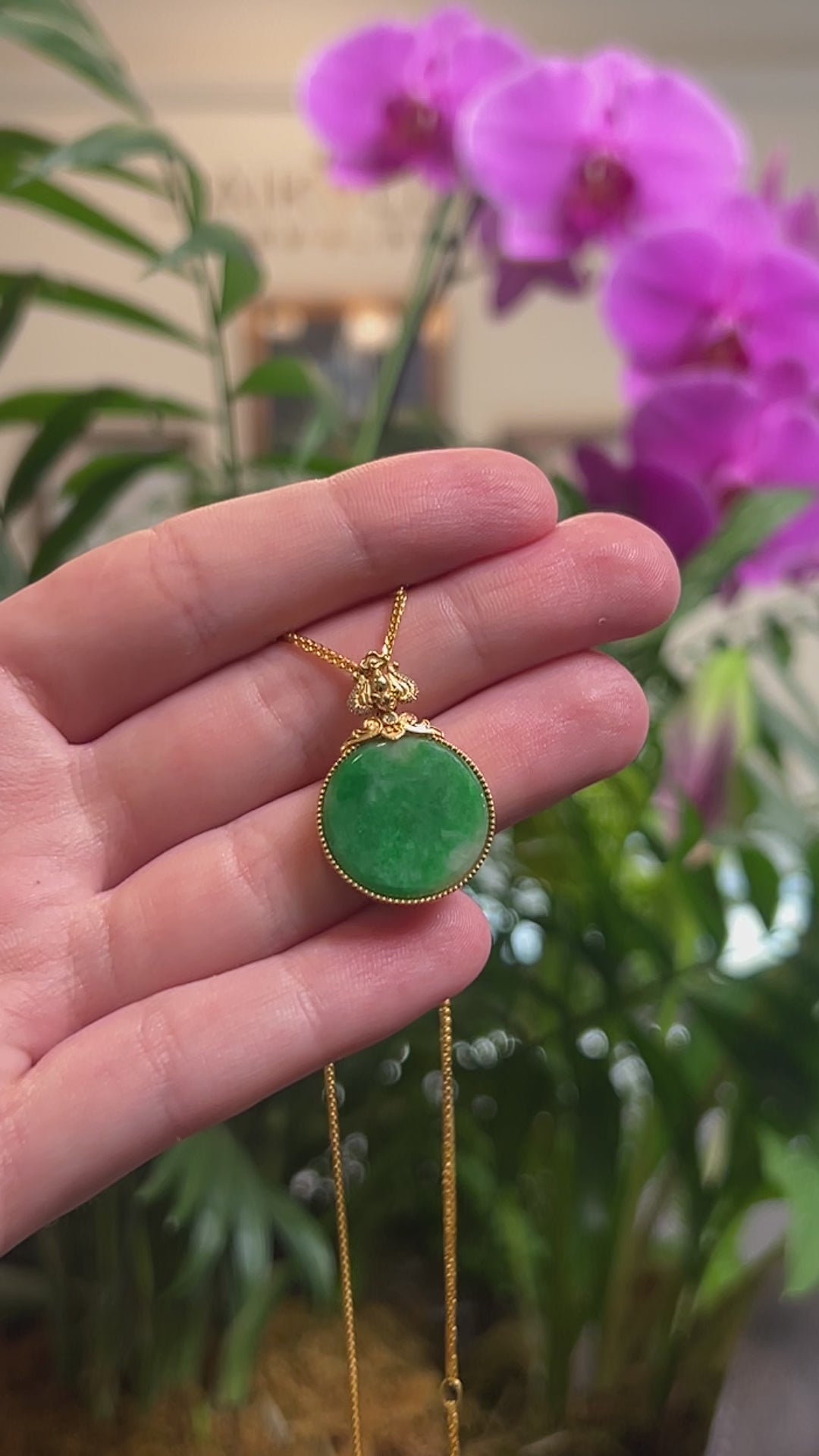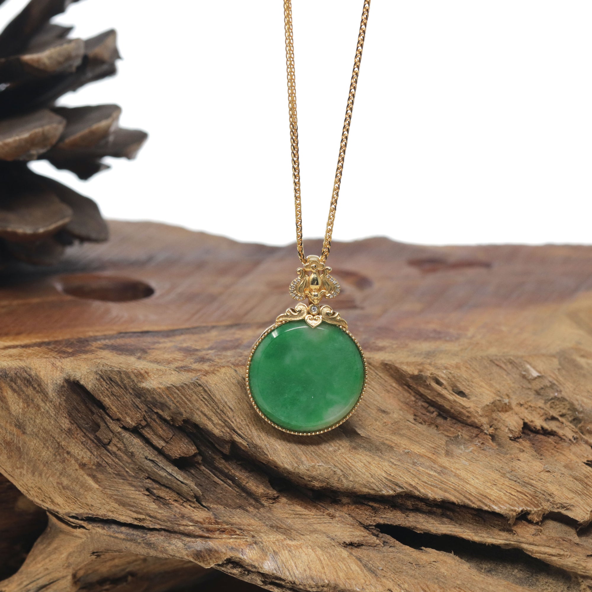 Baikalla "Ping An Kou" Icy Green Jadeite Jade Pendant With 18K Yellow Gold Bail & Diamonds