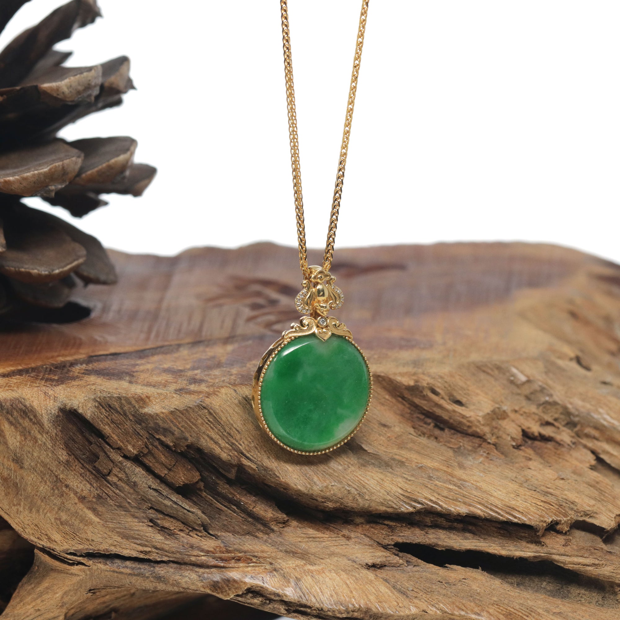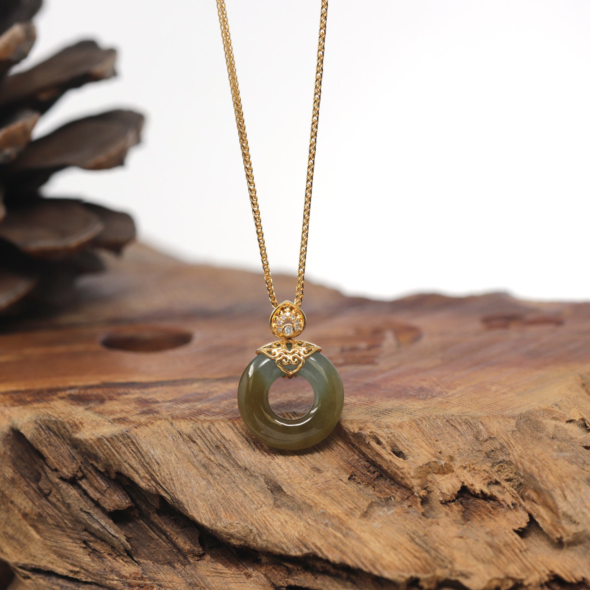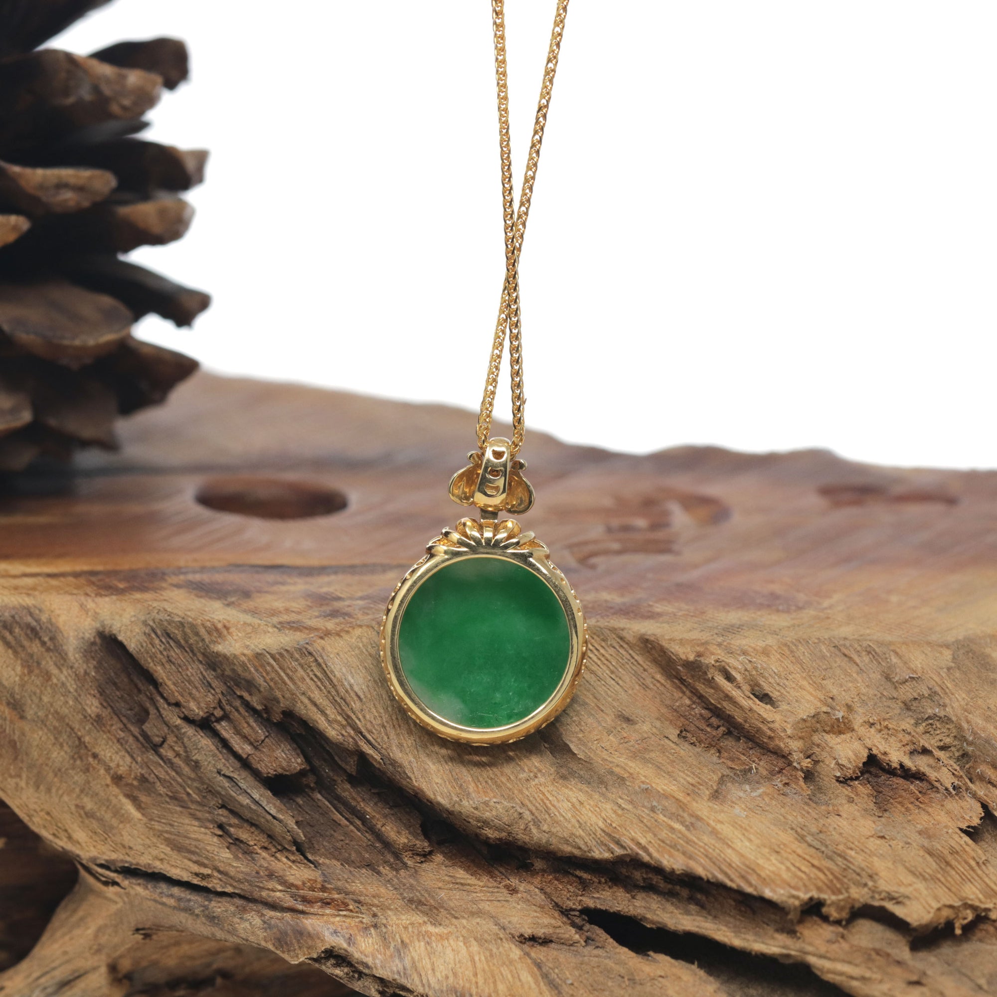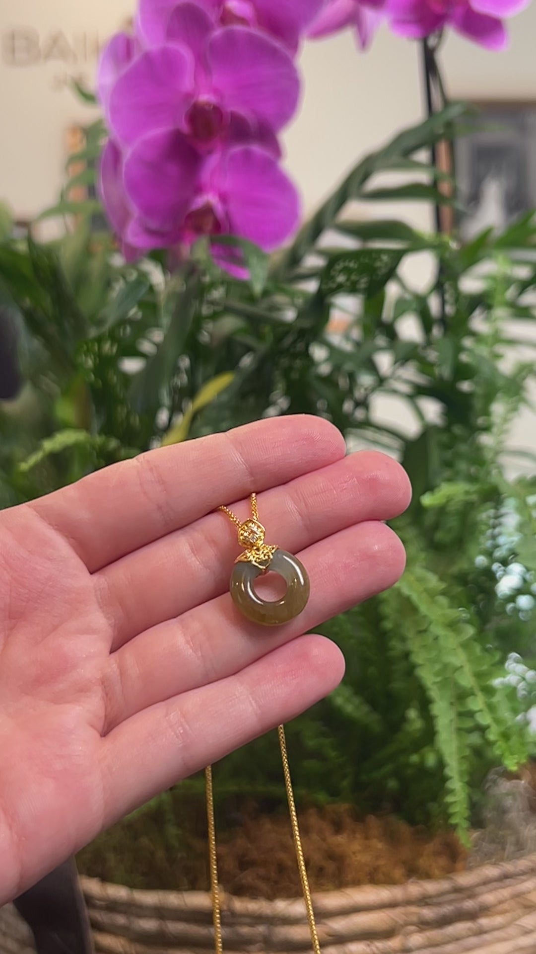 Baikalla 18K Yellow Gold & Forest Green "Ping An Kou" Jadeite Jade Pendant W/ Natural Diamonds