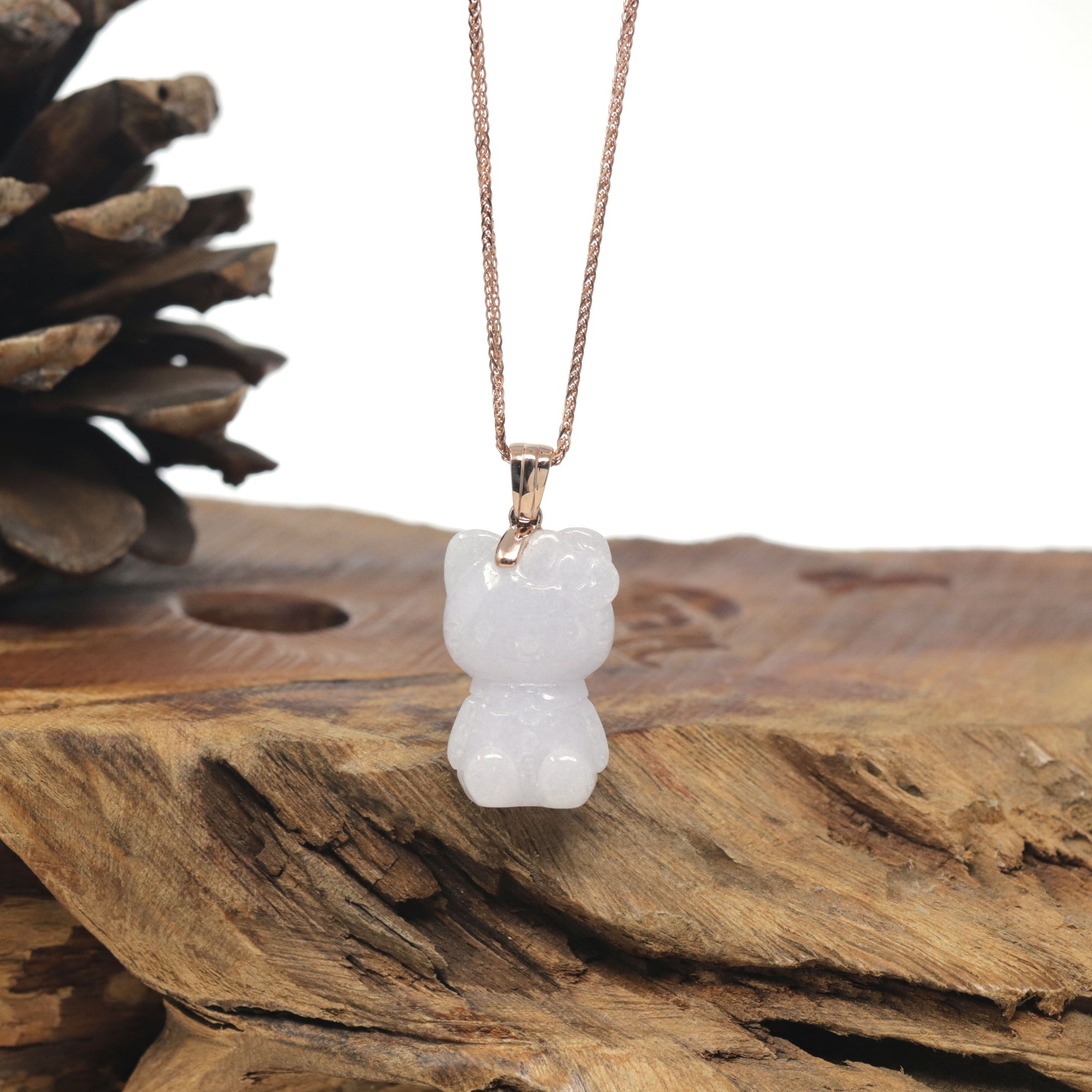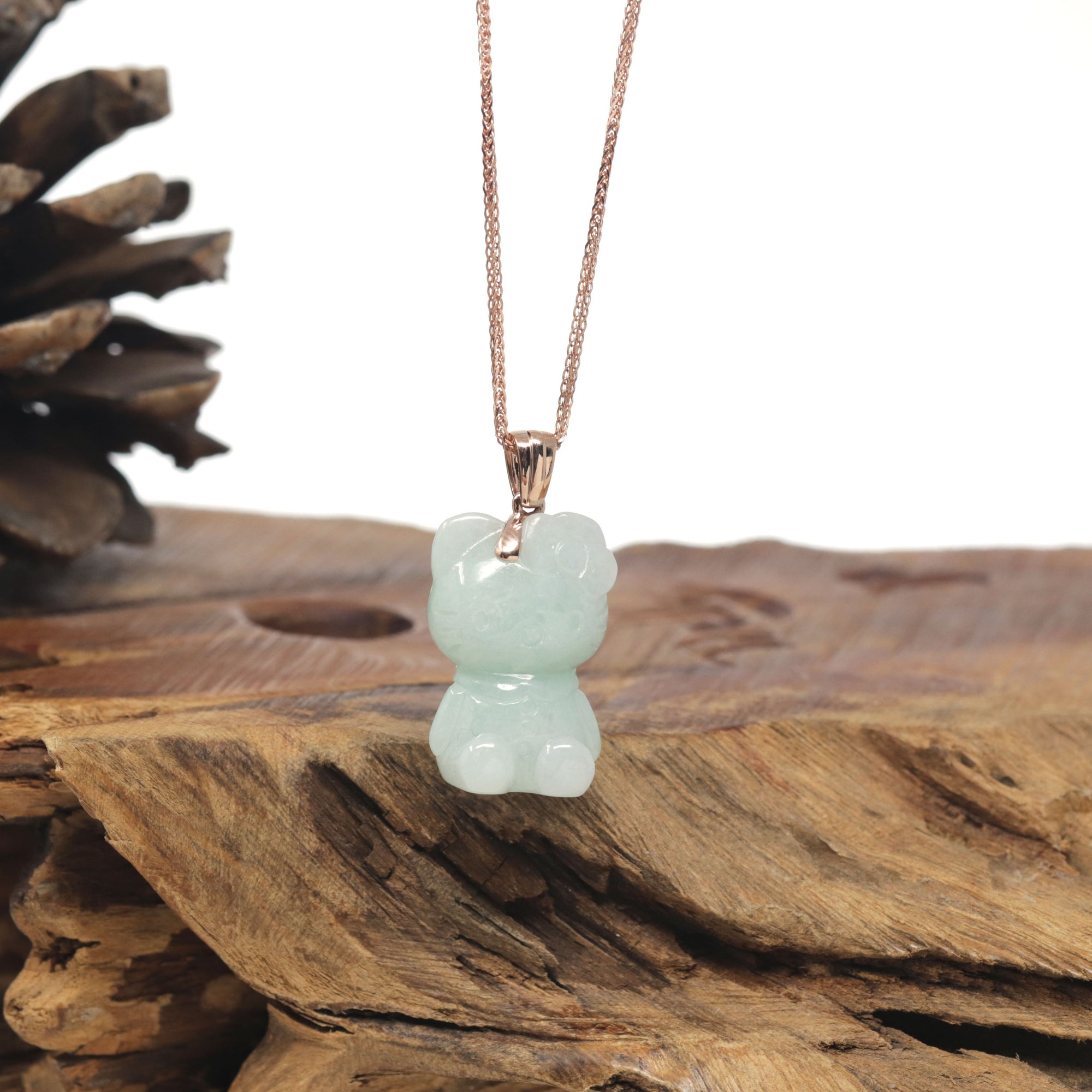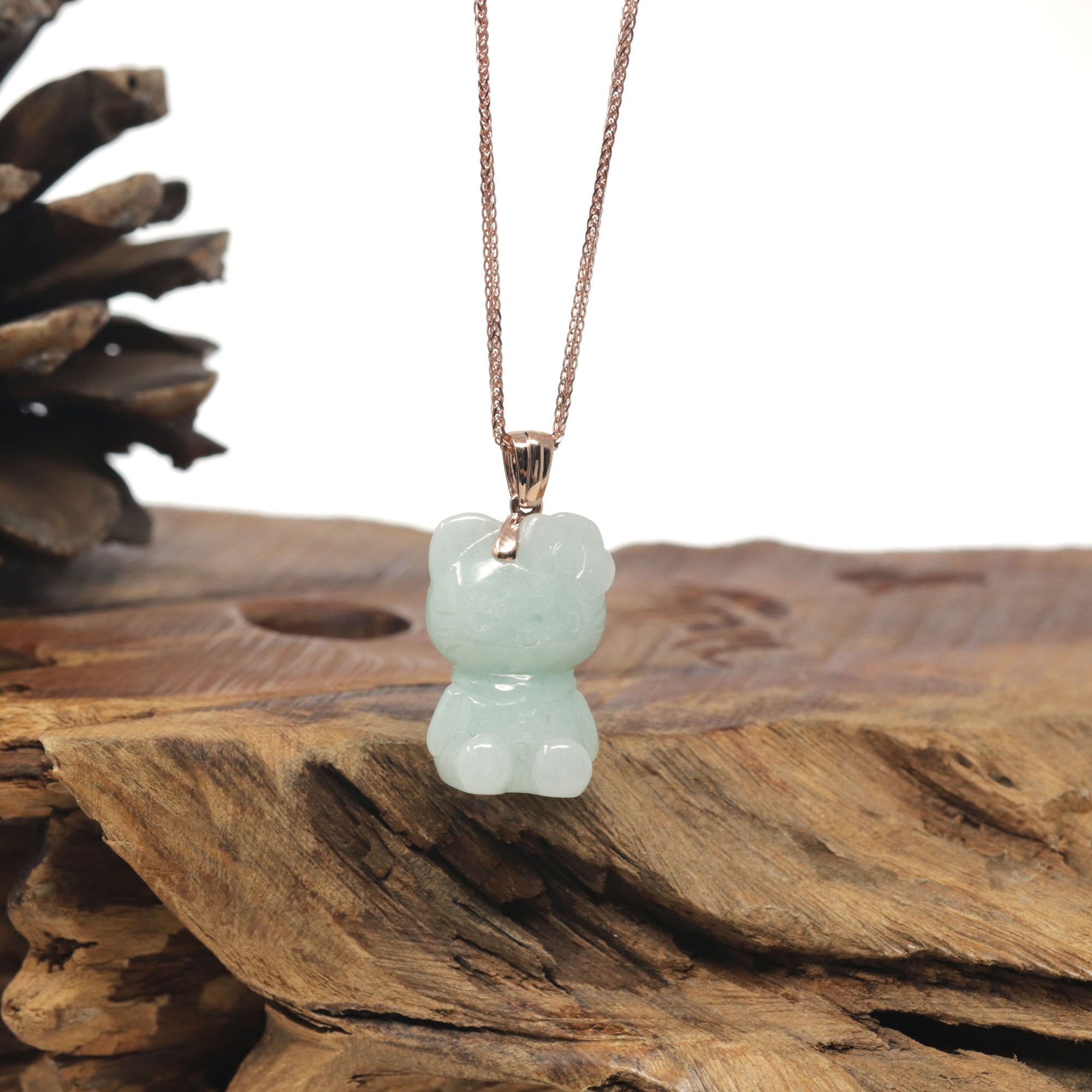Baikalla "Hello Kitty" Natural Jadeite Jade Pendant W/ 14k Rose Gold Bail