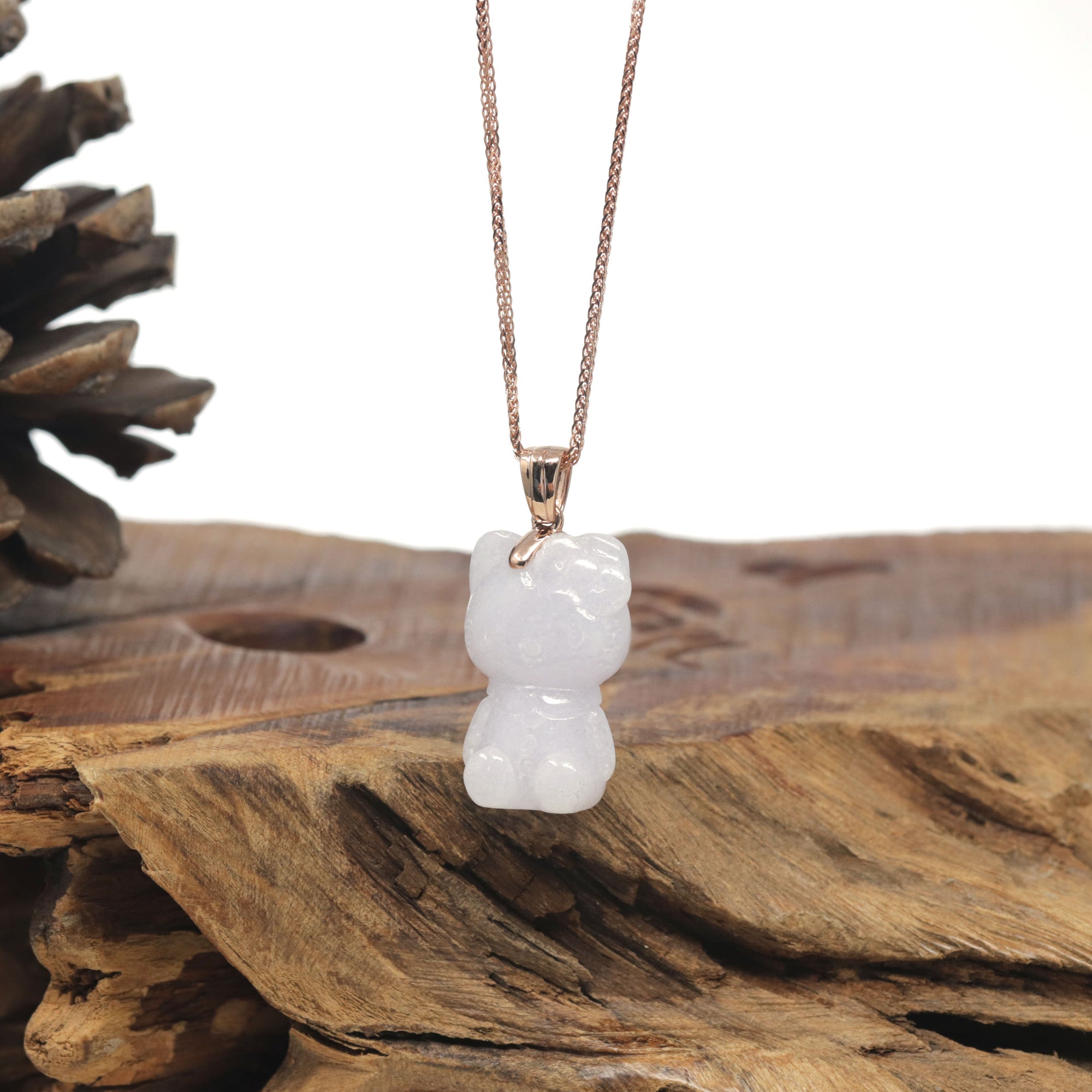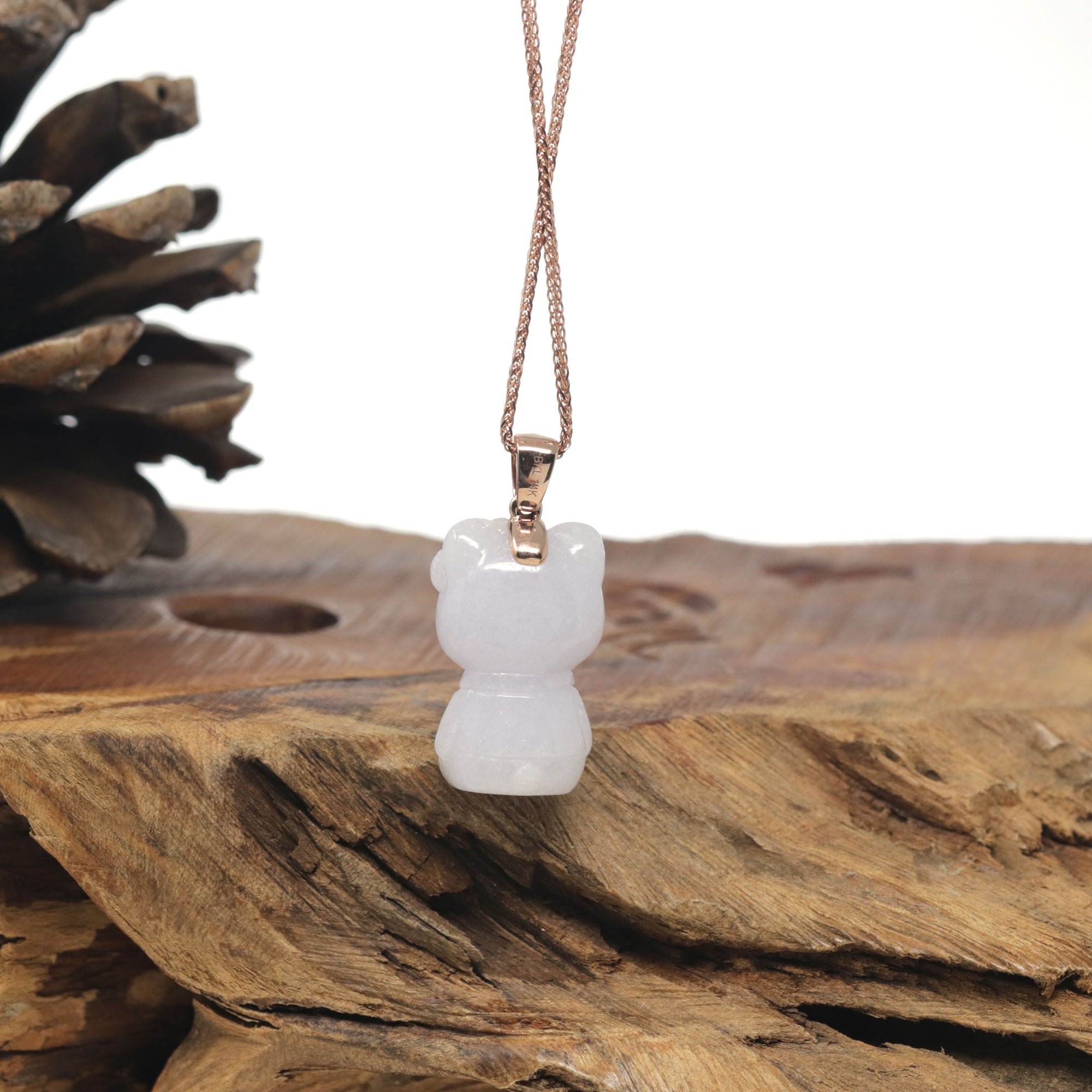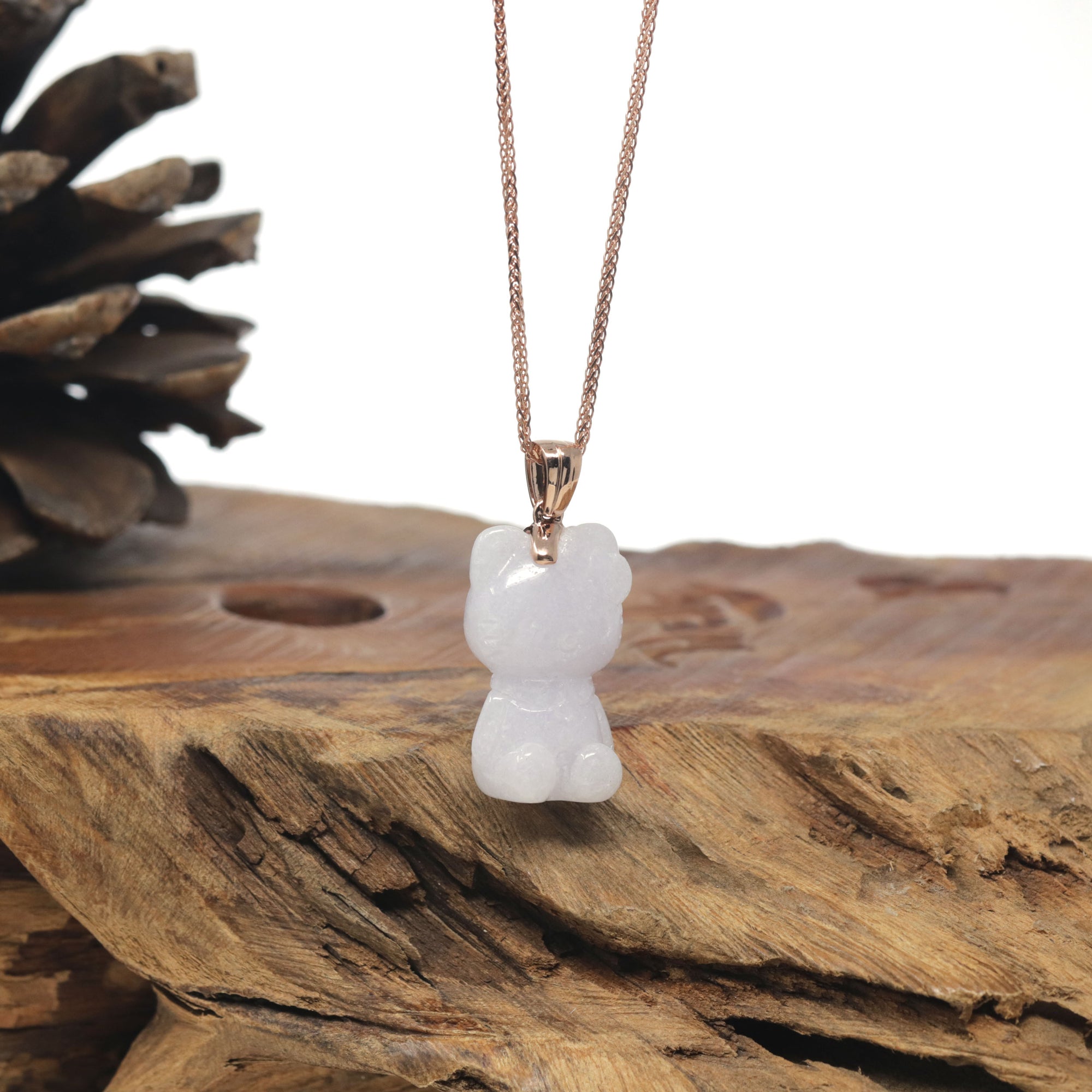 Baikalla "Hello Kitty" Natural Jadeite Jade Pendant W/ 14k Rose Gold Bail