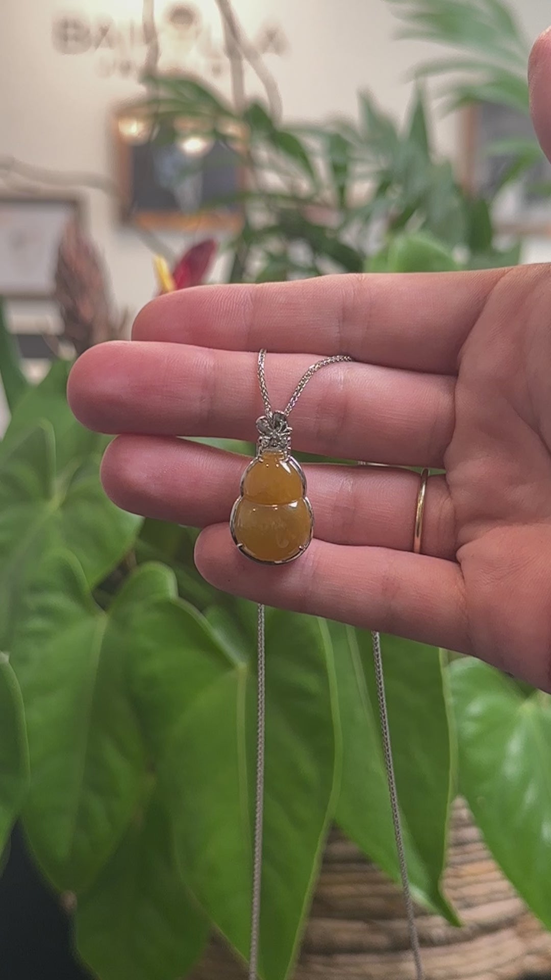 Baikalla "Hulu" 18k White Gold Brown Honey-Yellow Jadeite Jade Pendant W/ Diamonds