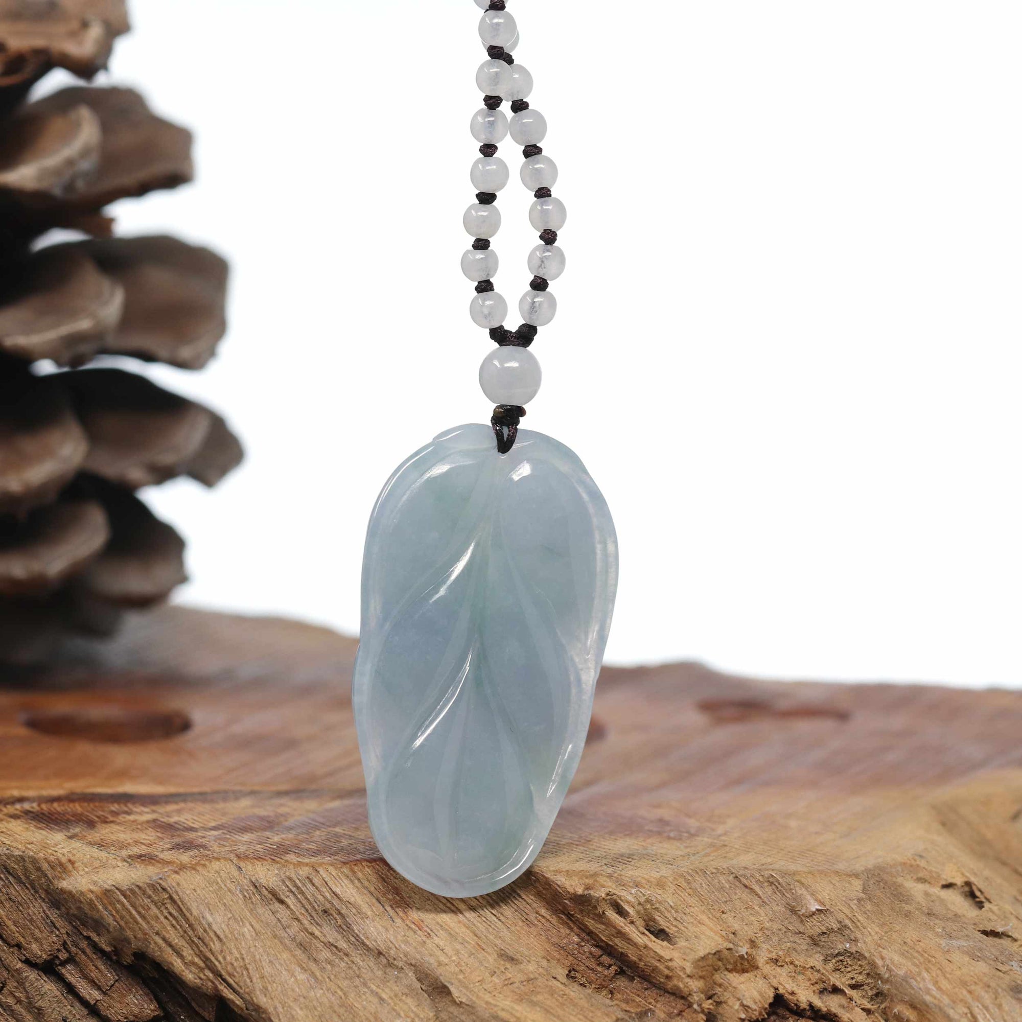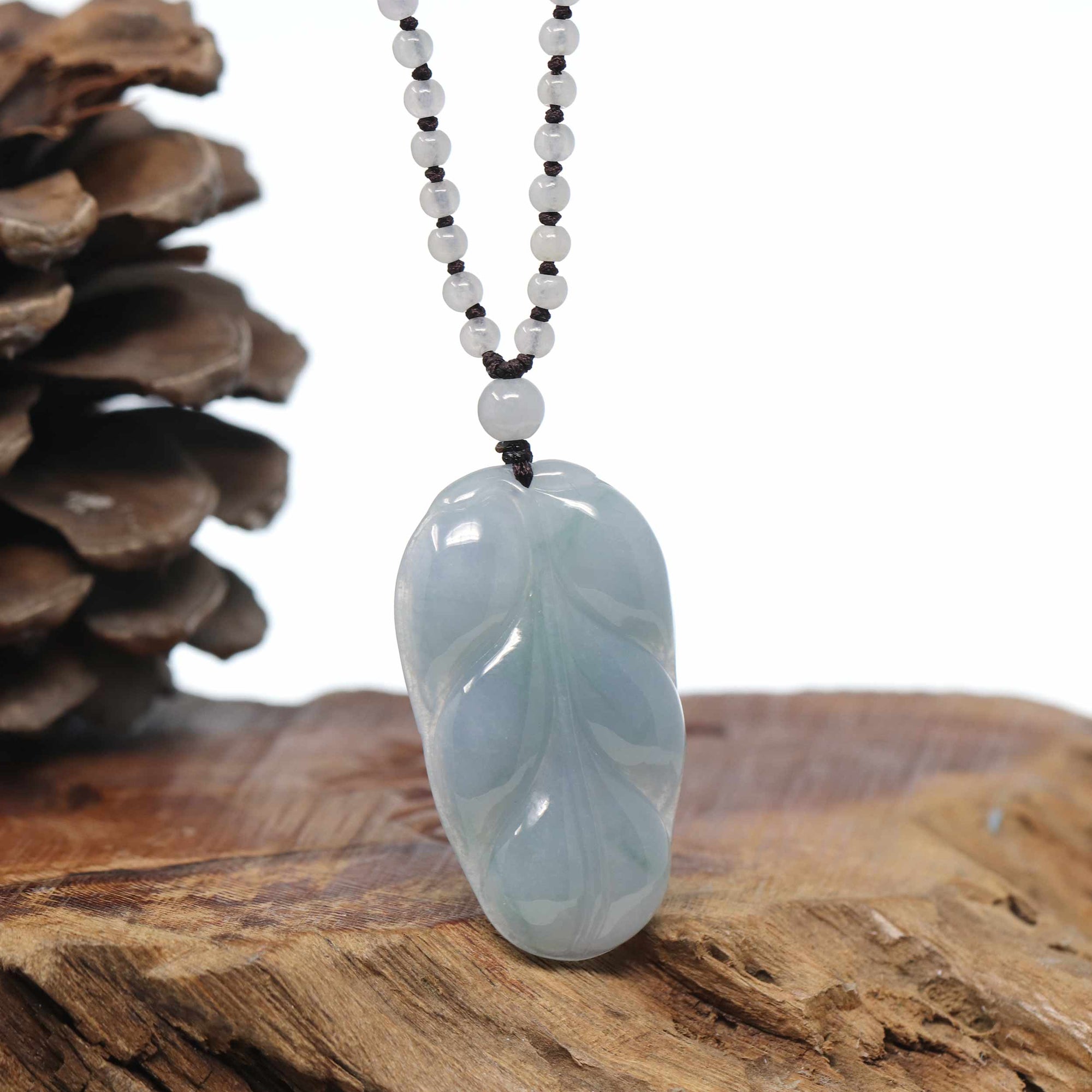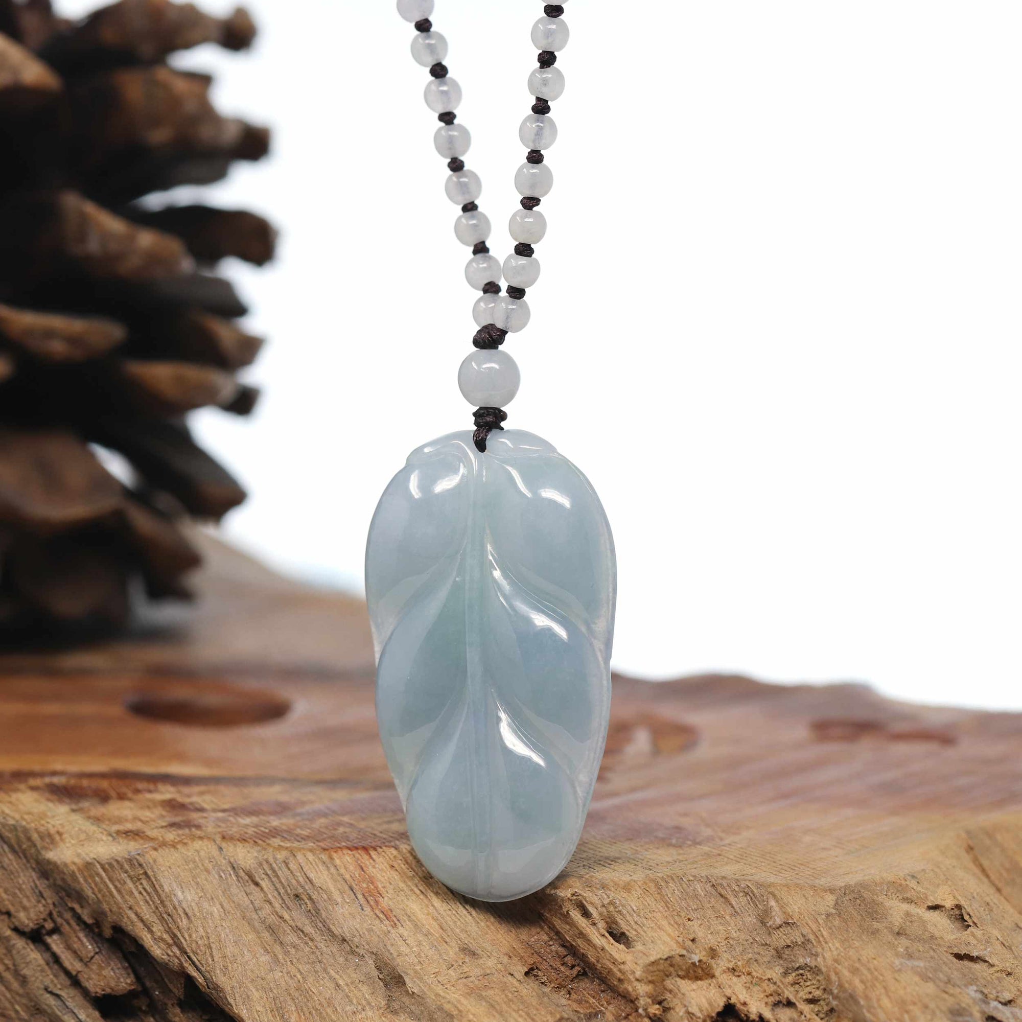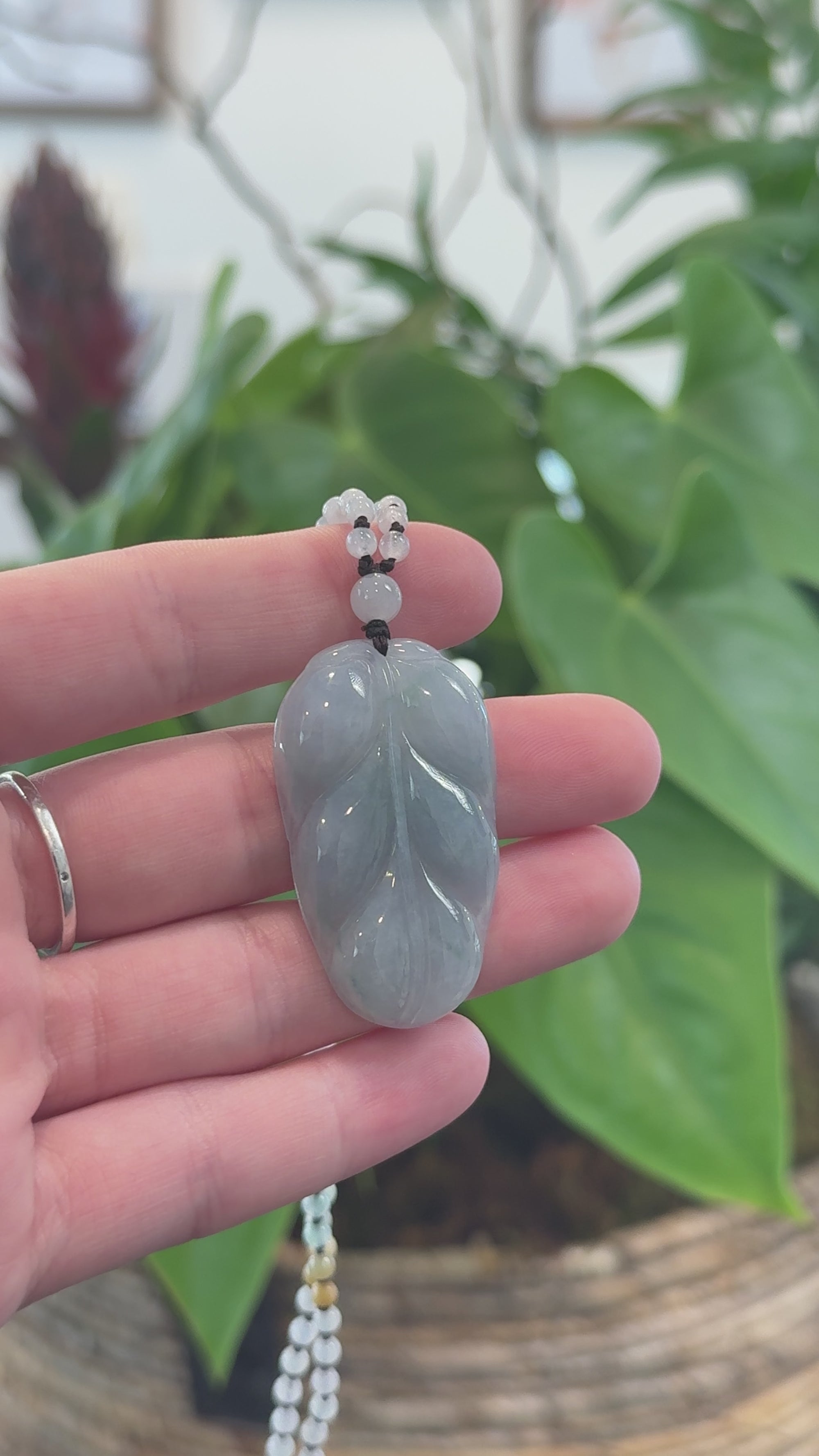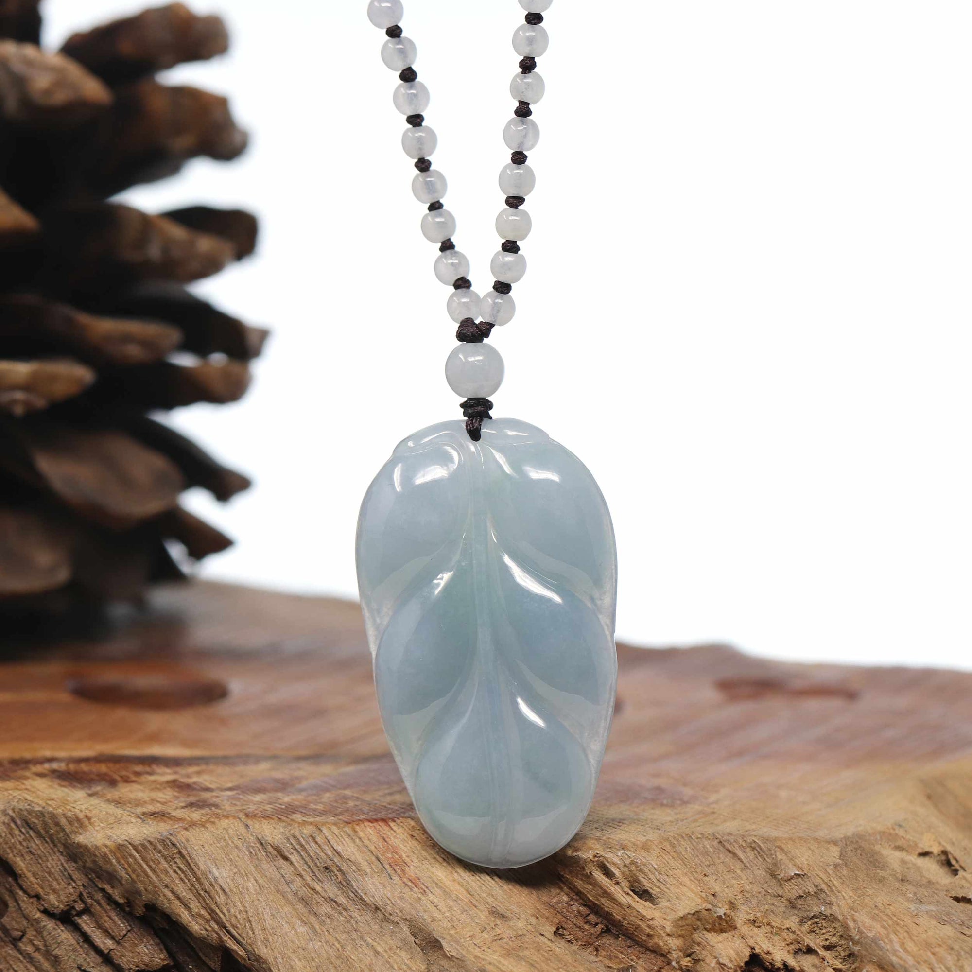 Baikalla Icy White & Green Guan Yin "Goddess of Compassion" Jadeite Jade Pendant W/ Beaded Necklace