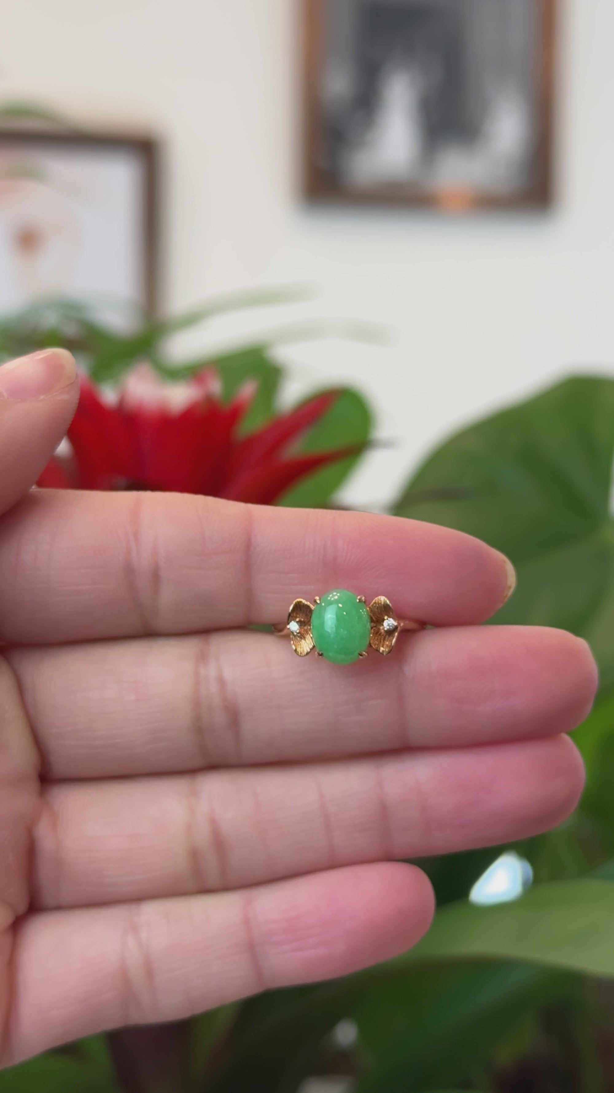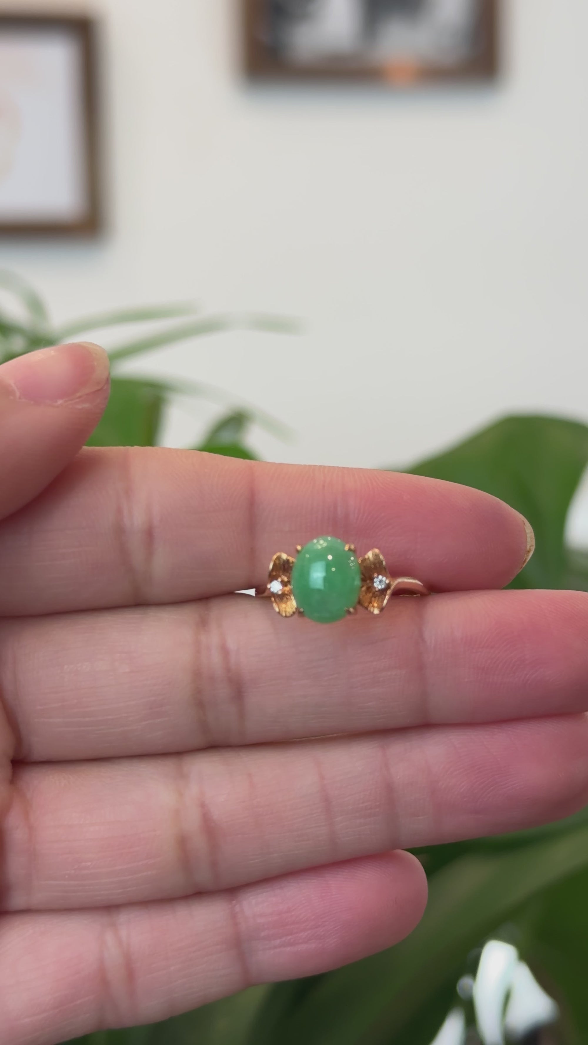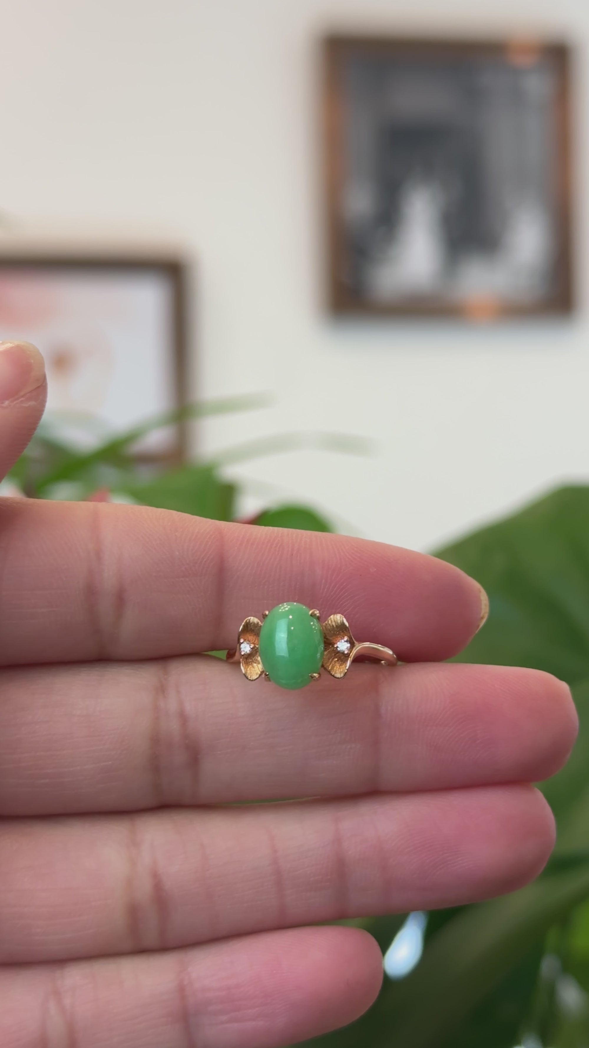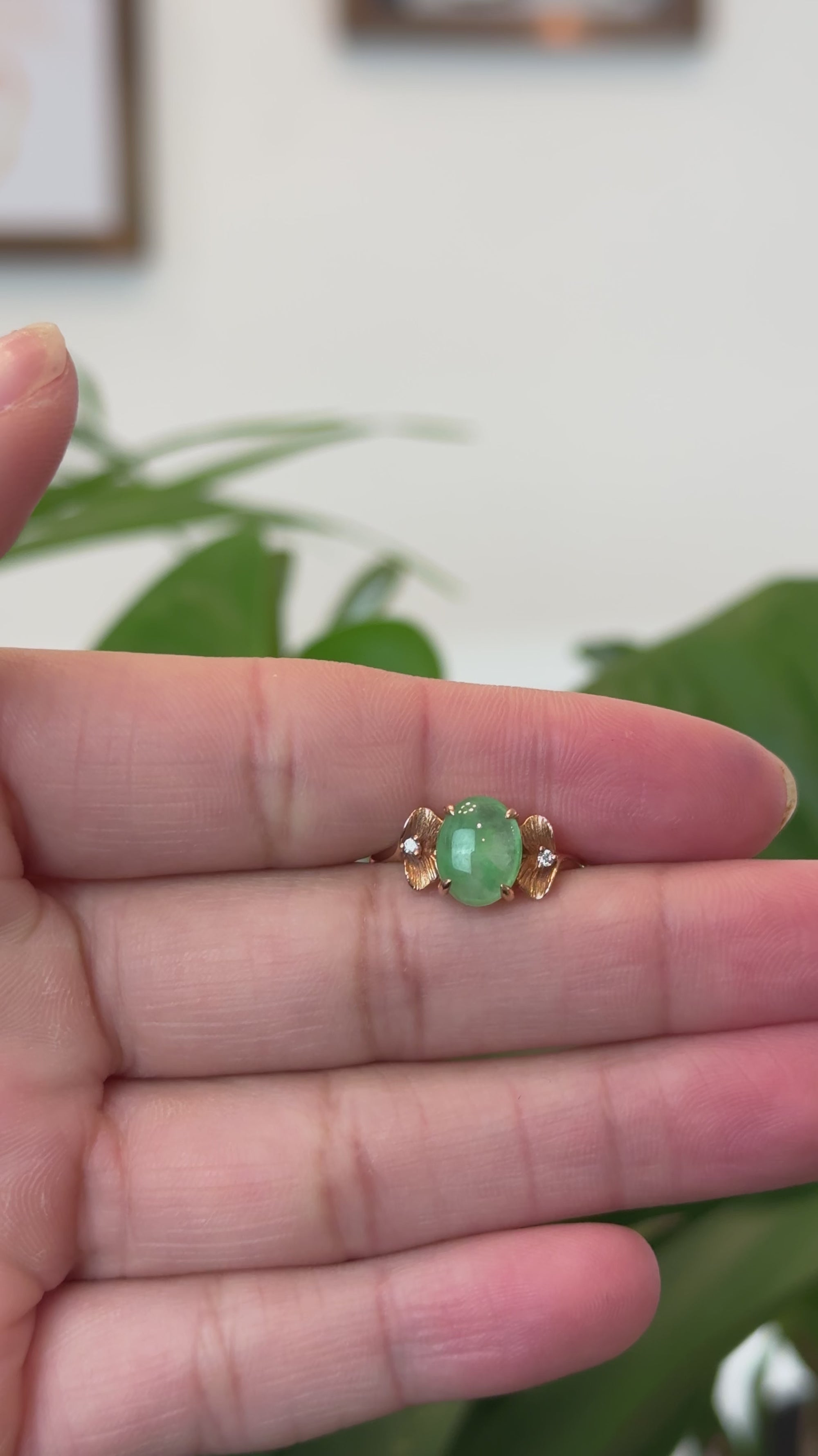Baikalla™ "Aretha" 18k Rose Gold Natural Icy Green Flower Jadeite Morning Glory Engagement Ring