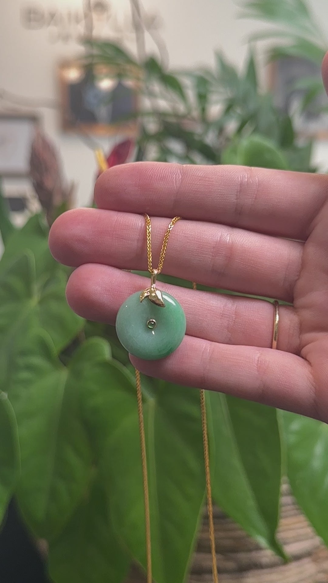 Baikalla "Good Luck Button" Necklace Green Jadeite Jade Lucky Ping An Kou Pendant