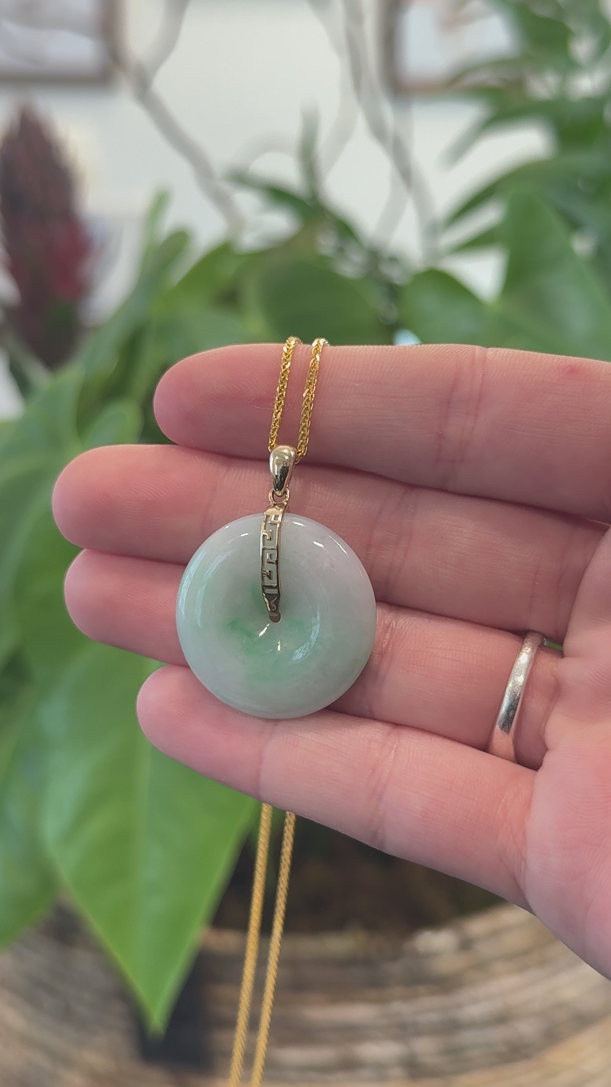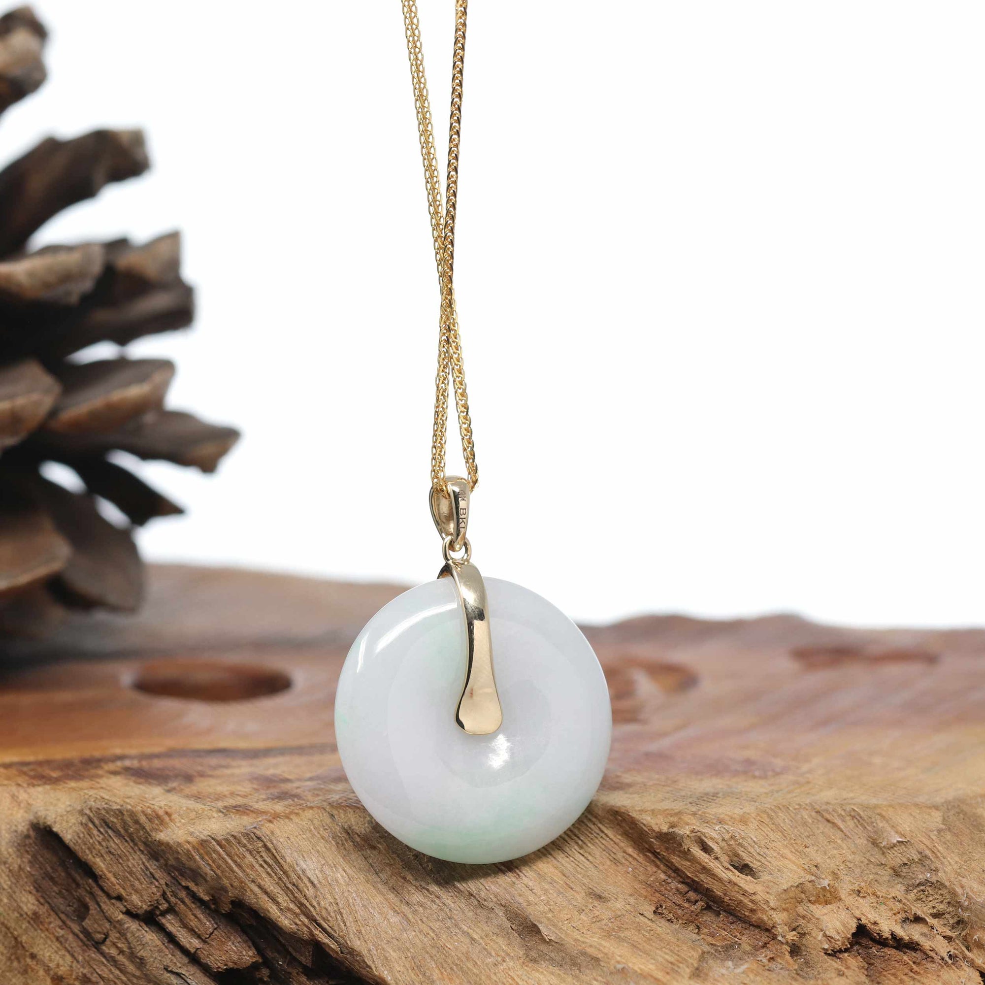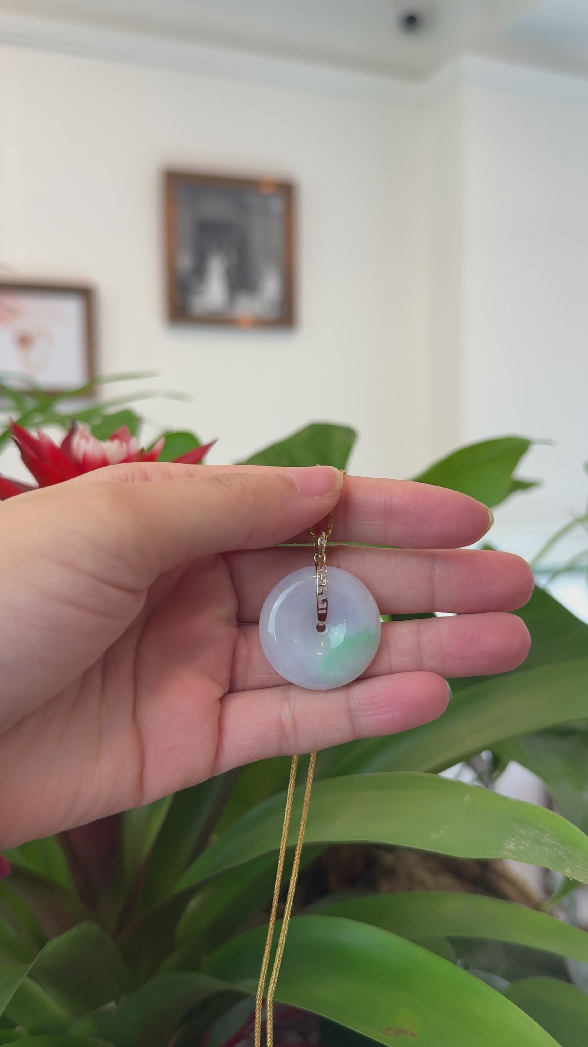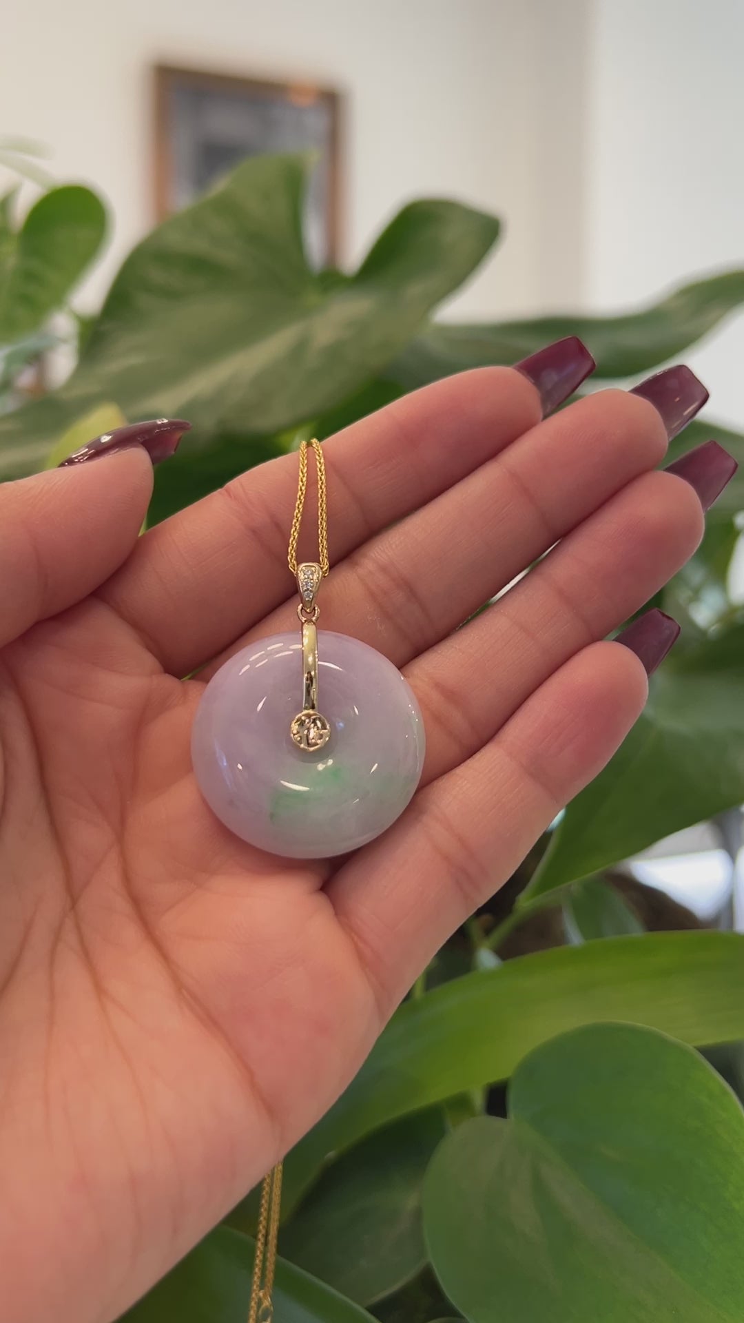 18K Yellow Gold "Good Luck Button" Necklace Lavender Green Jadeite Jade Pendant Necklace