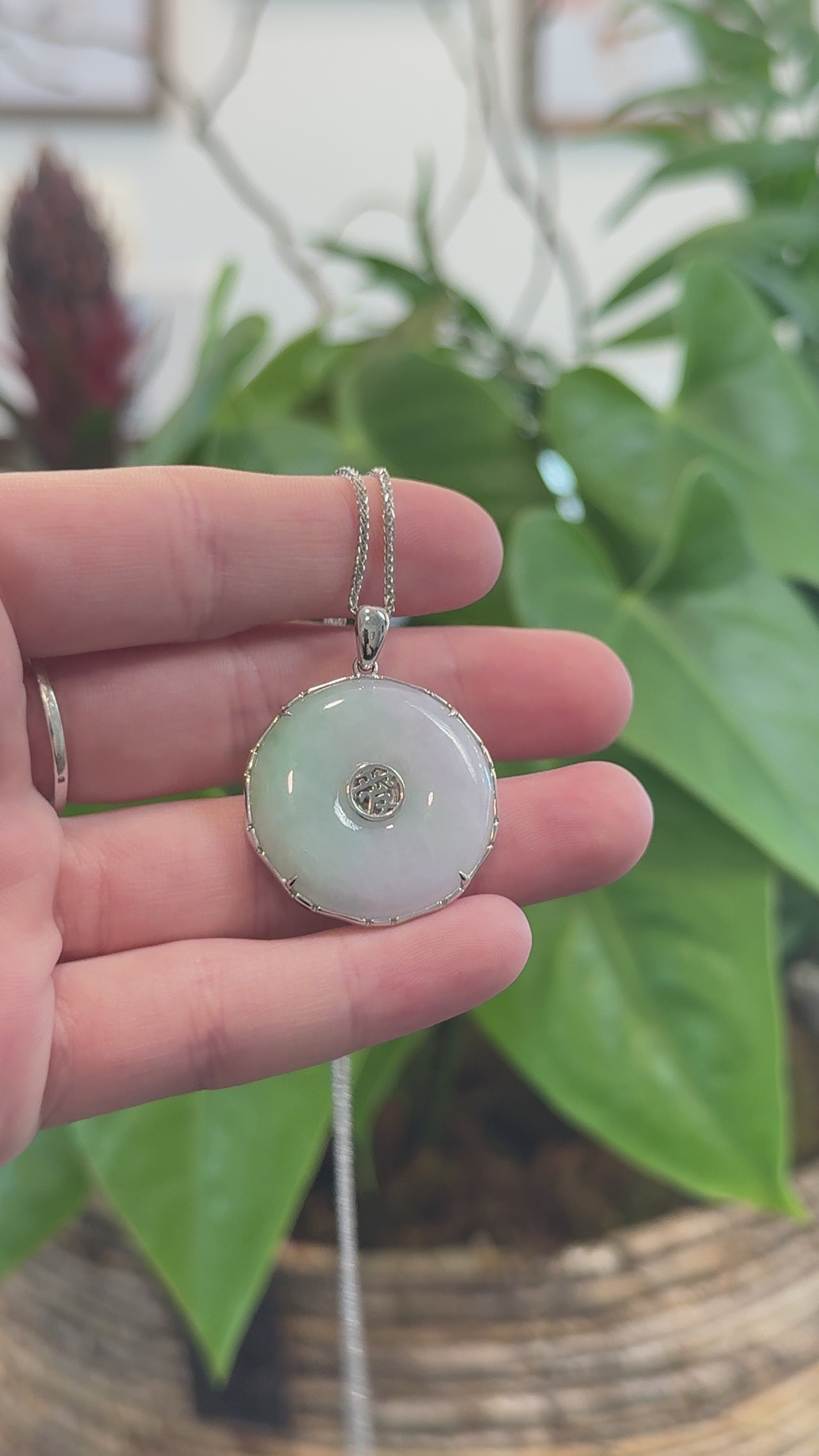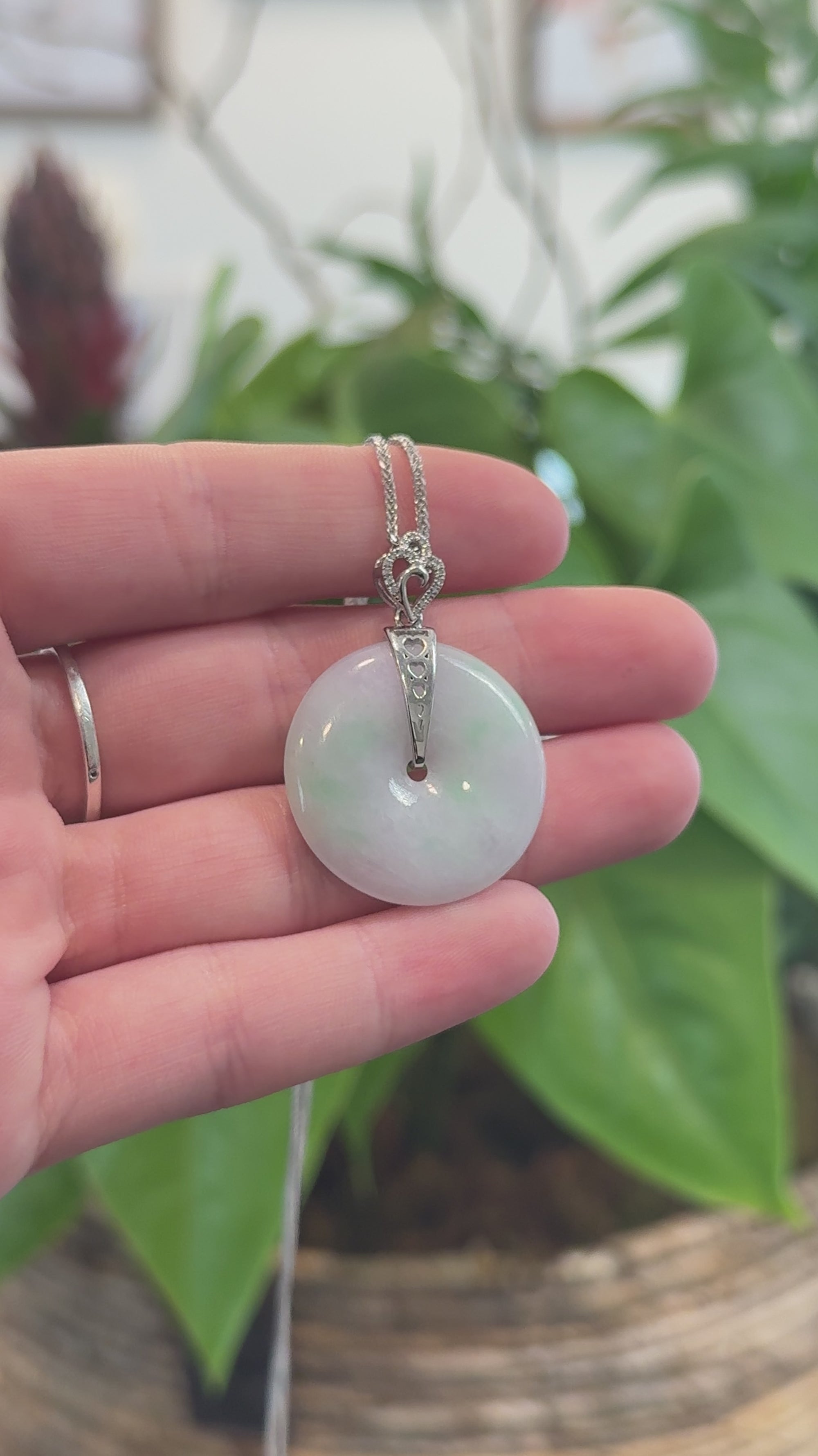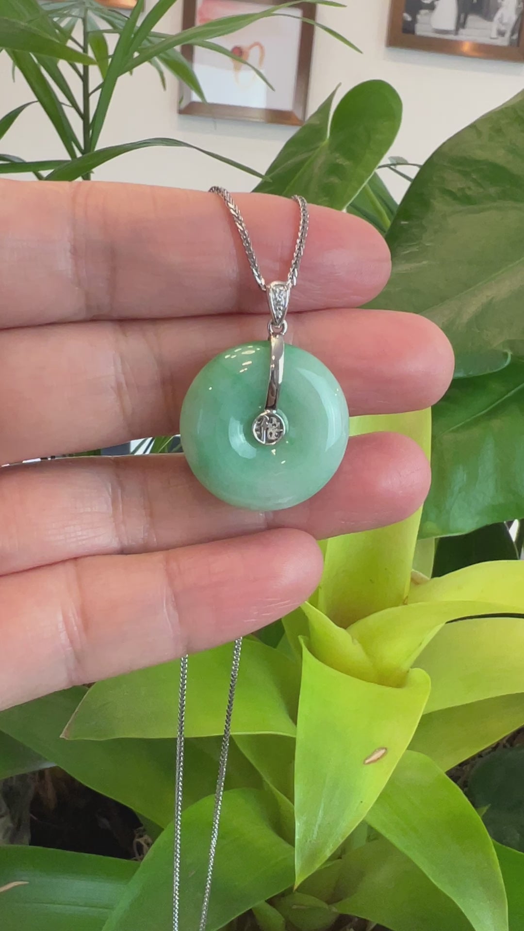 14K White Gold "Good Luck Button" Necklace Ice Green Jadeite Jade Lucky KouKou Pendant Necklace