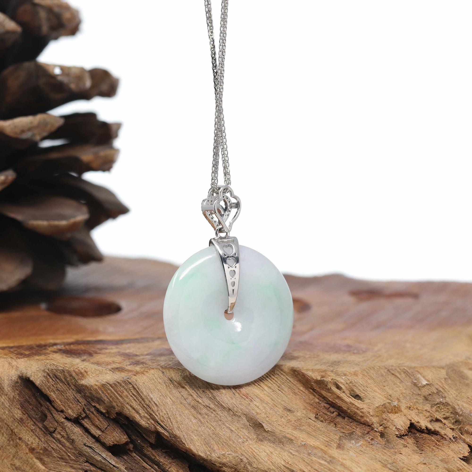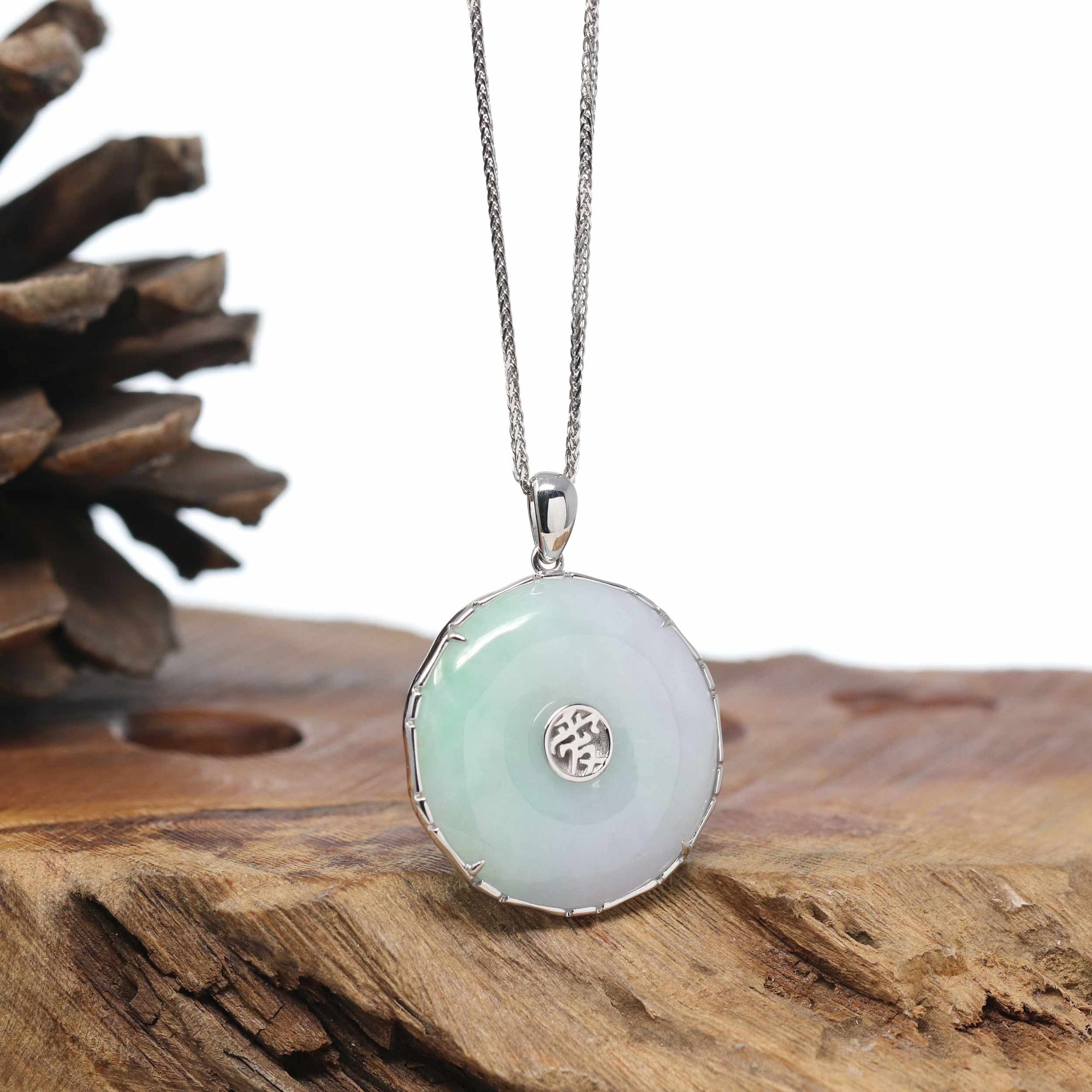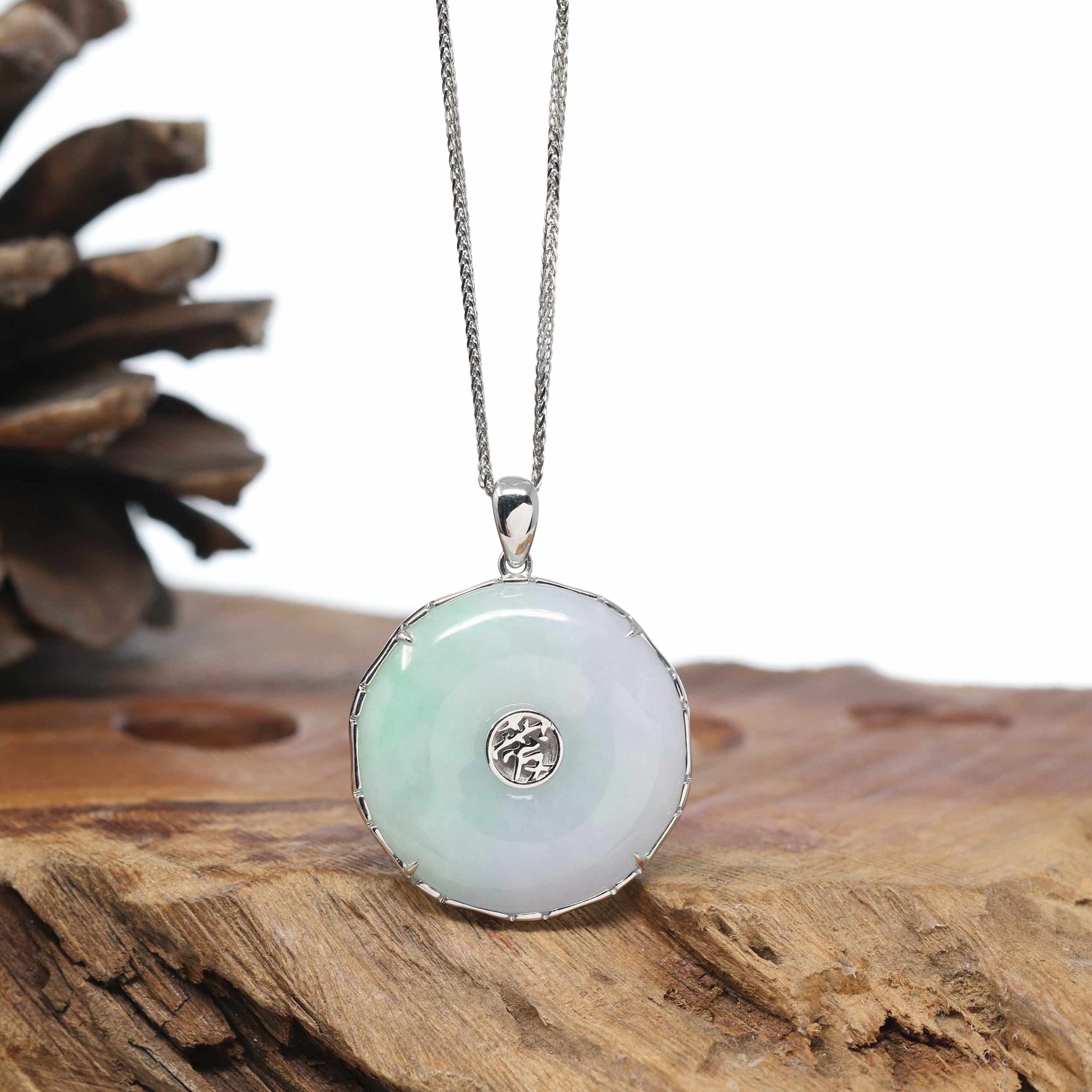 14K White Gold "Good Luck Button" Necklace Ice Green Jadeite Jade Lucky KouKou Pendant Necklace