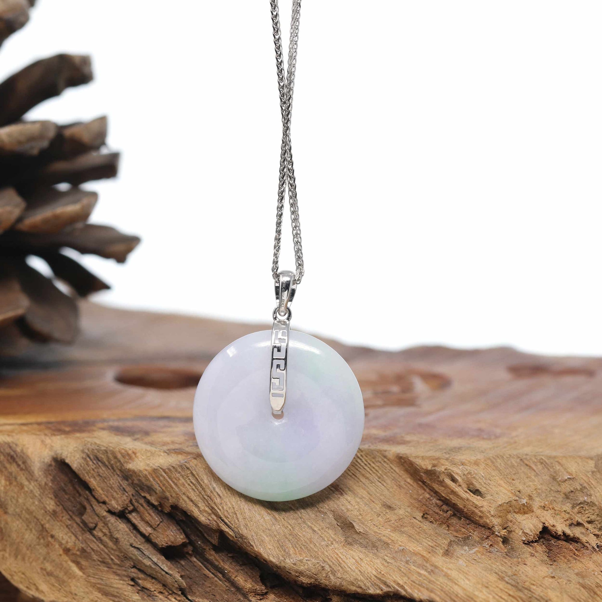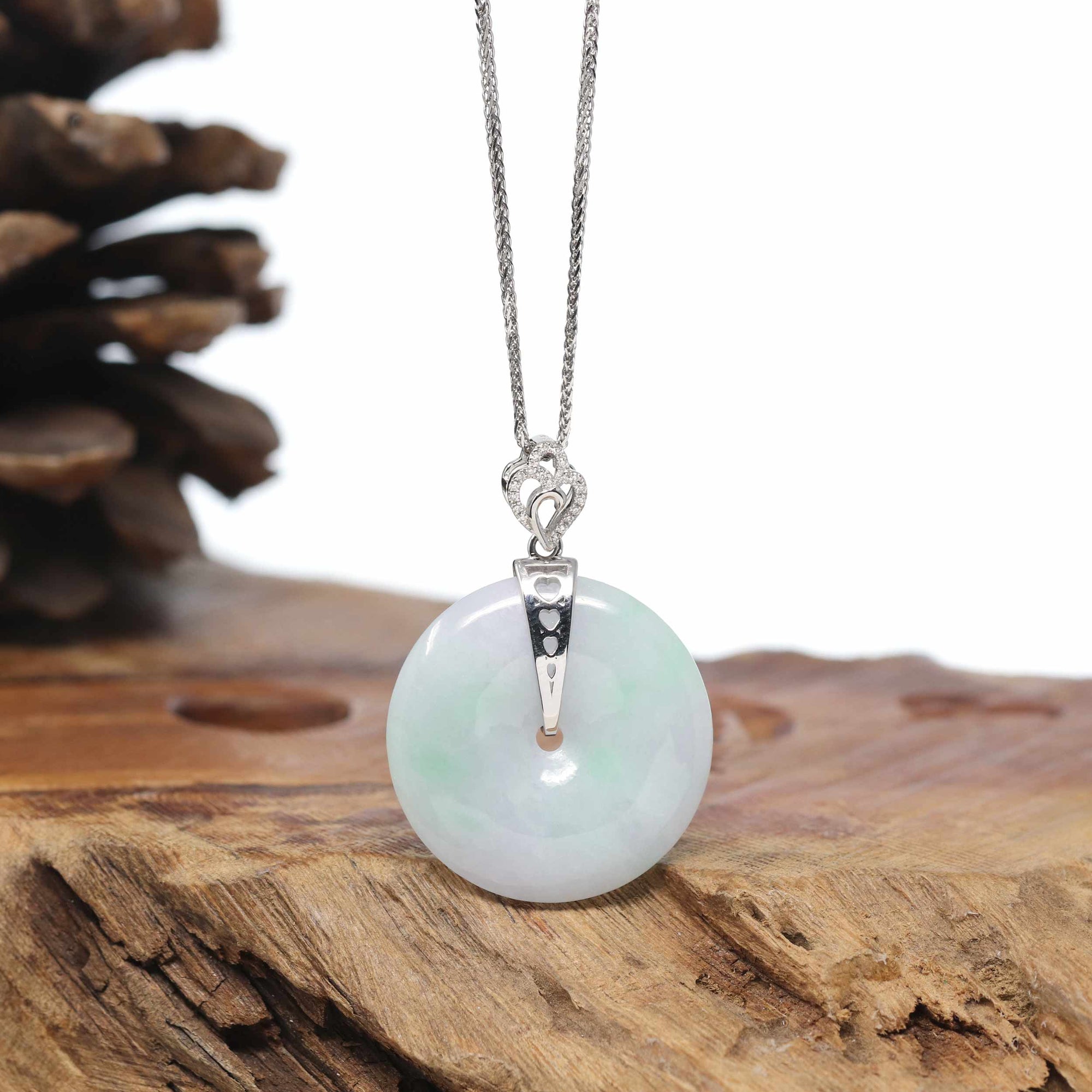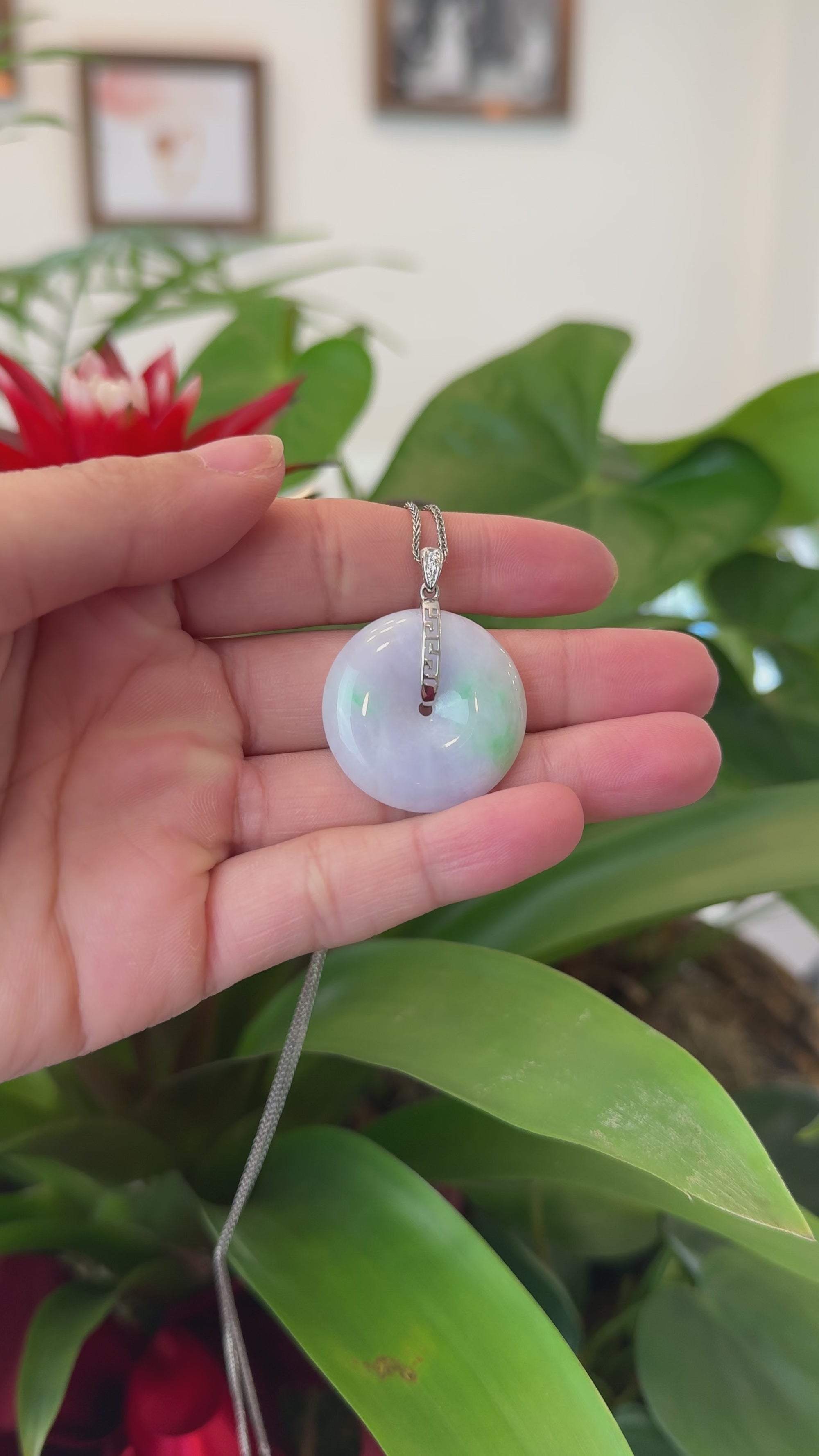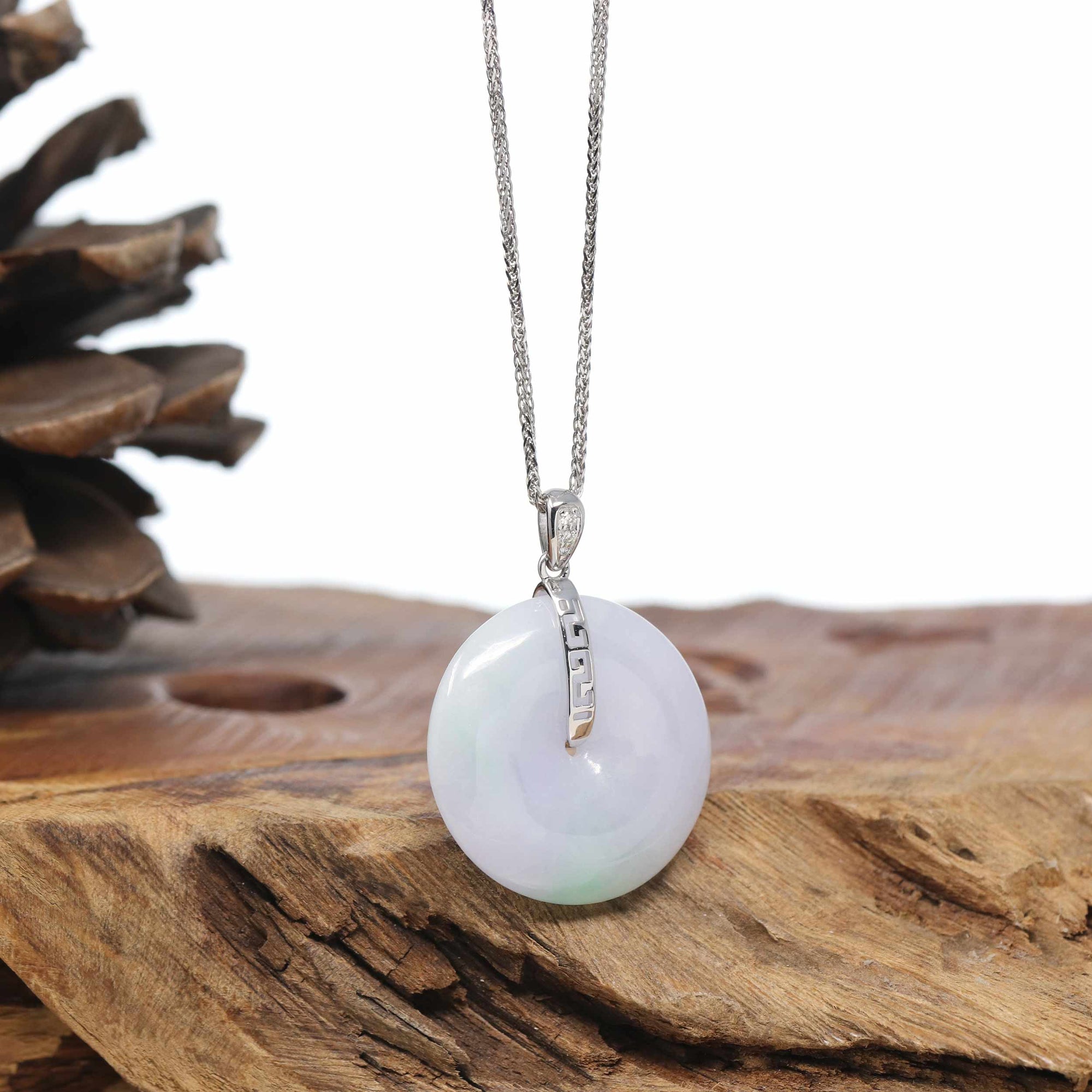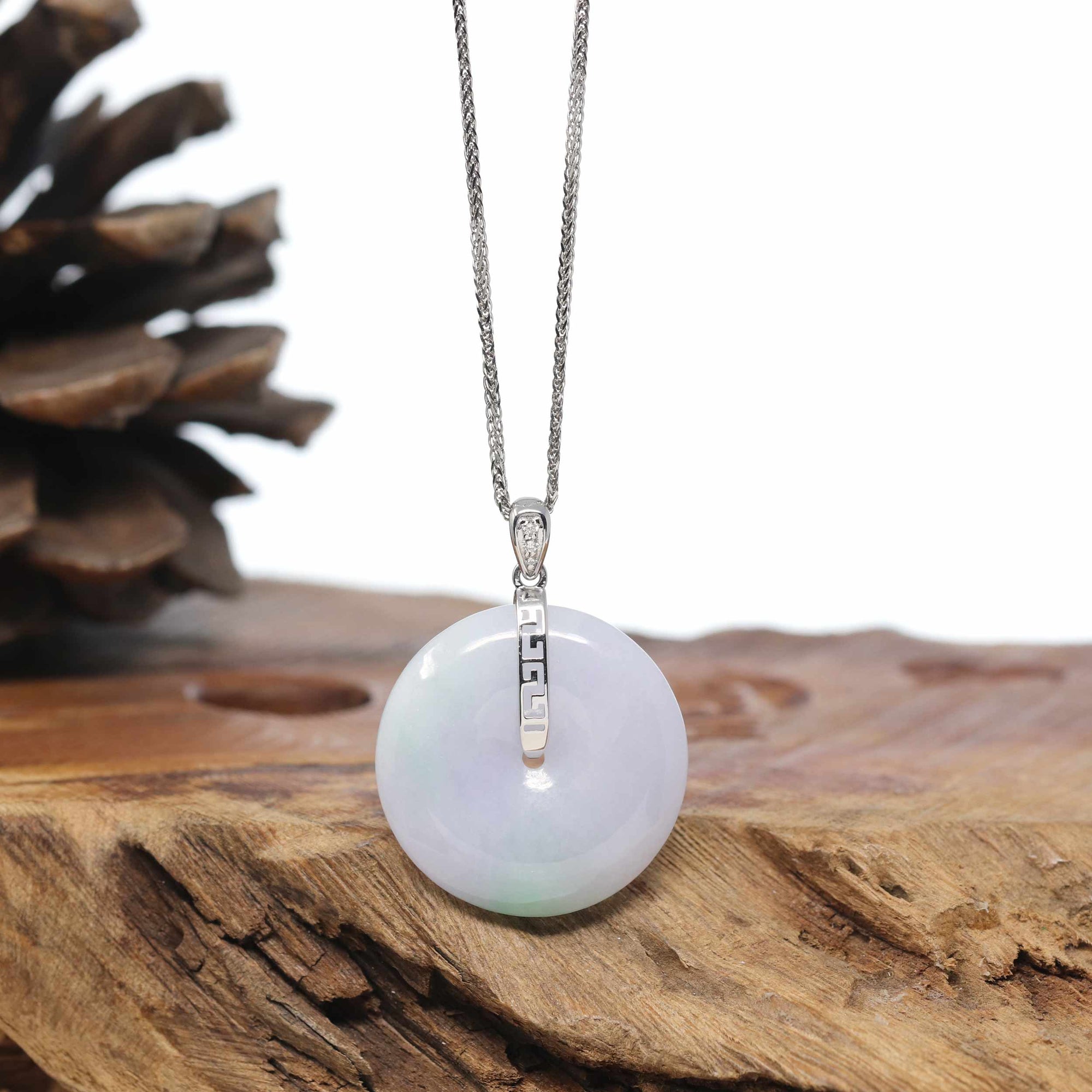 Genuine Lavender Jadeite Jade Lucky KouKou " Ping An Kou " Pendant With 14K White Gold Bail & Diamond In Center.