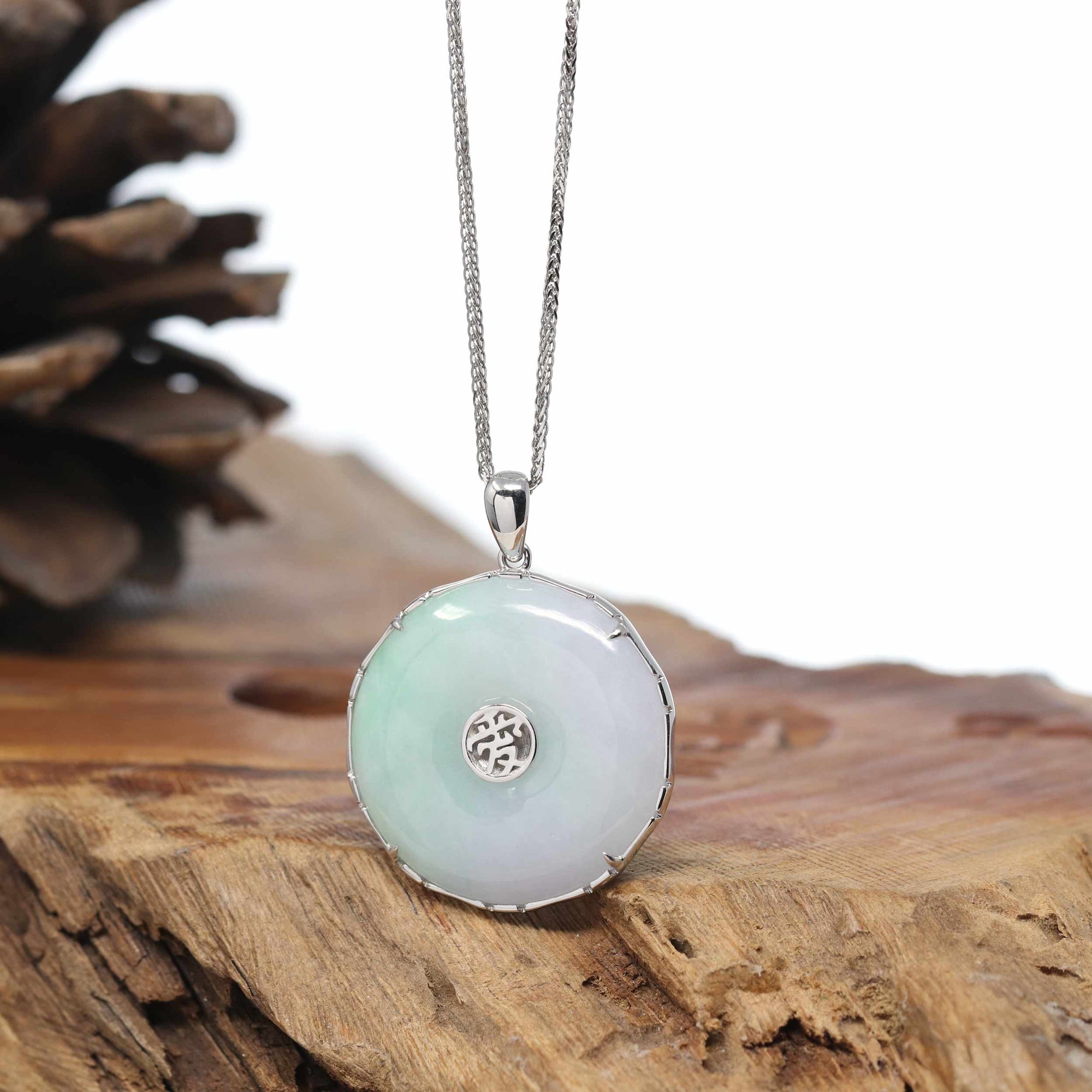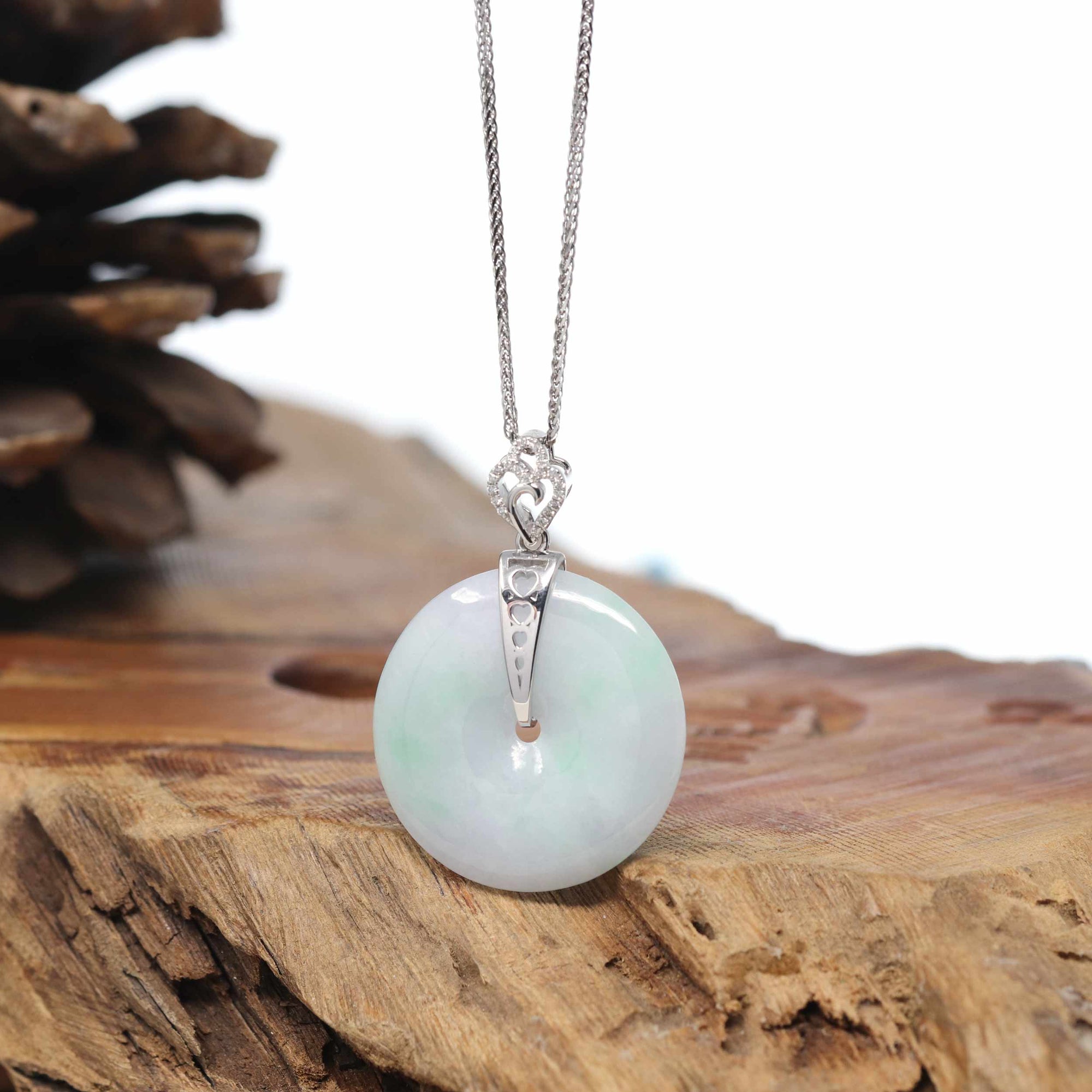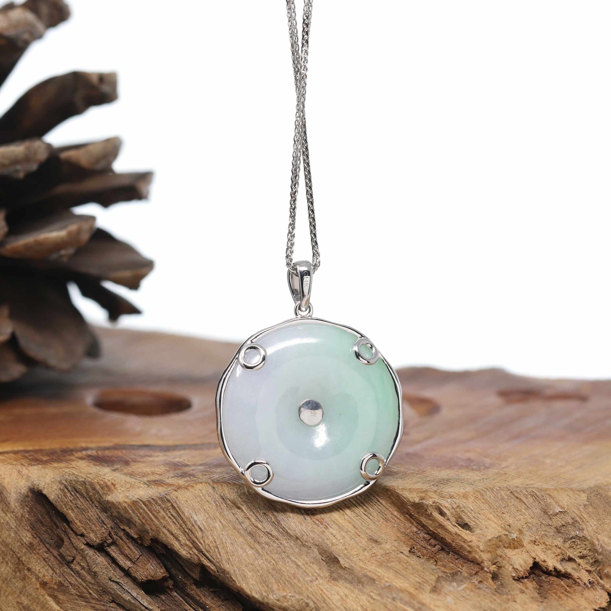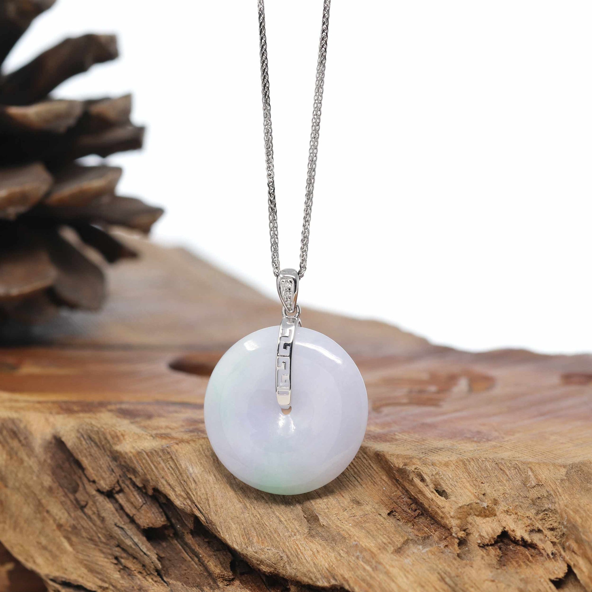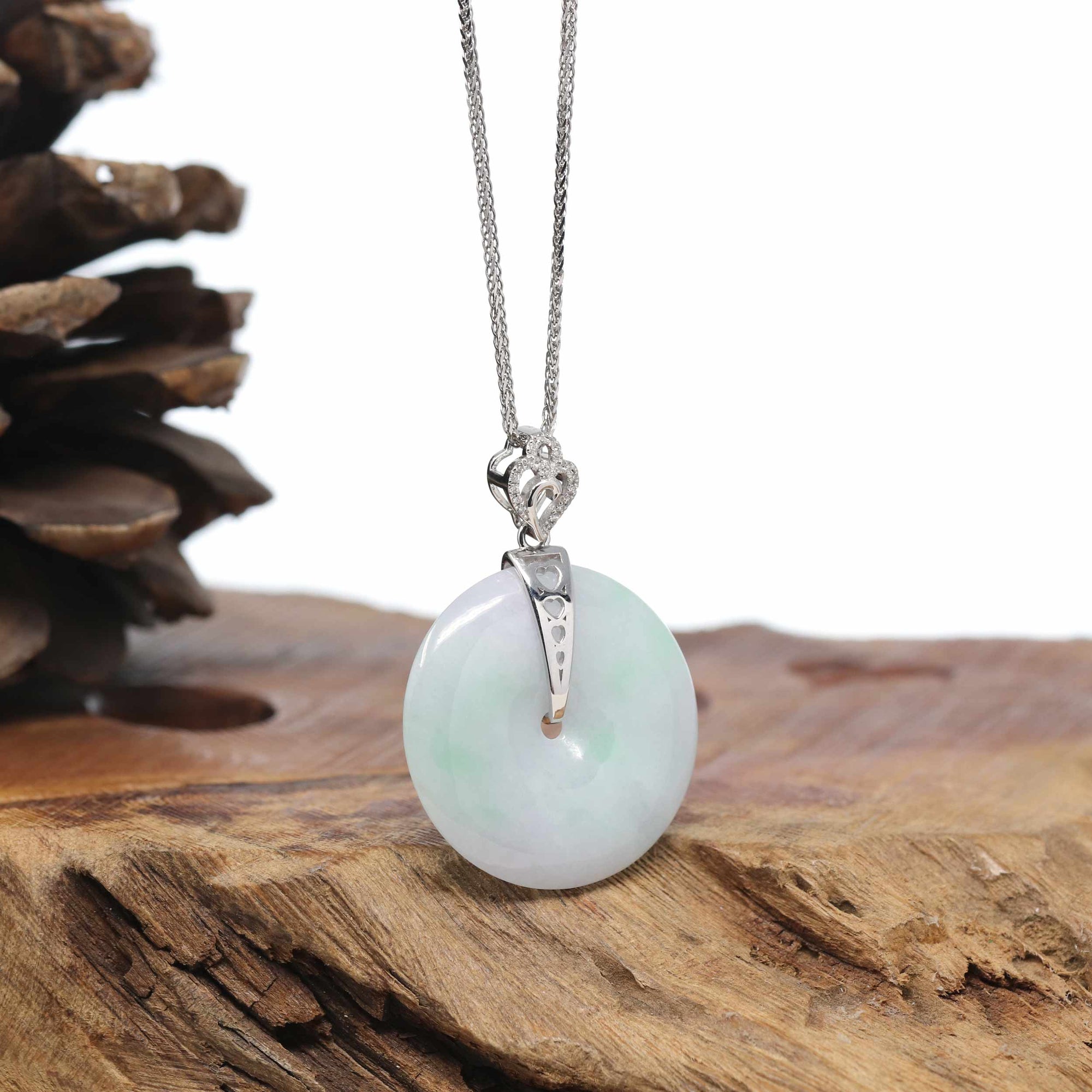 Genuine Lavender Jadeite Jade Lucky KouKou " Ping An Kou " Pendant With 14K White Gold Bail & Diamond In Center.