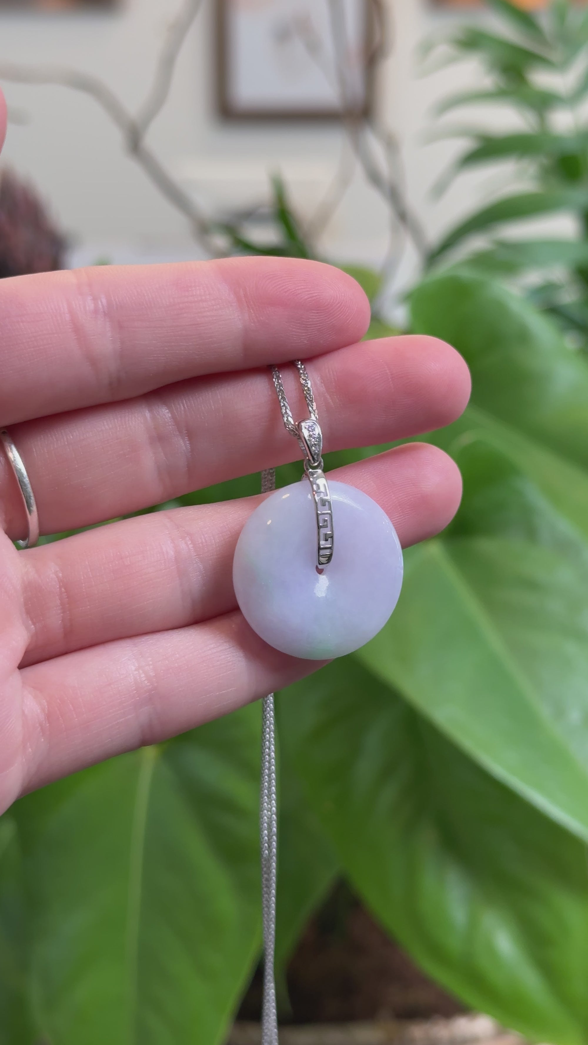 "Good Luck Button" Lavender Jadeite Jade Lucky KouKou Pendant W/ 14K White Gold Diamond Bail