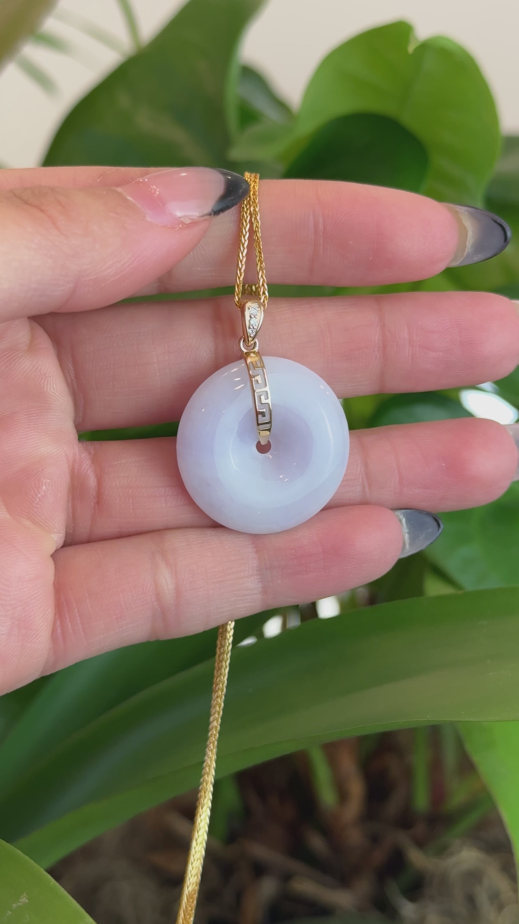 14k White Gold "Good Luck Button" Necklace Lavender Ice Jadeite Jade Lucky KouKou Pendant Necklace