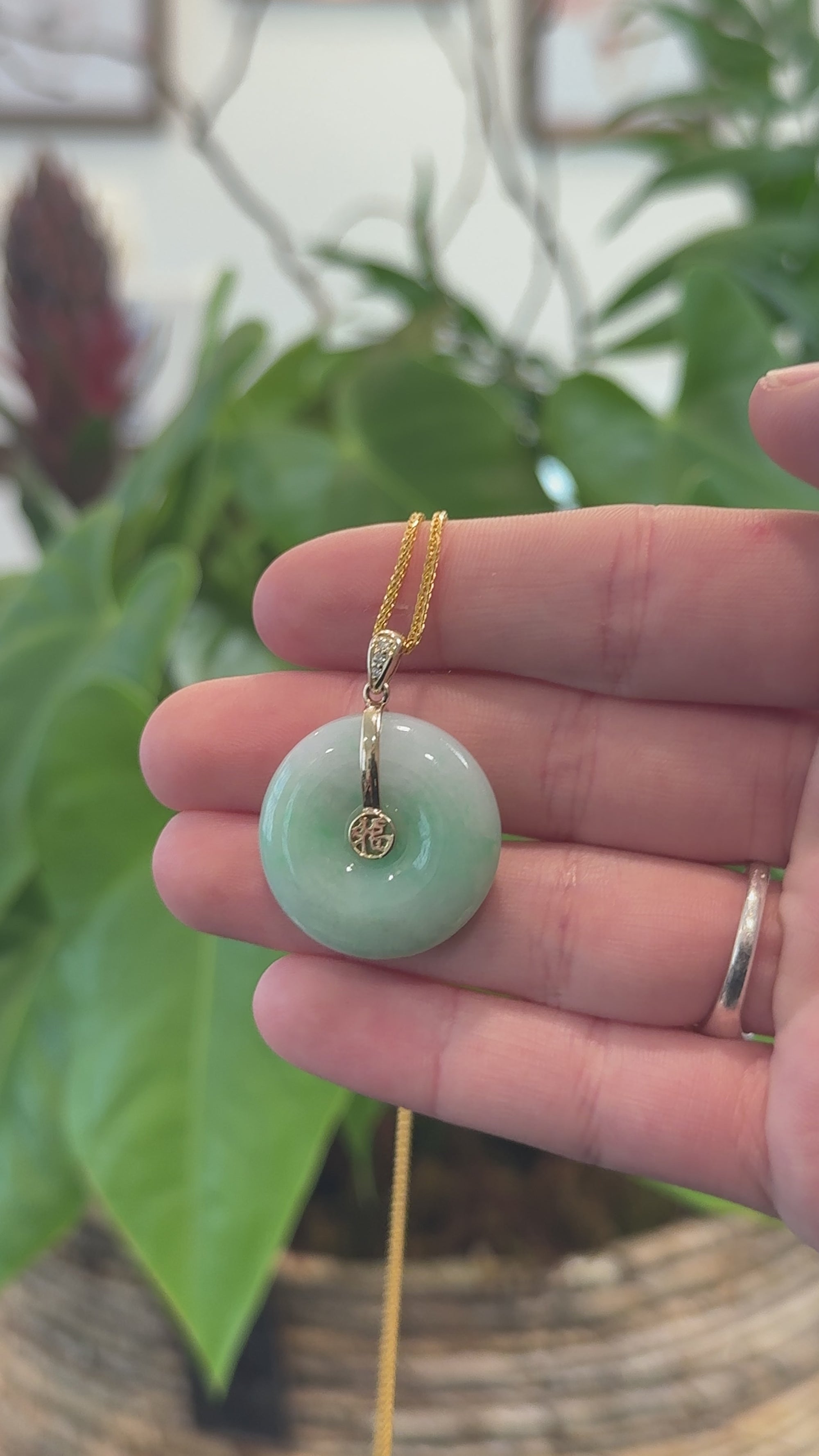 The jade Ping An Kou is both understated and deeply symbolic, offering a modern expression of calm and protection without compromising luxury. Its clean, circular silhouette pairs effortlessly with 18K gold or stands beautifully on its own, making it ideal for everyday wear or as a meaningful gift.