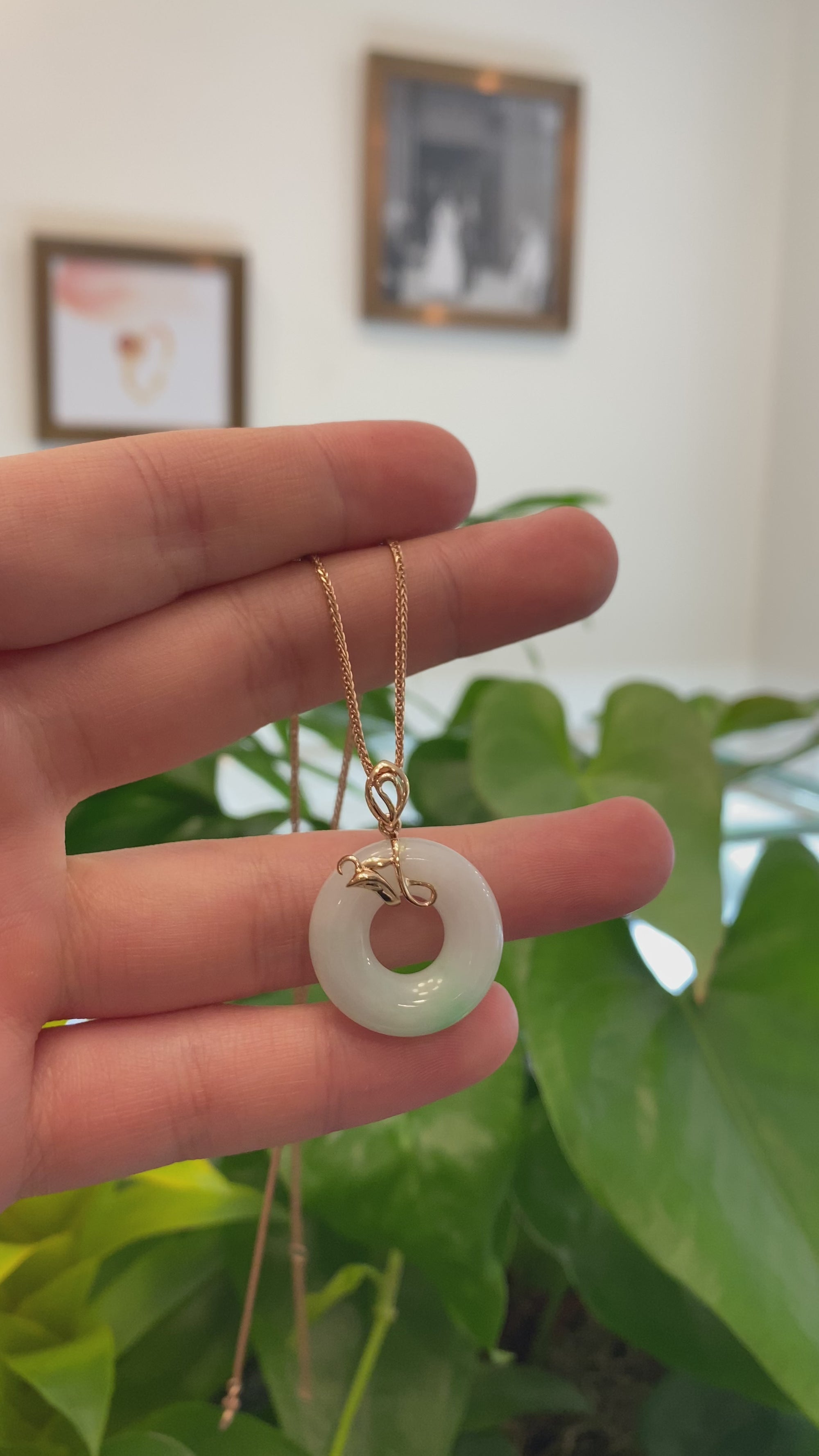 18k Rose Gold Genuine Burmese Jadeite Lucky Kou Kou Birdie Pendant Necklace
