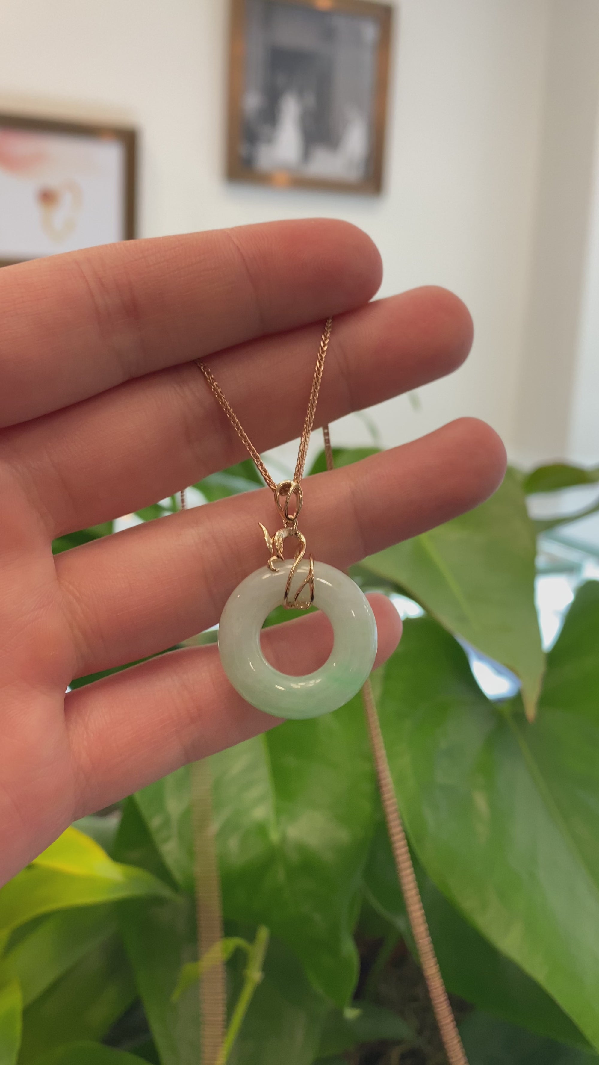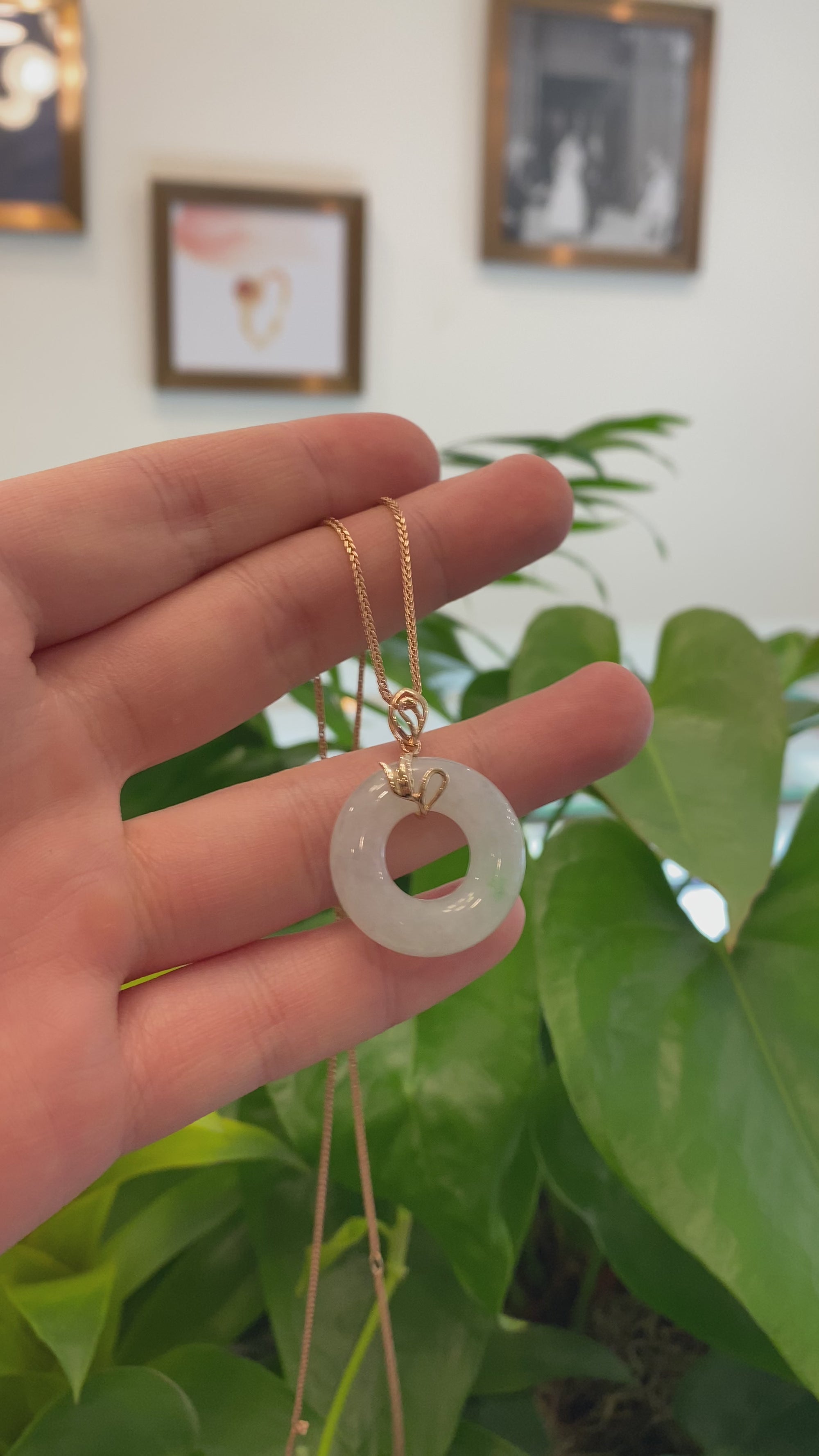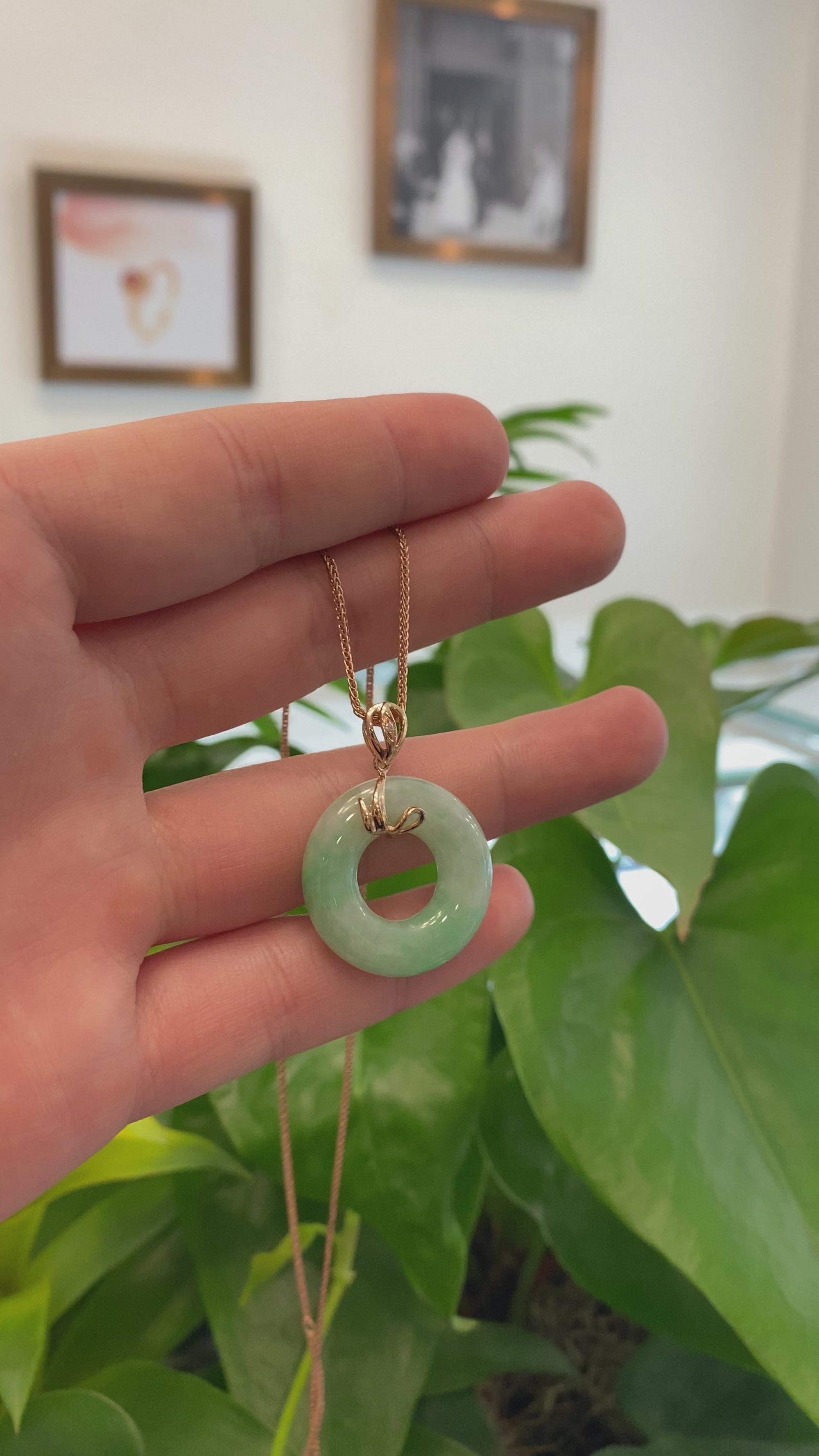Baikalla Green & White "Ping An Kou" (Good Luck Button) Genuine Burmese Jadeite Pendant W/ 18k Rose Gold Bail