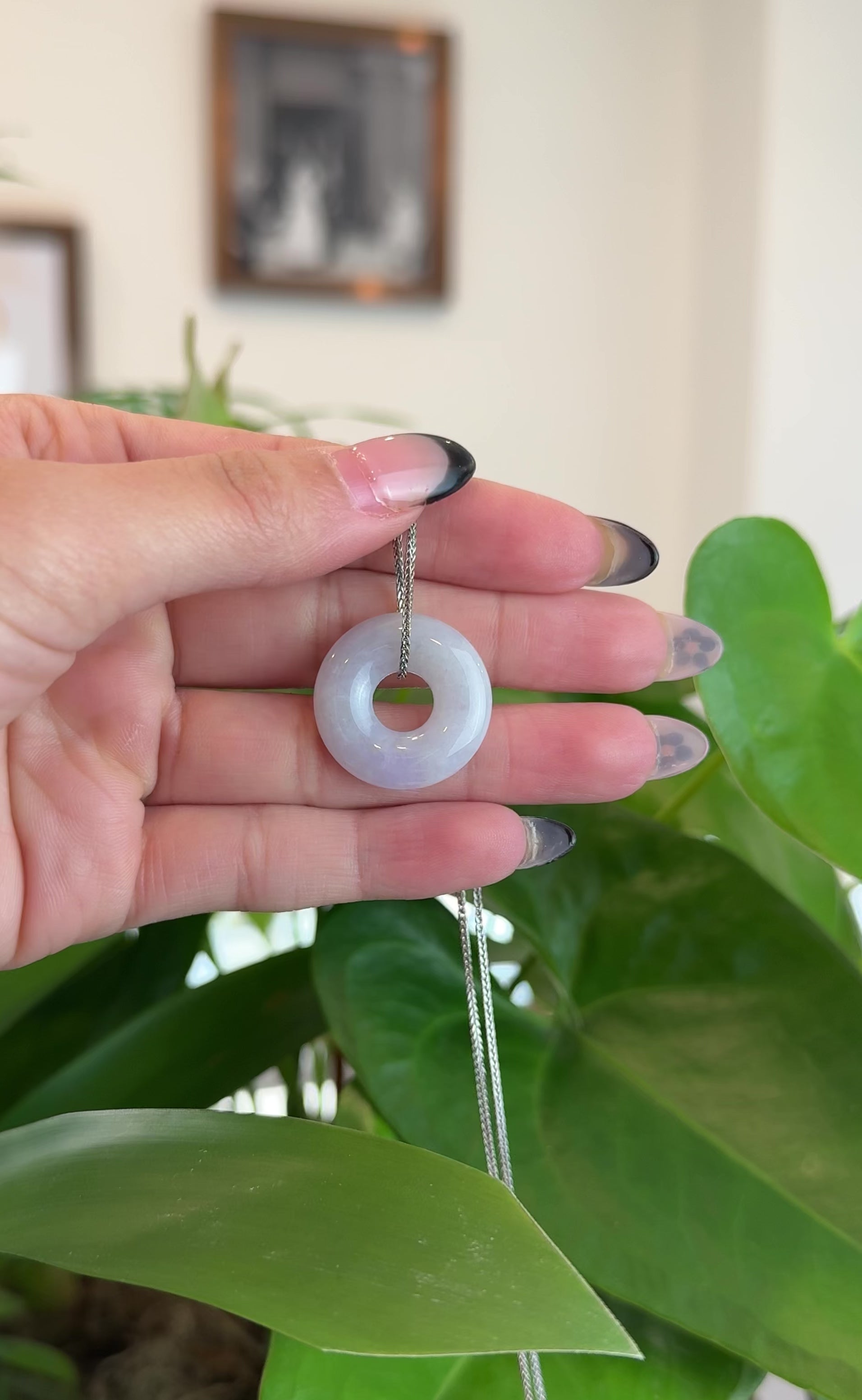 "Good Luck Button" Necklace Lavender Jadeite Jade Lucky Ping An Kou Necklace
