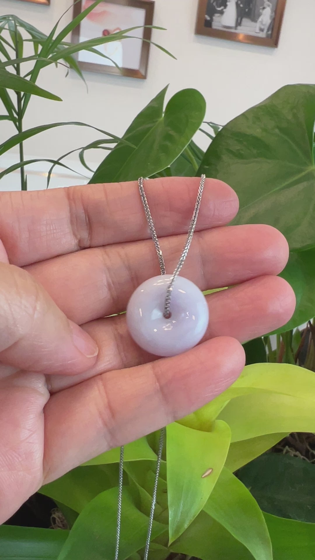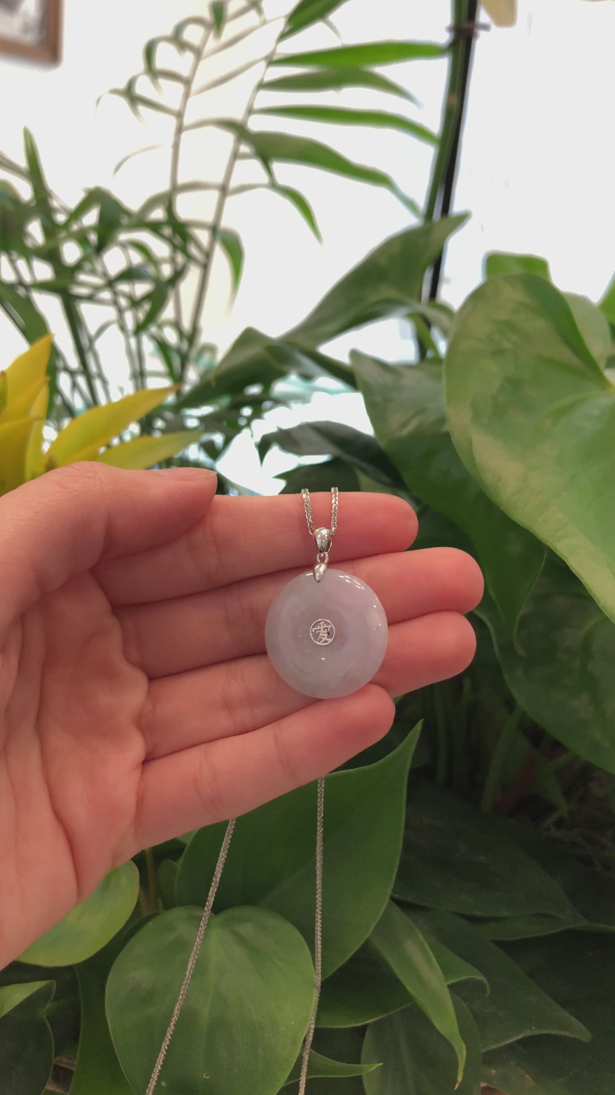 14k White Gold "Good Luck Button" Necklace Lavender Ice Jadeite Jade Lucky KouKou Pendant Necklace