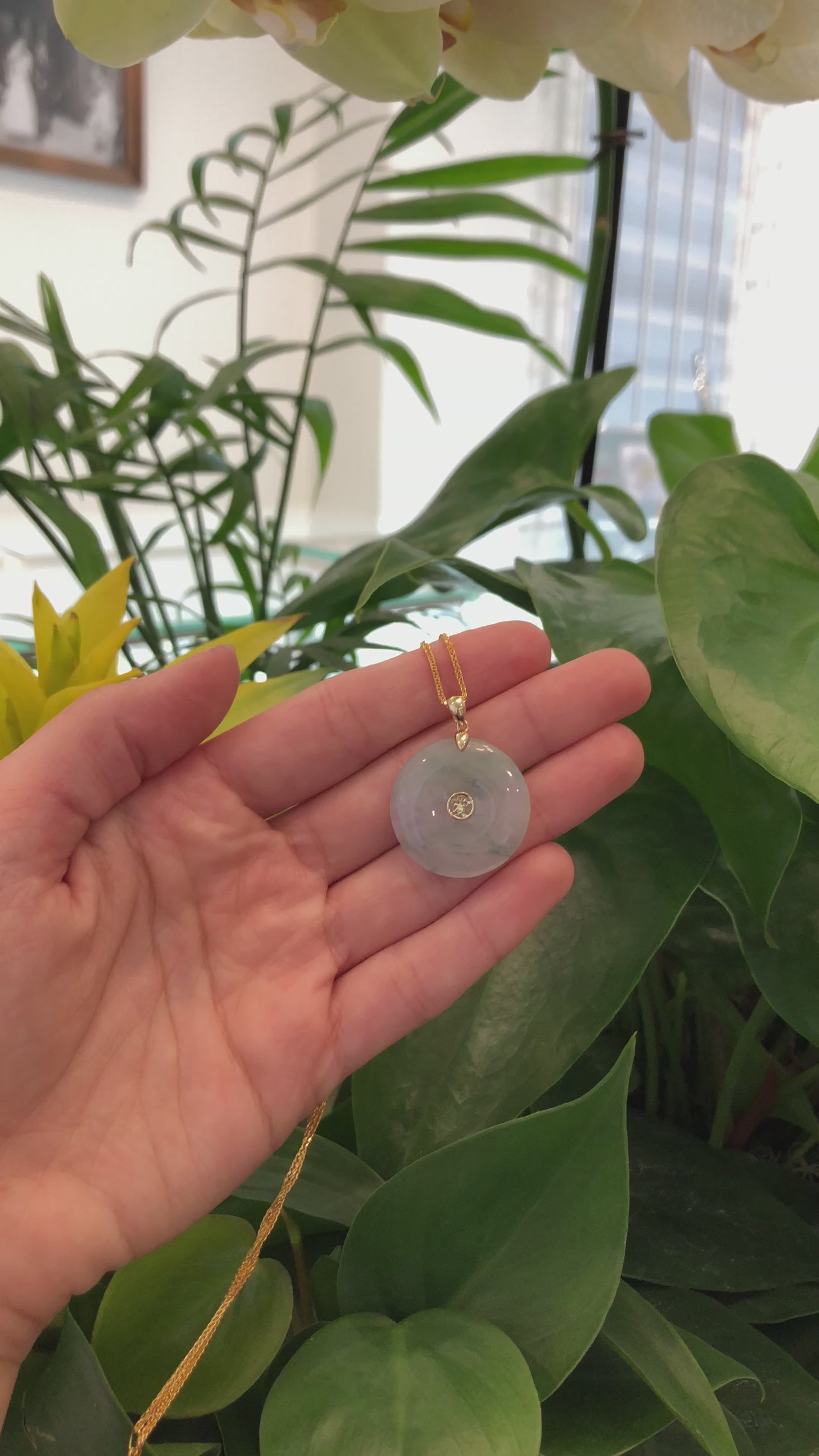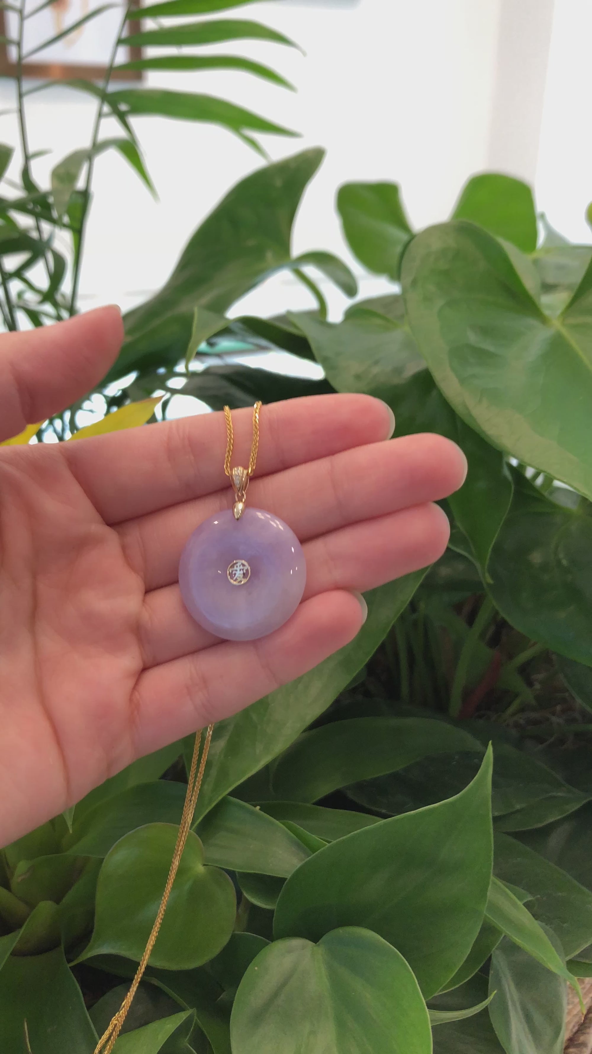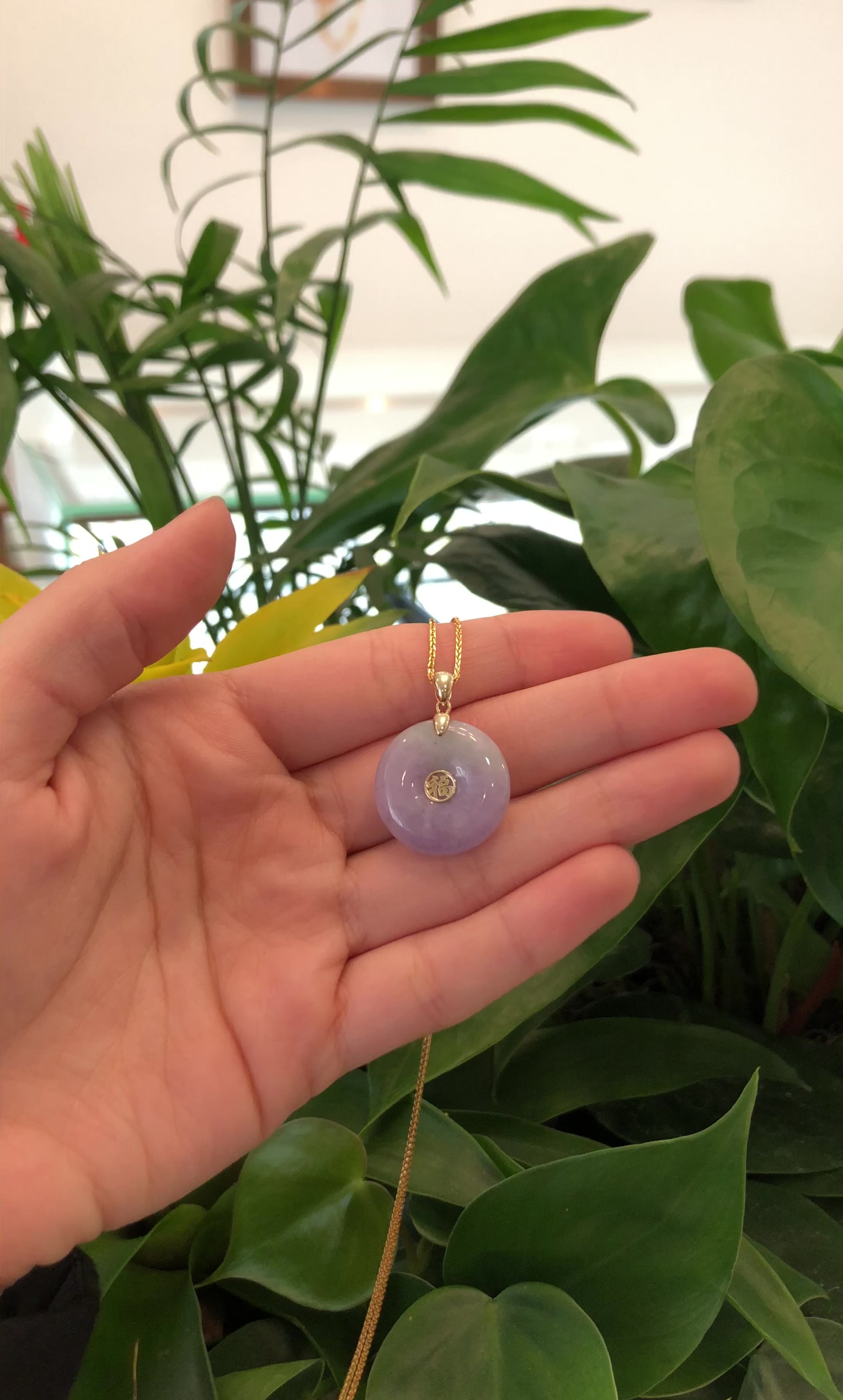 "Good Luck Button" Lavender Jadeite Jade Lucky KouKou Pendant Necklace With 14K Yellow Gold Diamond Bail