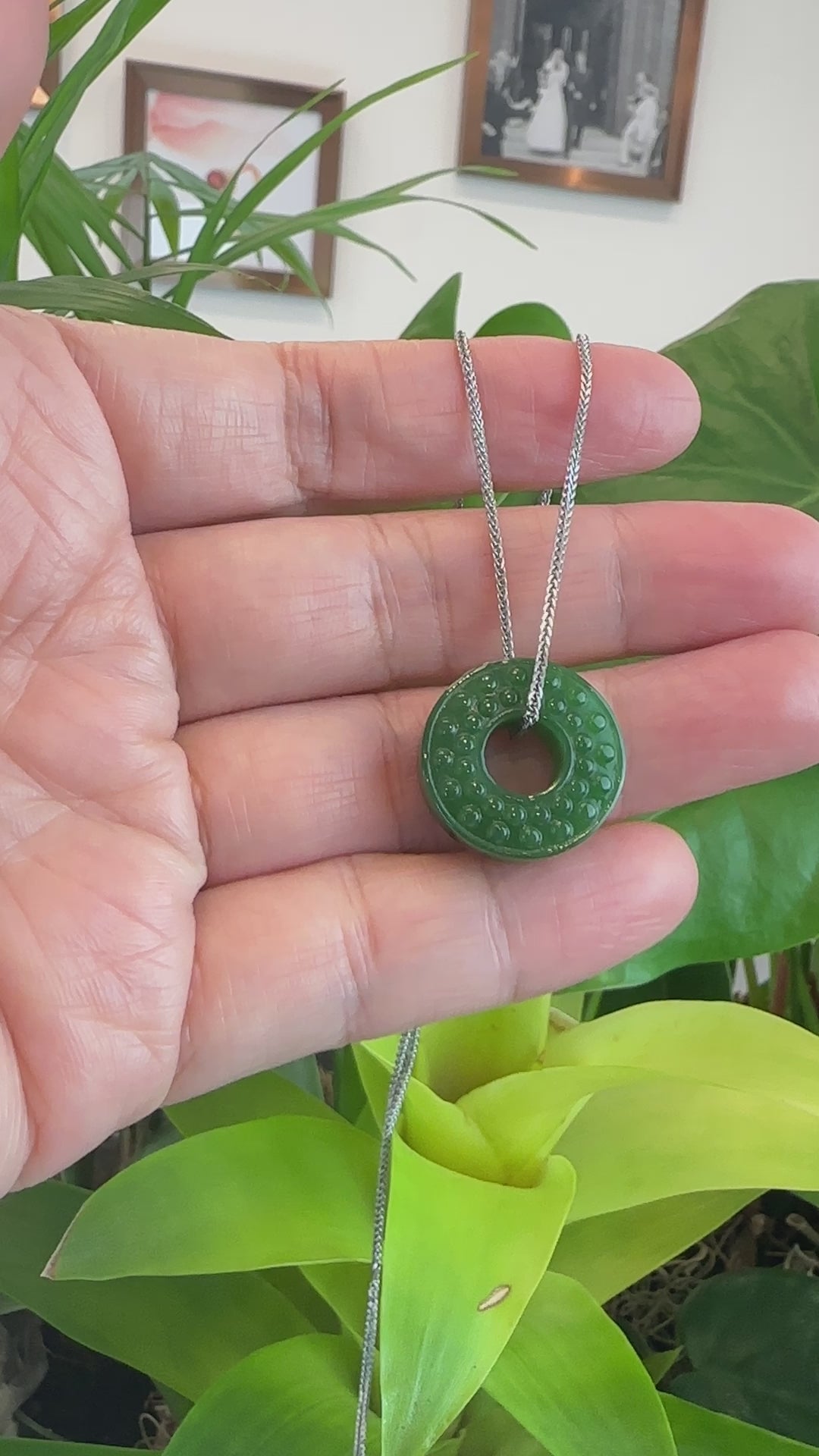 Baikalla™ "Good Luck Button" Necklace Green Nephrite Jade Lucky KouKou Donut Pendant Necklace