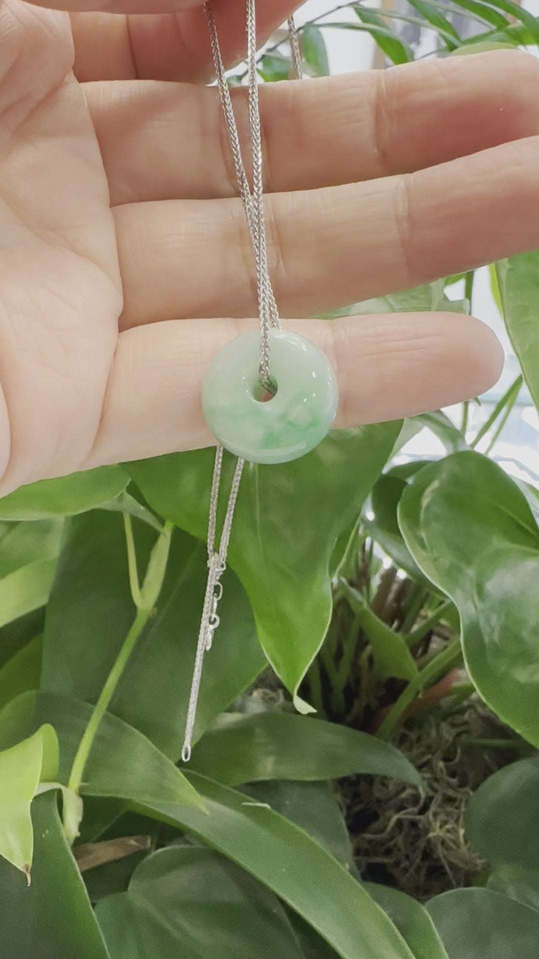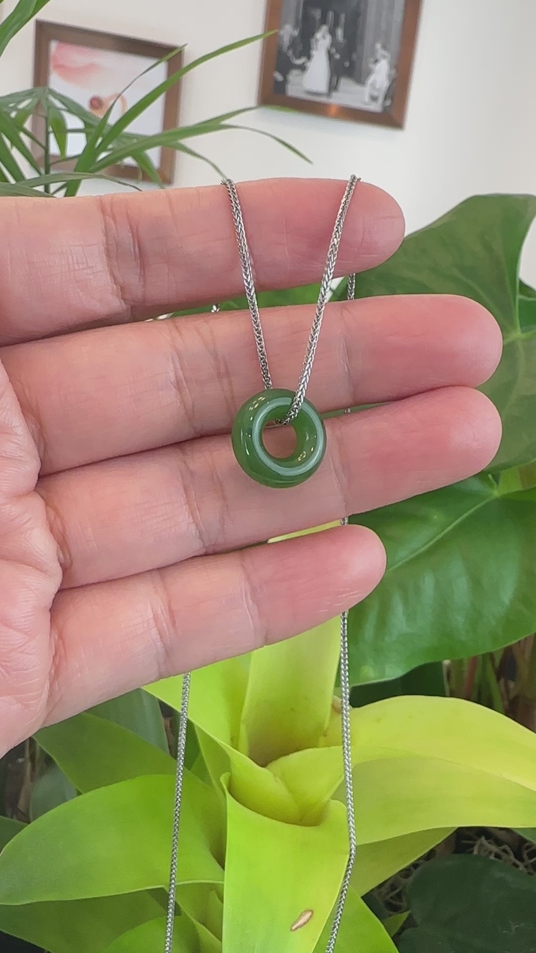 Baikalla™ "Good Luck Button" Necklace Real Green Jade Lucky KouKou Donut Pendant Necklace