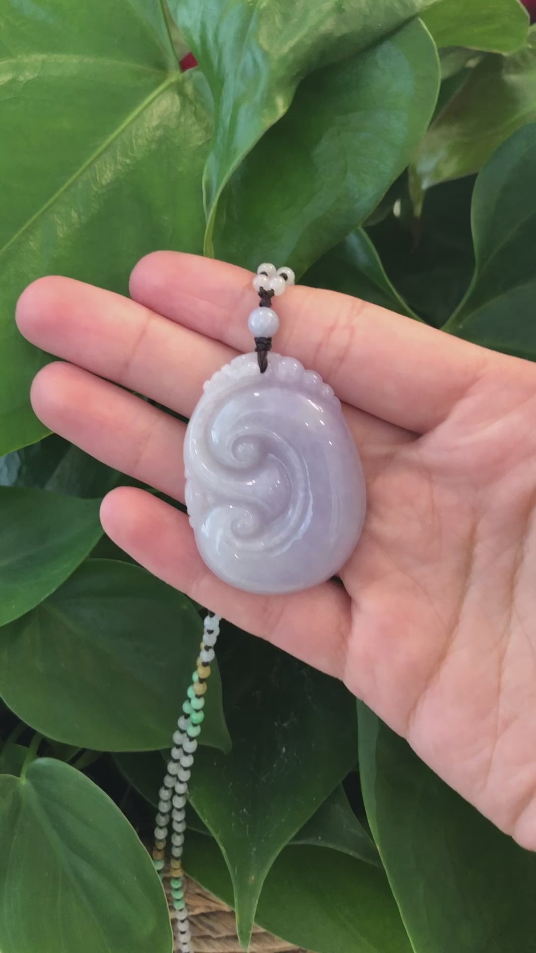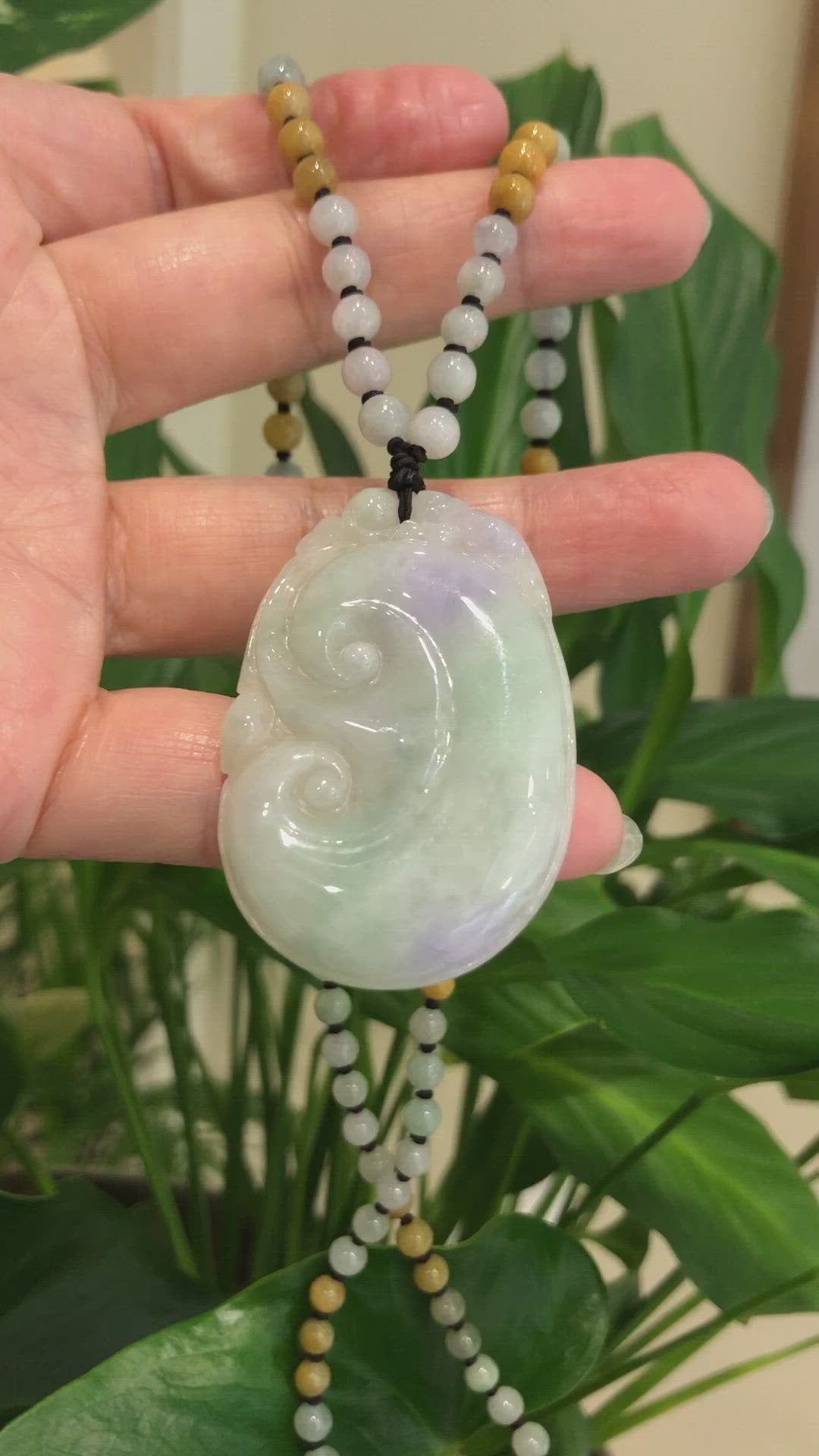 Genuine Lavender Jadeite Jade RuYi Pendant Necklace With Real Jadeite jade Beads Necklace
