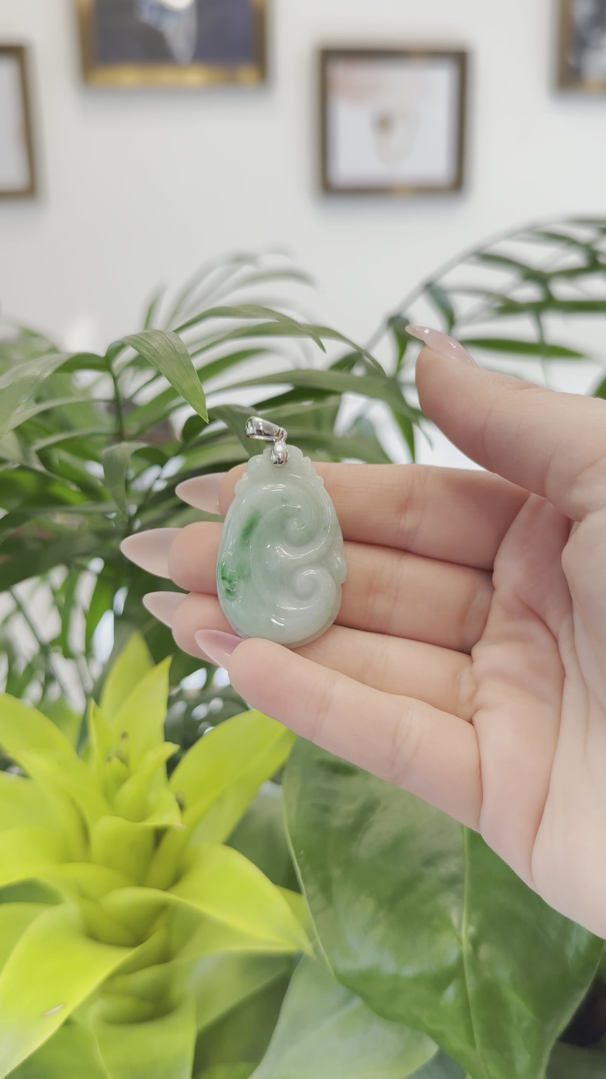 "Wang Shi Ru Yi" Genuine Ice Green Jadeite Jade Pendant Necklace With 18K White Gold Diamond Bail