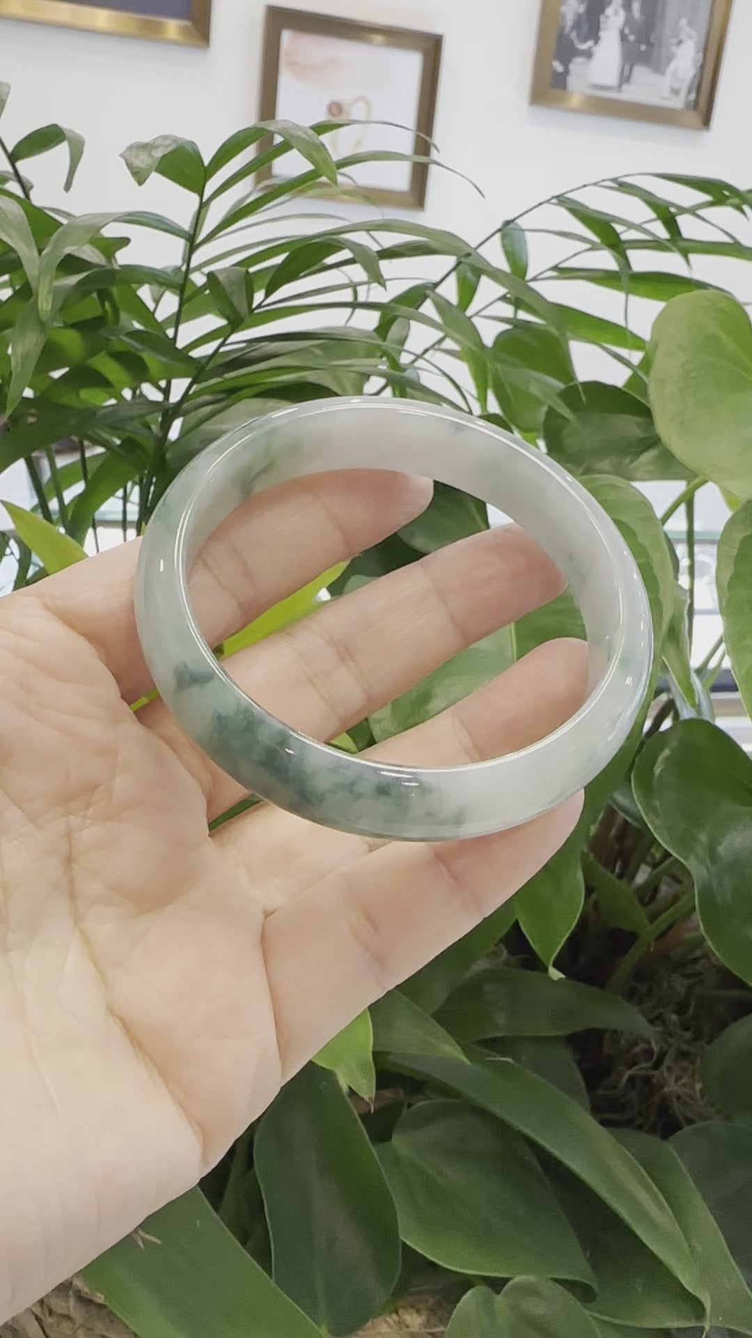 Burmese High-end Ice Blue-green Jade Jadeite Bangle Bracelet (56.37mm) ( Collectibles )T069