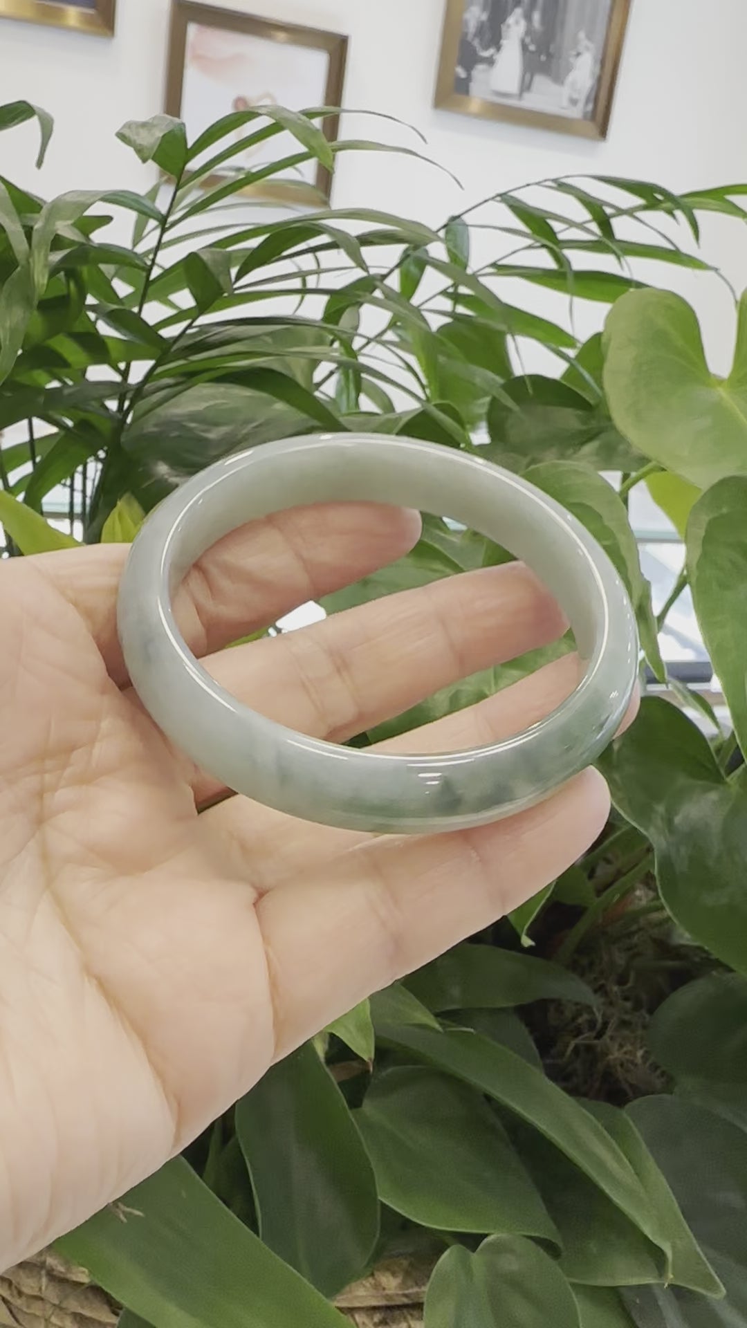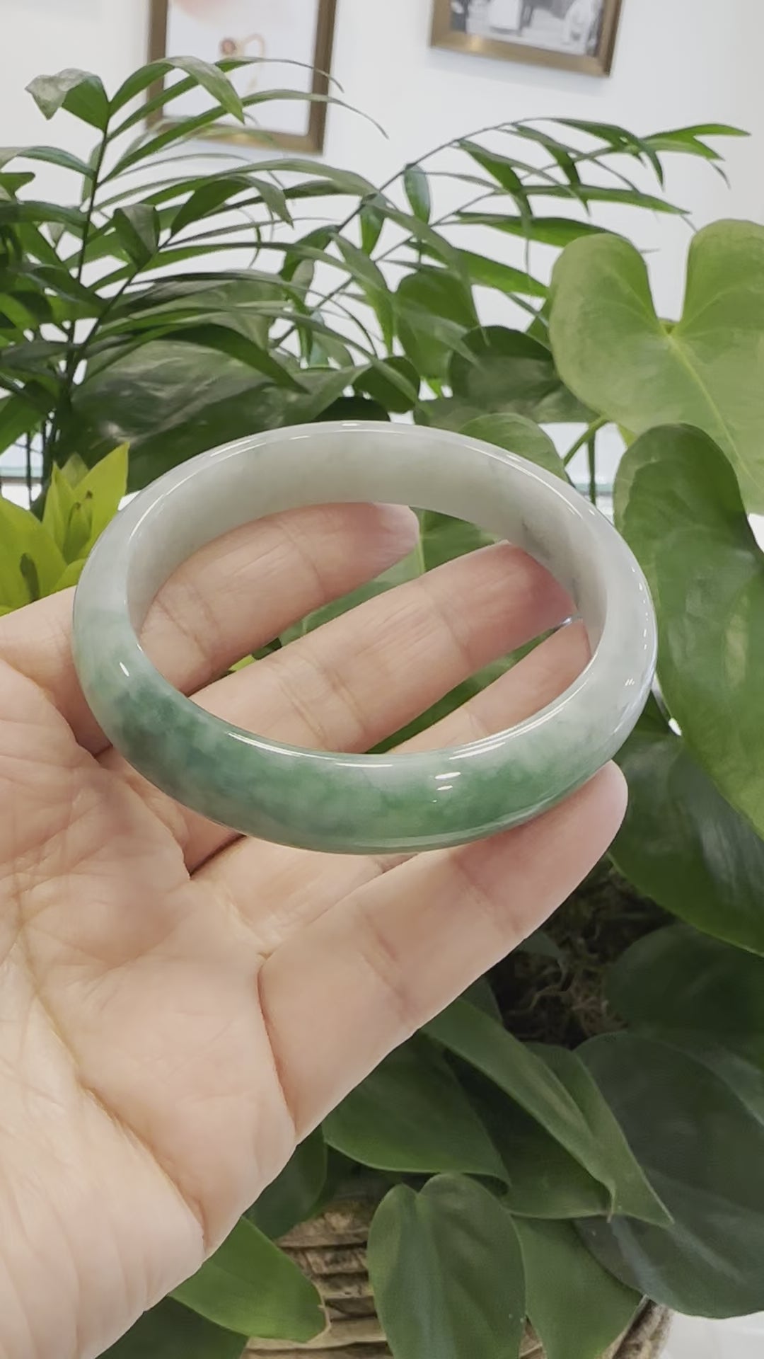"Classic Half Round" Blue- Green Jadeite Jade Bangle Bracelet (55.78 mm) #481