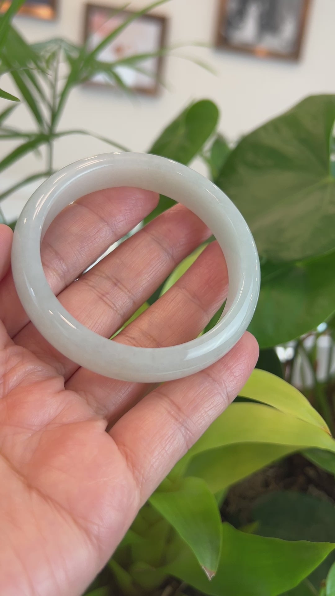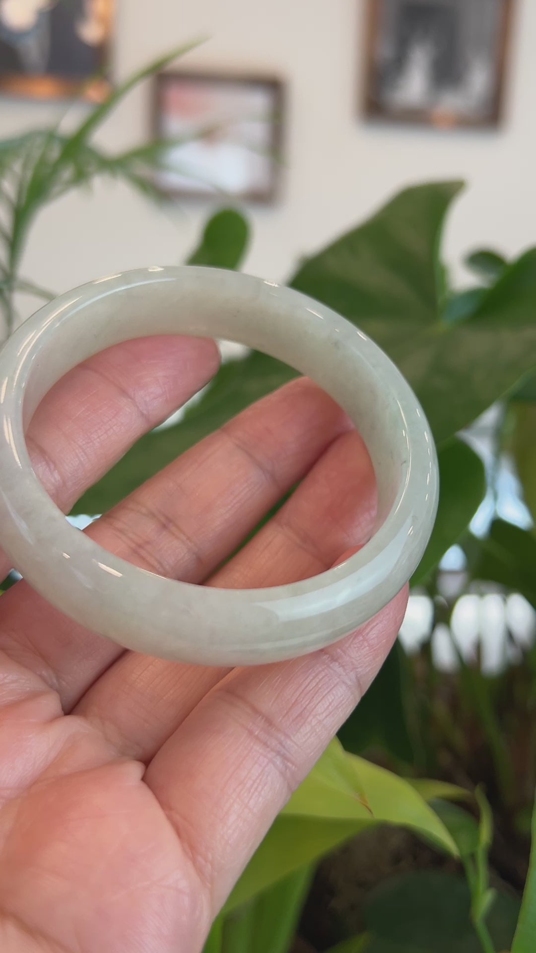Baikalla "Classic Bangle" Whitish Green Natural Jadeite Jade Bangle ( 55.4 mm) #505