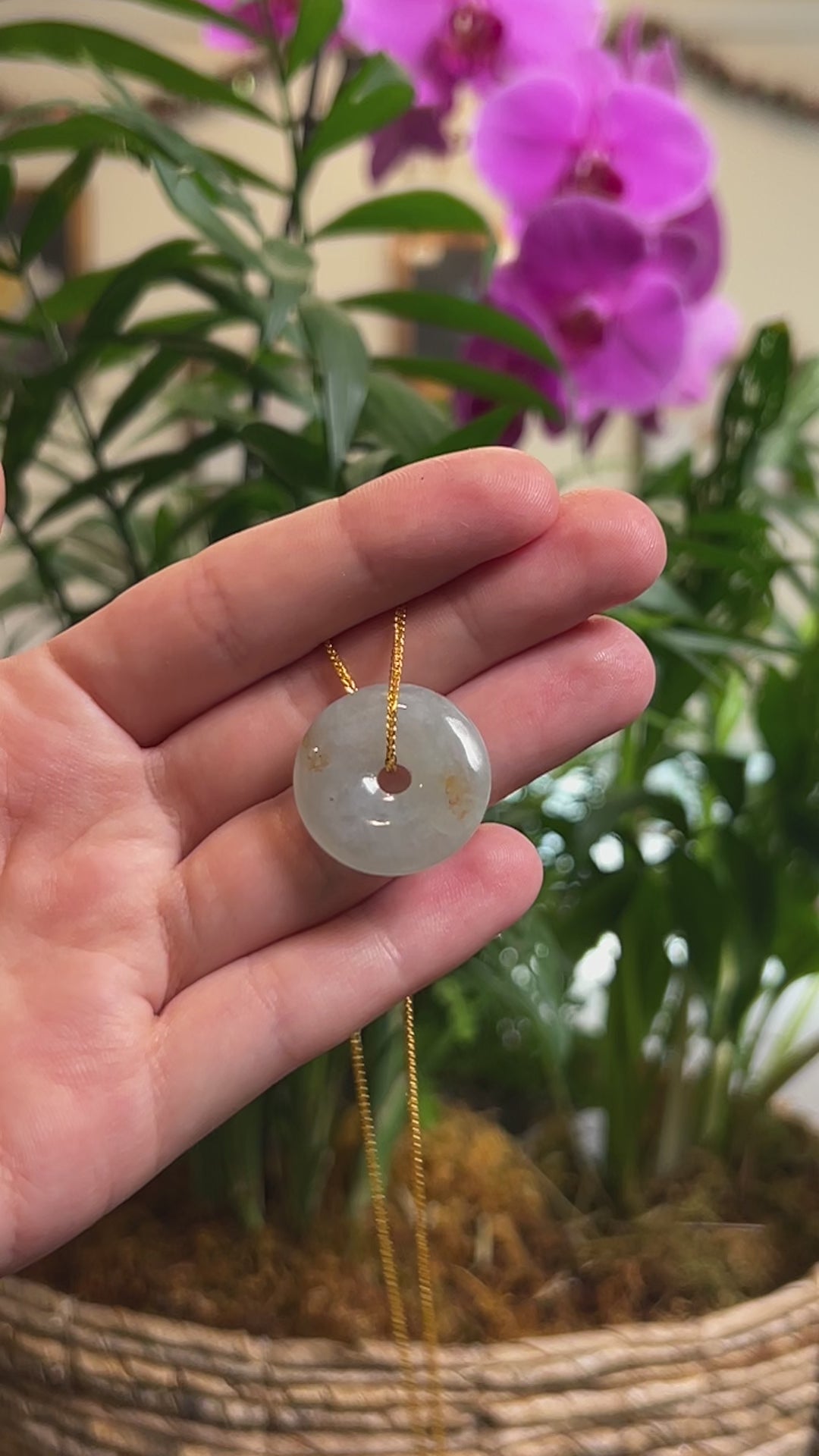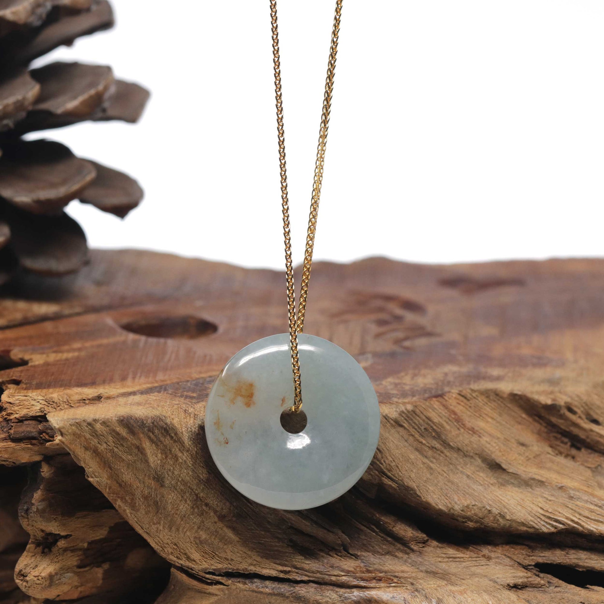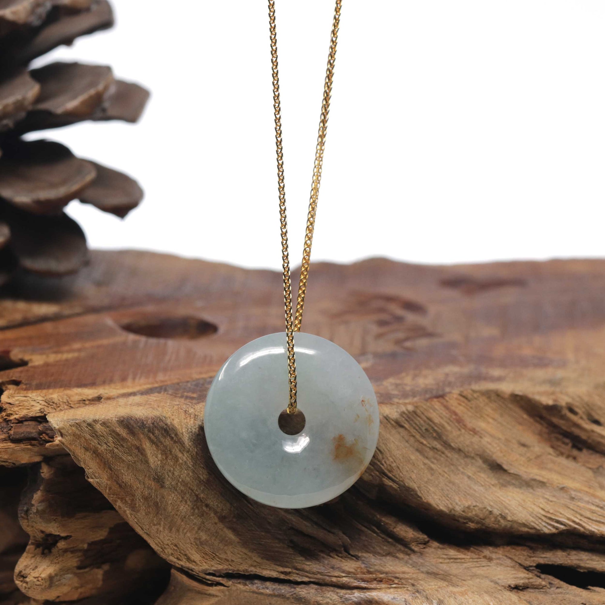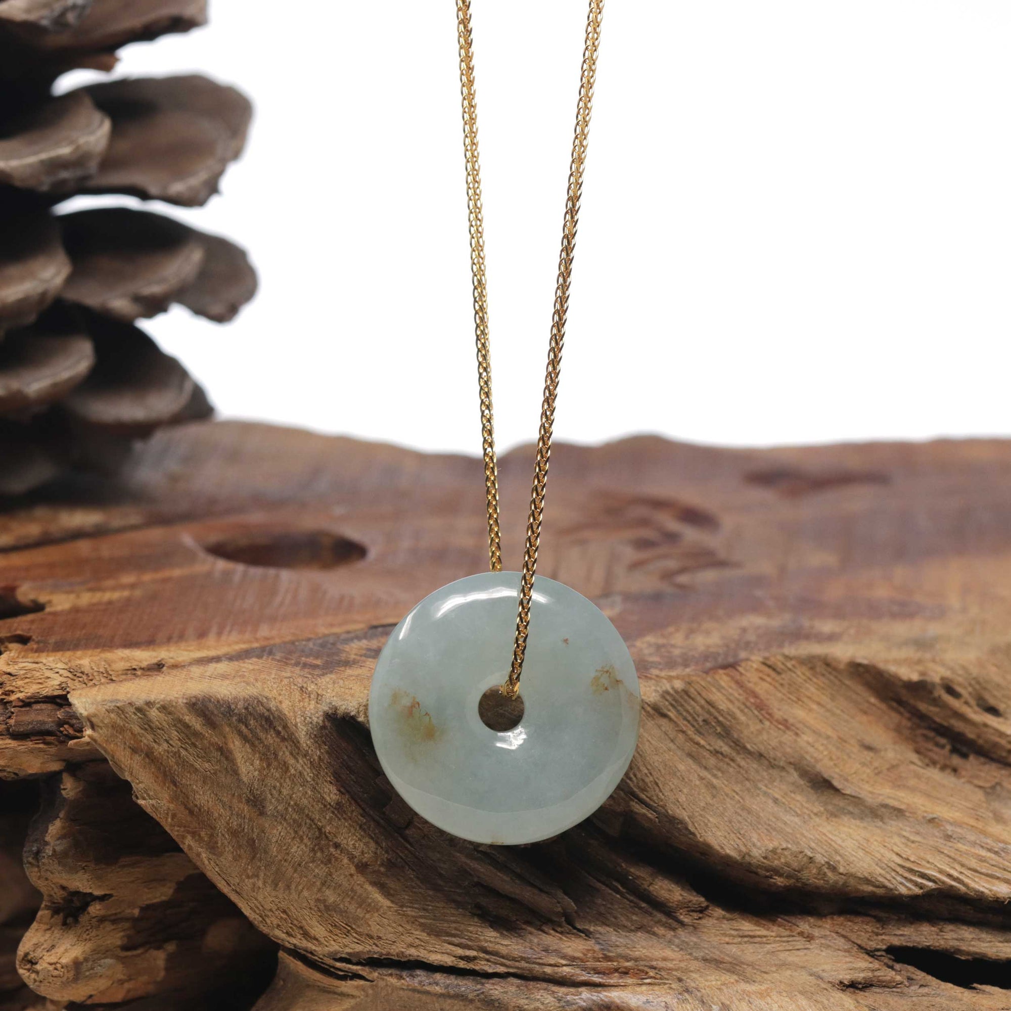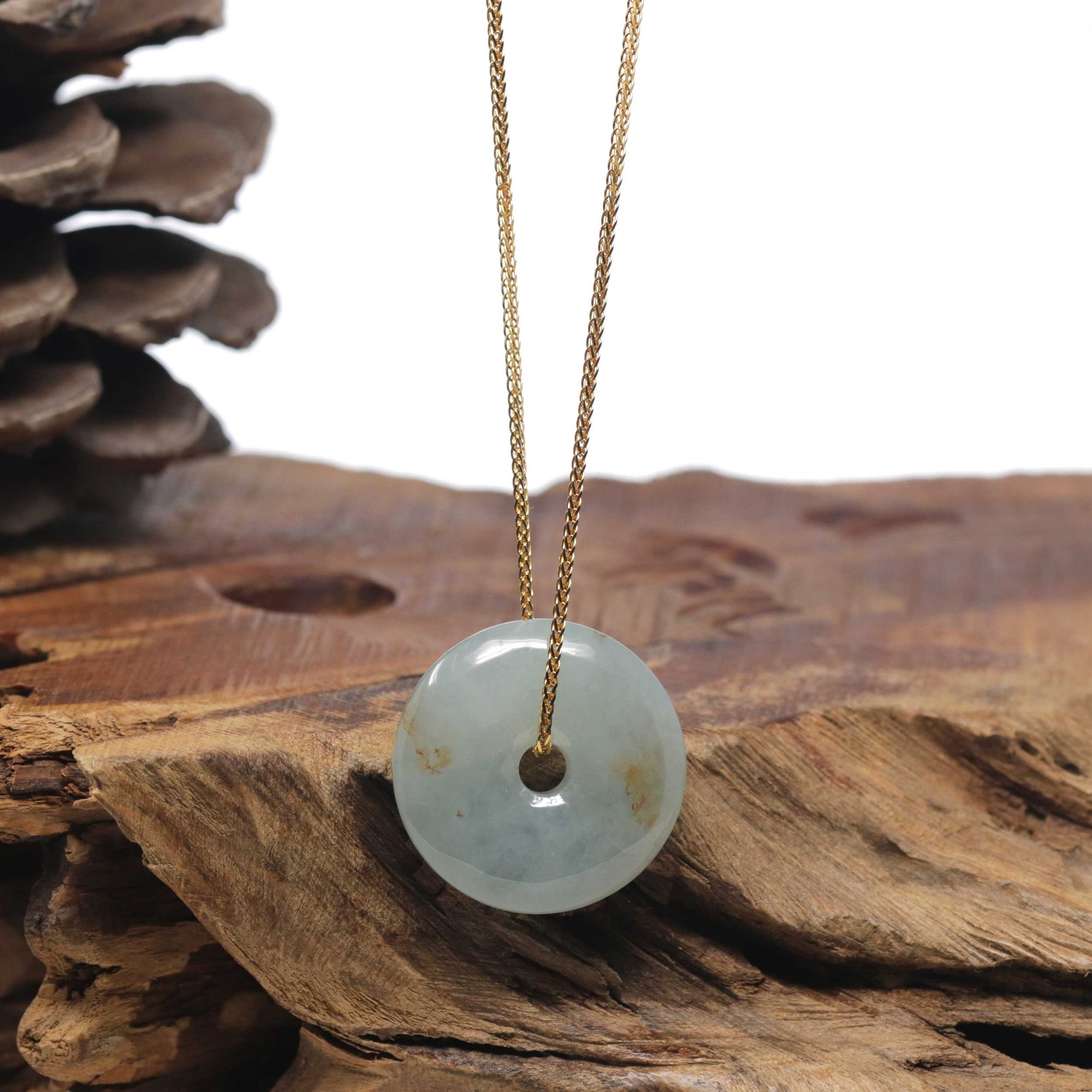 Baikalla "Ping An Kou" (Good Luck Button) Icy Light Blue-Green W/ Yellow Patch Jadeite Jade Pendant Necklace
