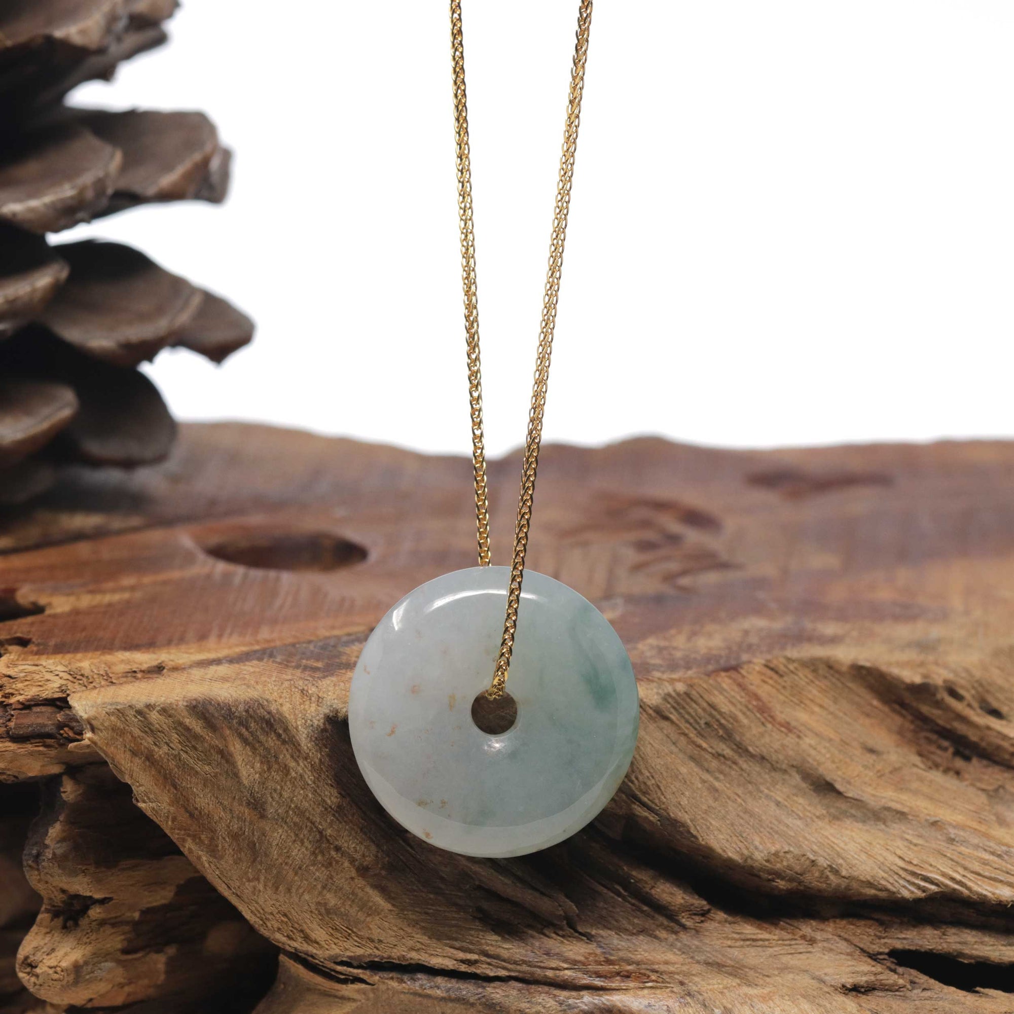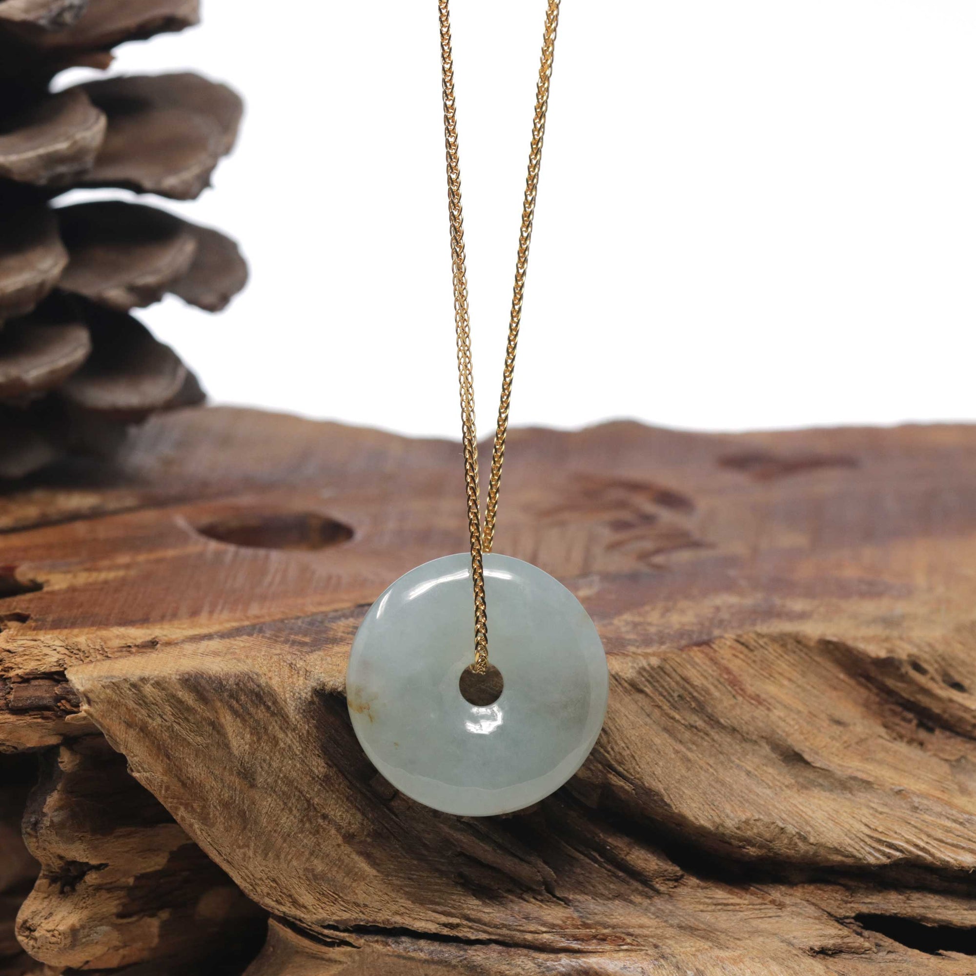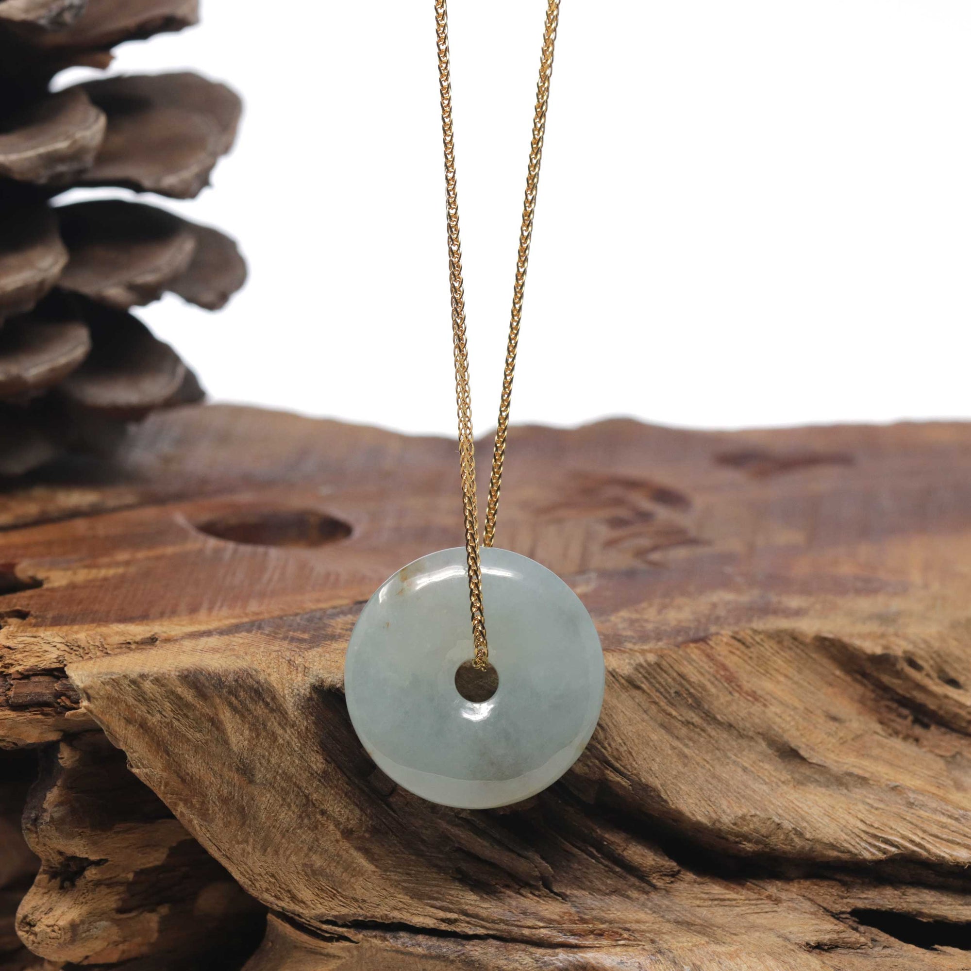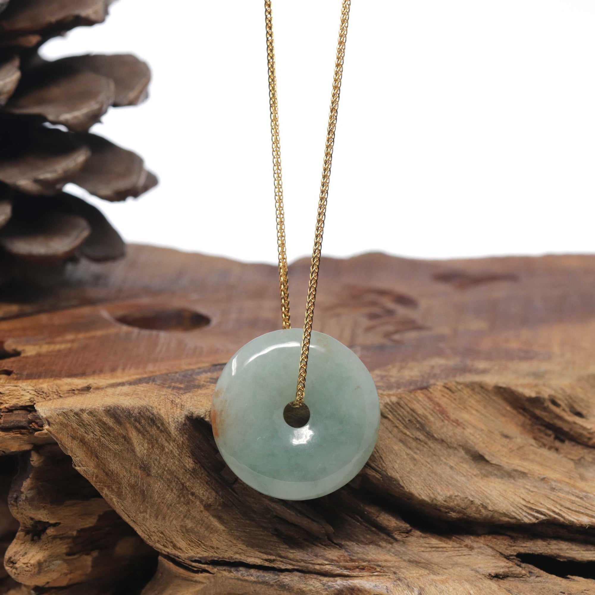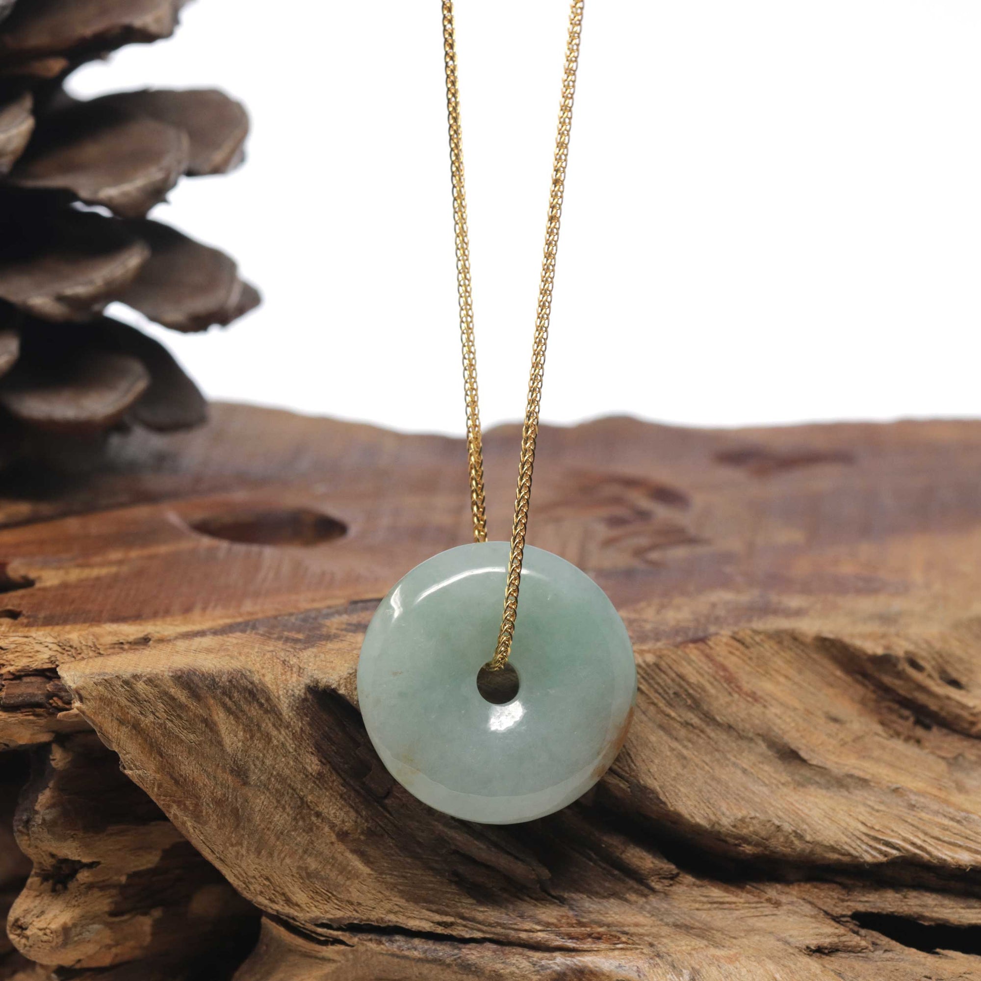 Baikalla "Good Luck Button" Necklace Ice Blue-Green Jadeite Jade Lucky Ping An Kou Pendant