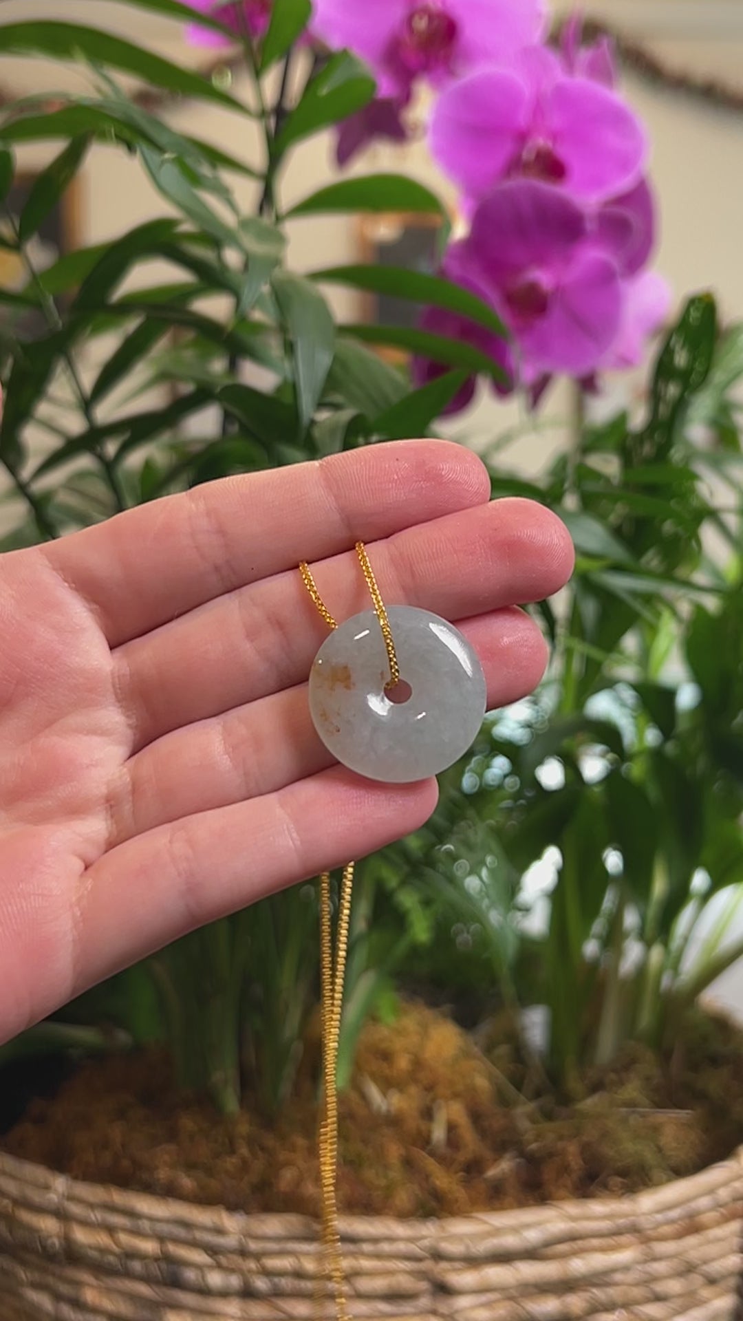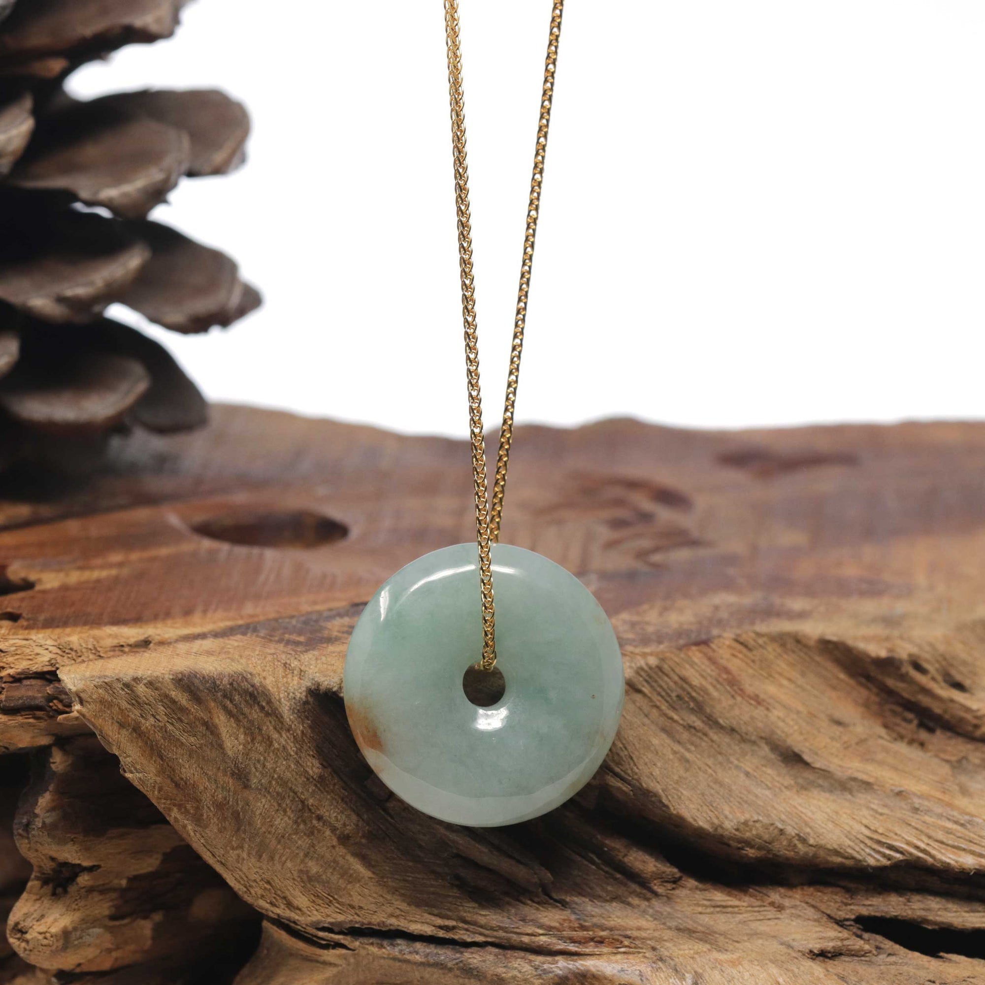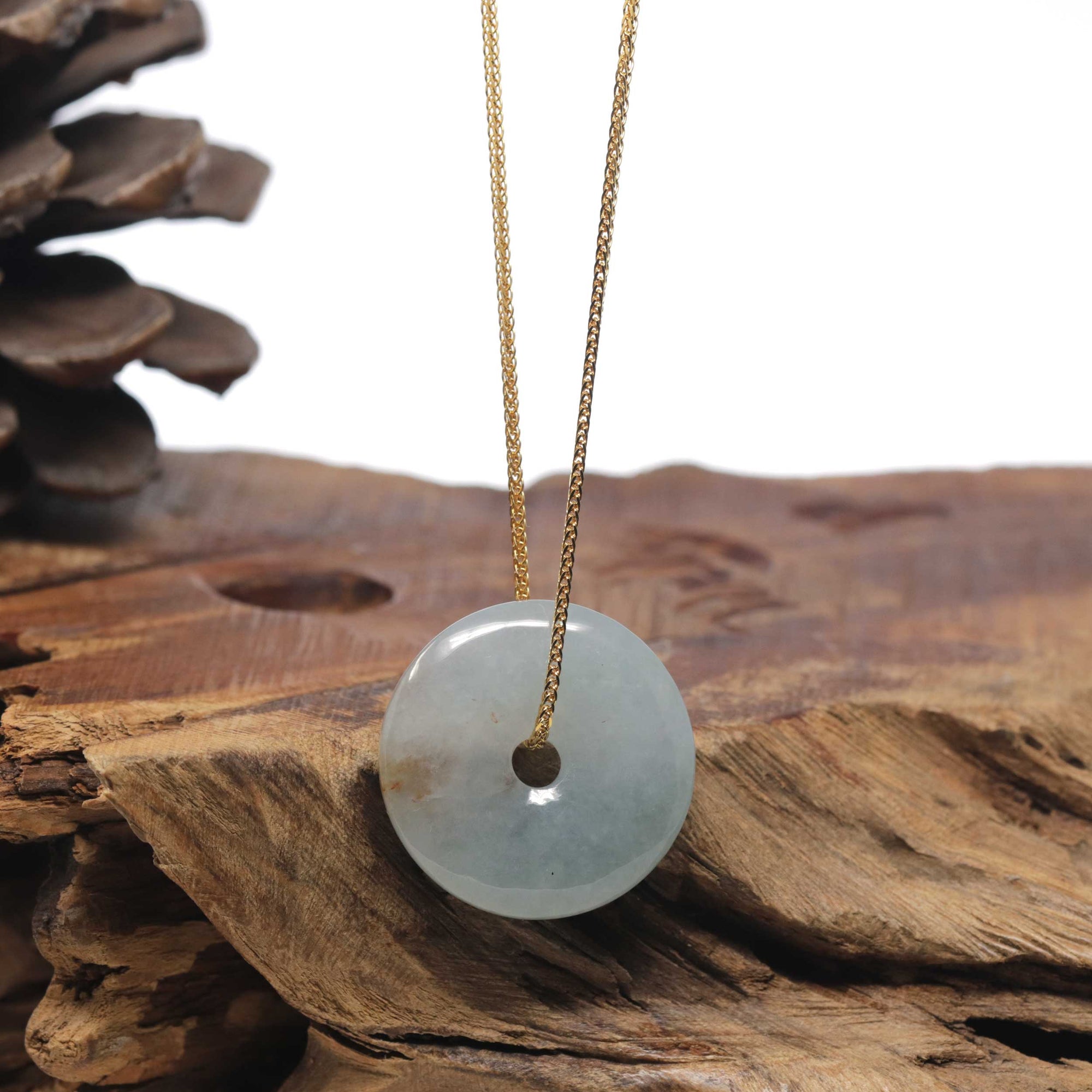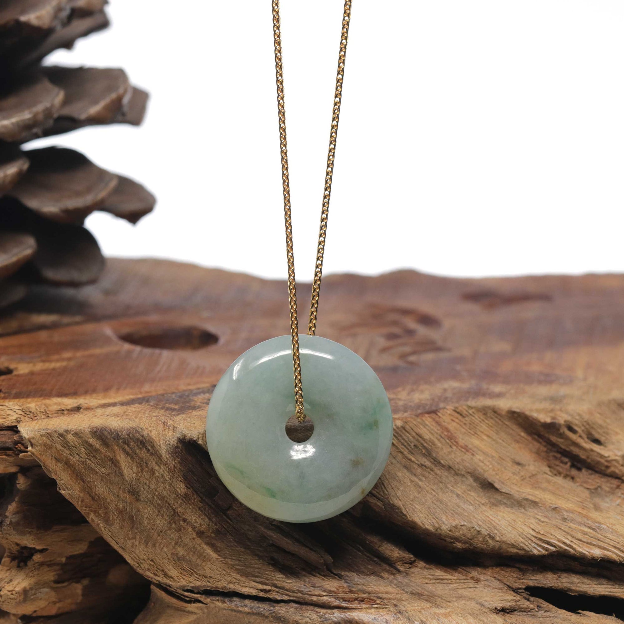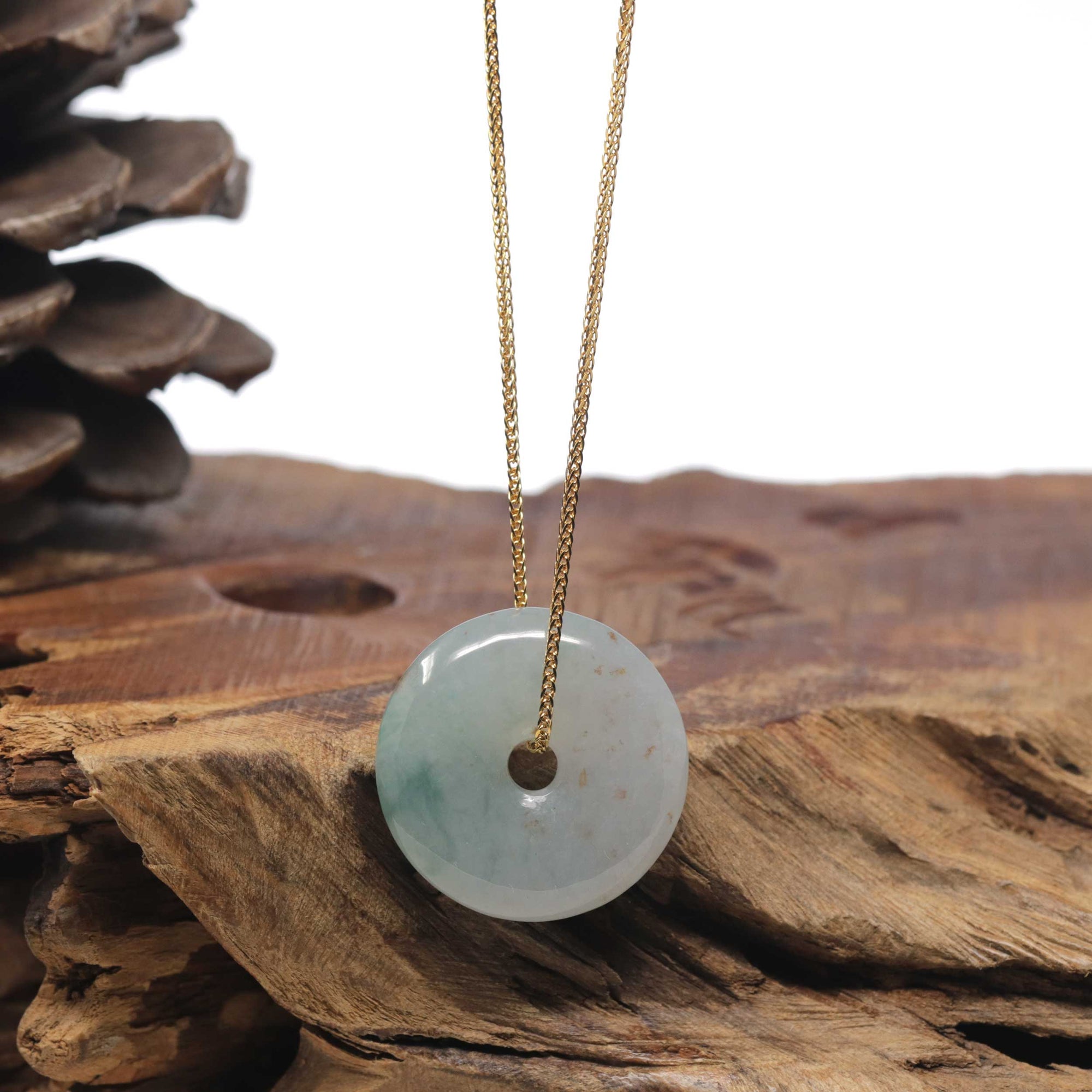 Baikalla "Good Luck Button" Necklace Ice Blue-Green Jadeite Jade Lucky Ping An Kou Pendant