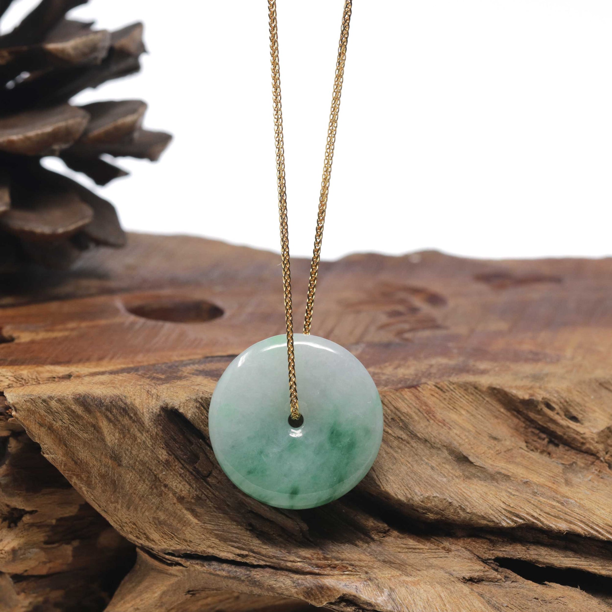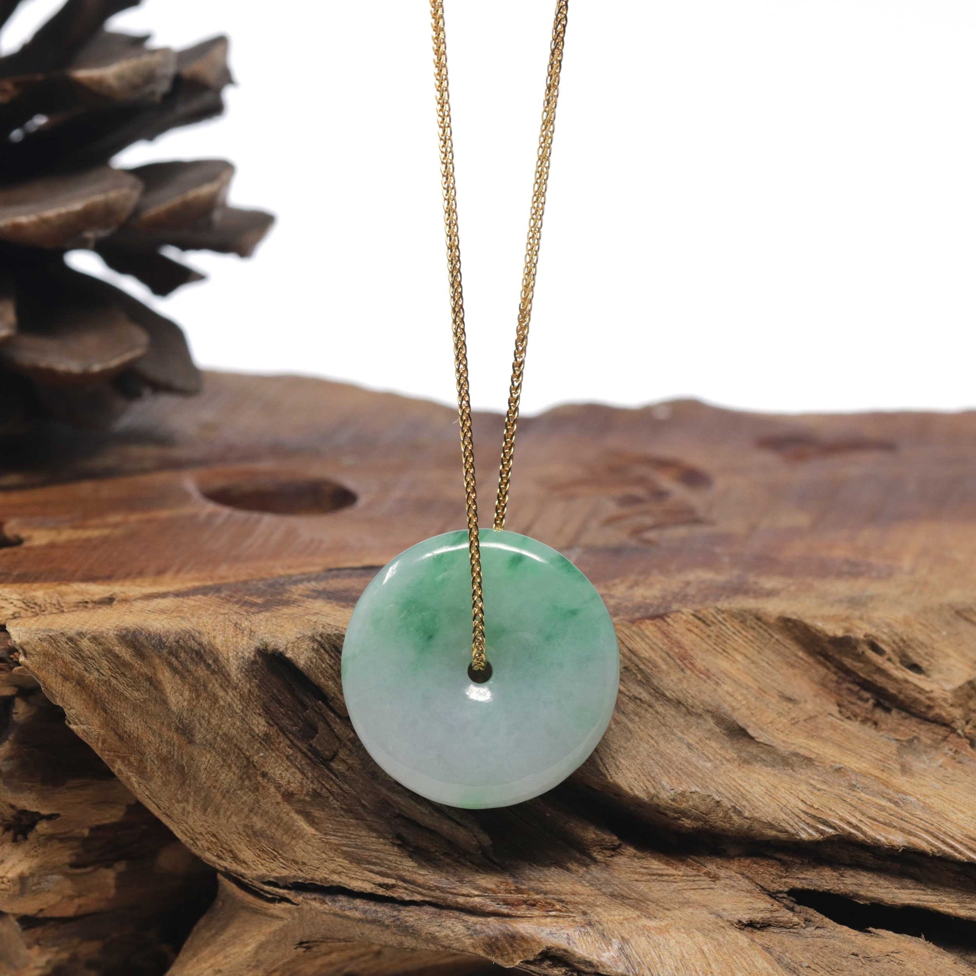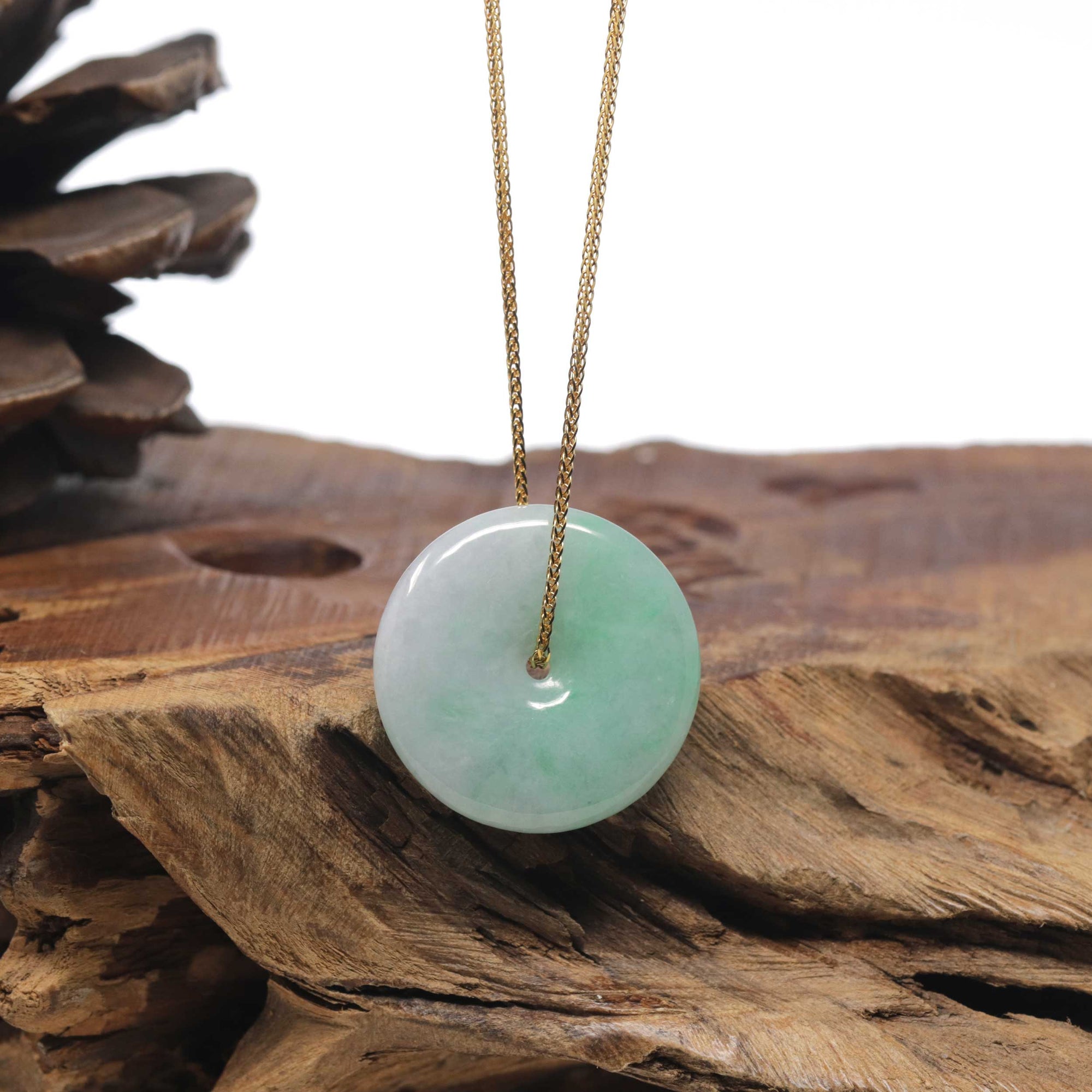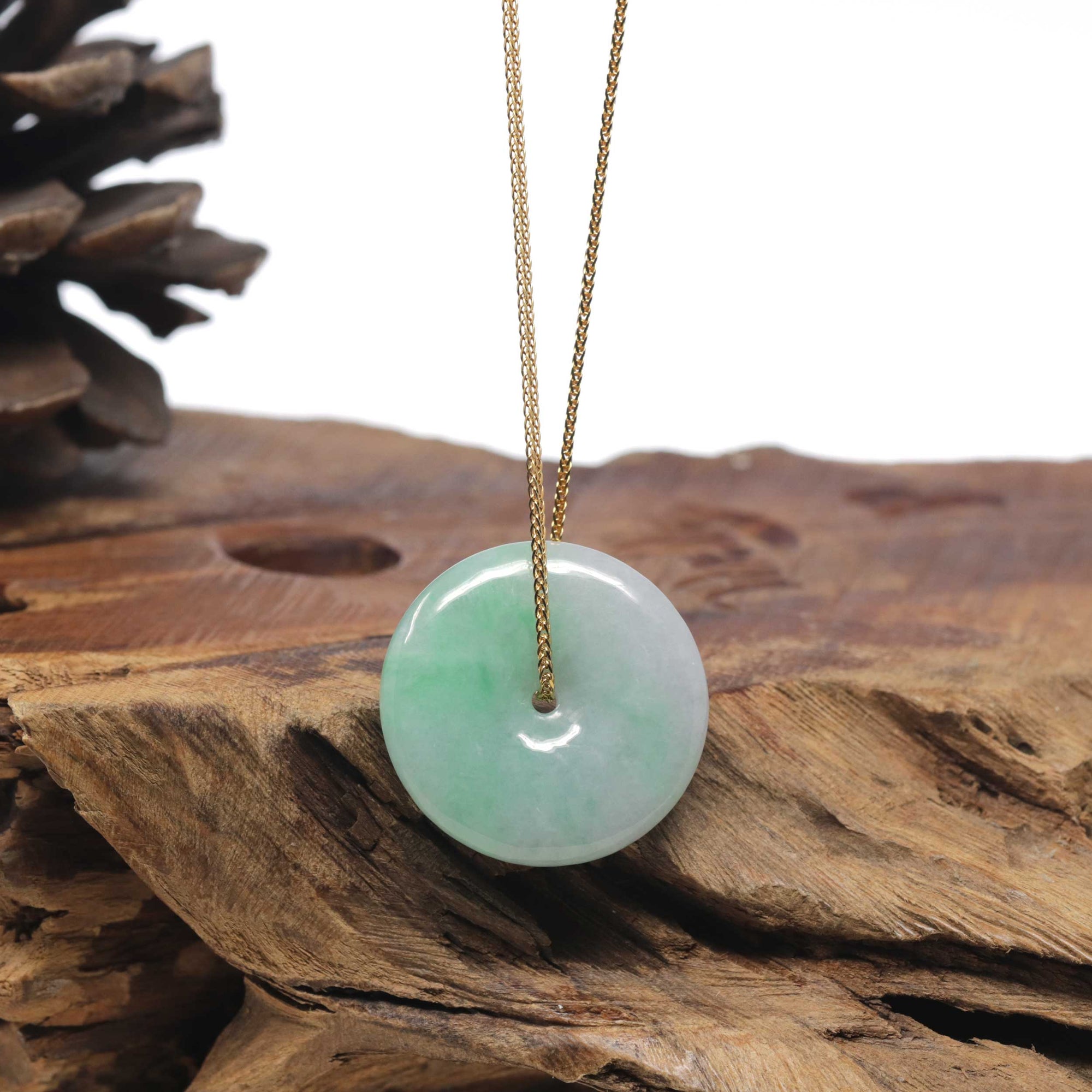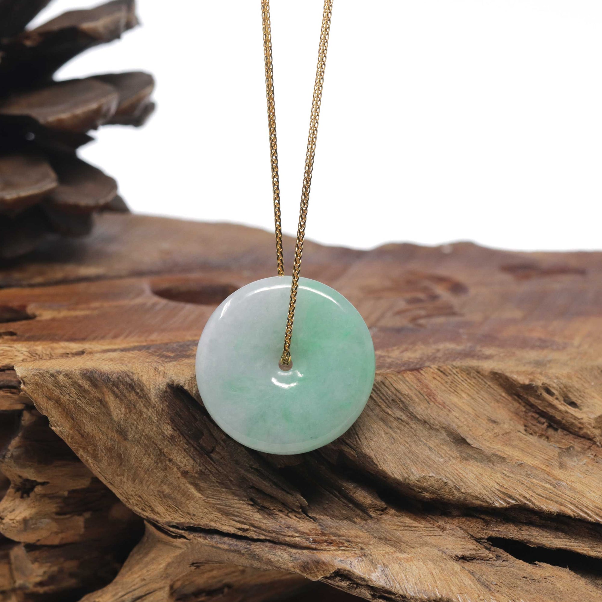 Baikalla™ "Good Luck Button" Necklace Real Light Green Jade Lucky TongTong Pendant Necklace